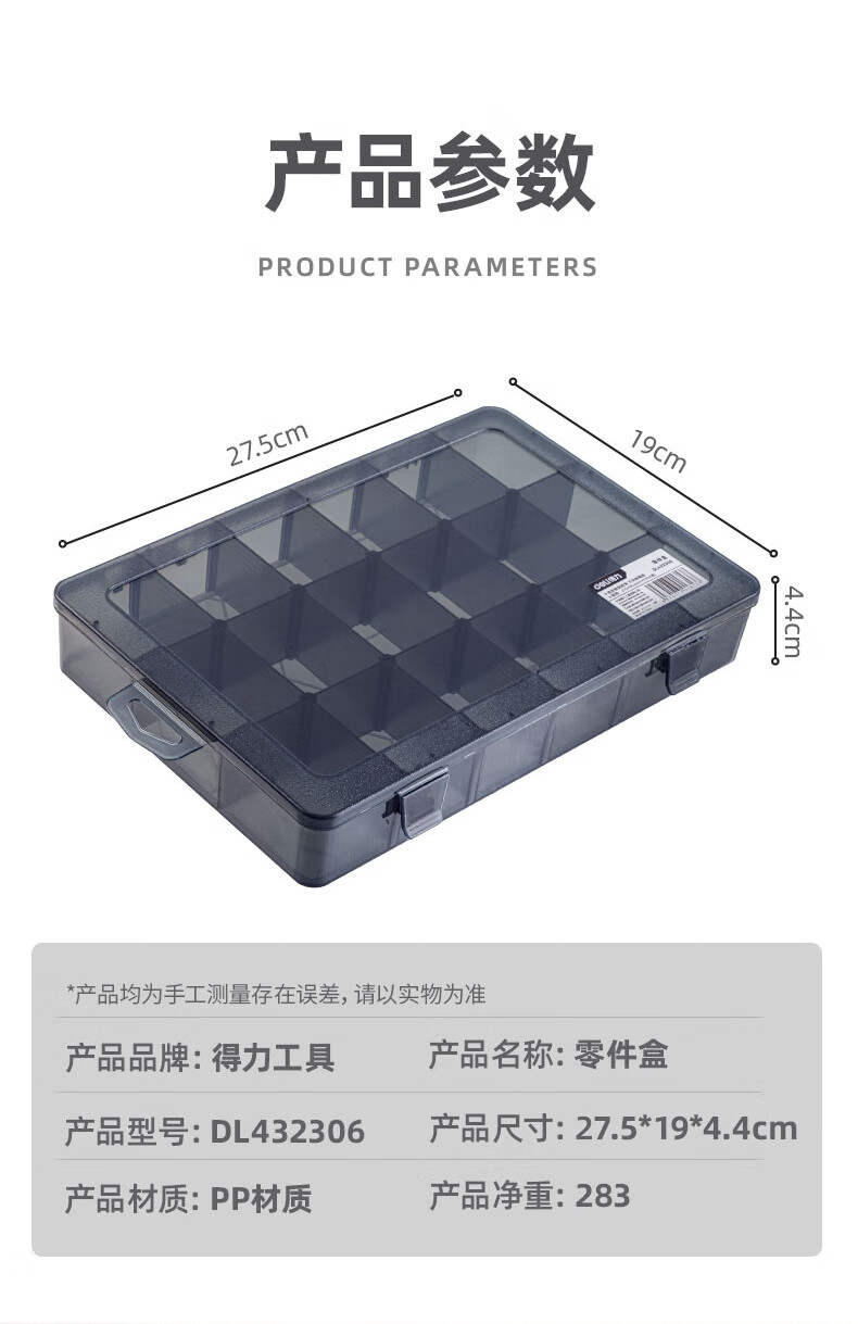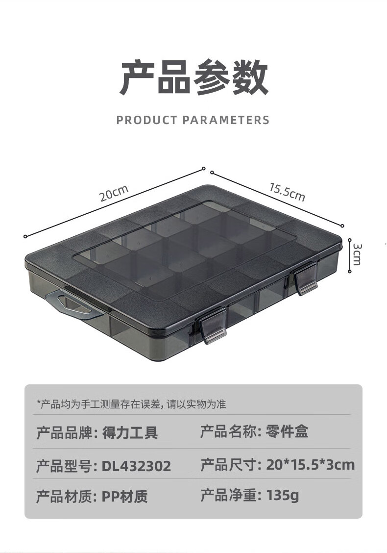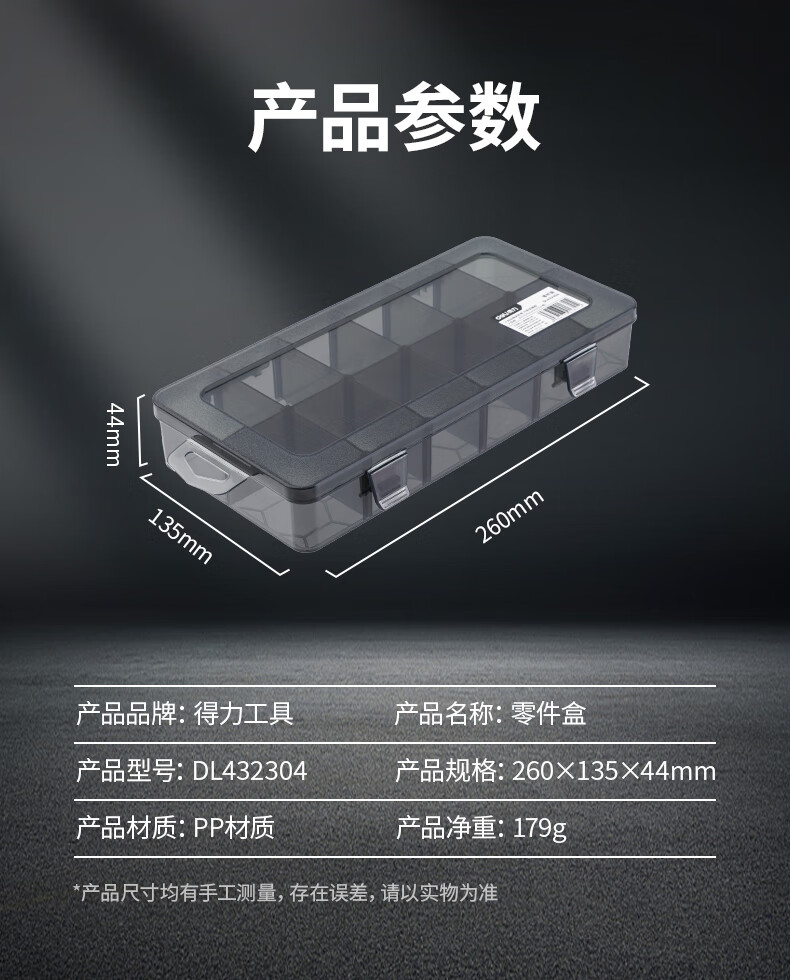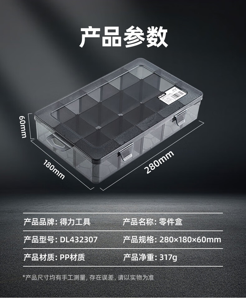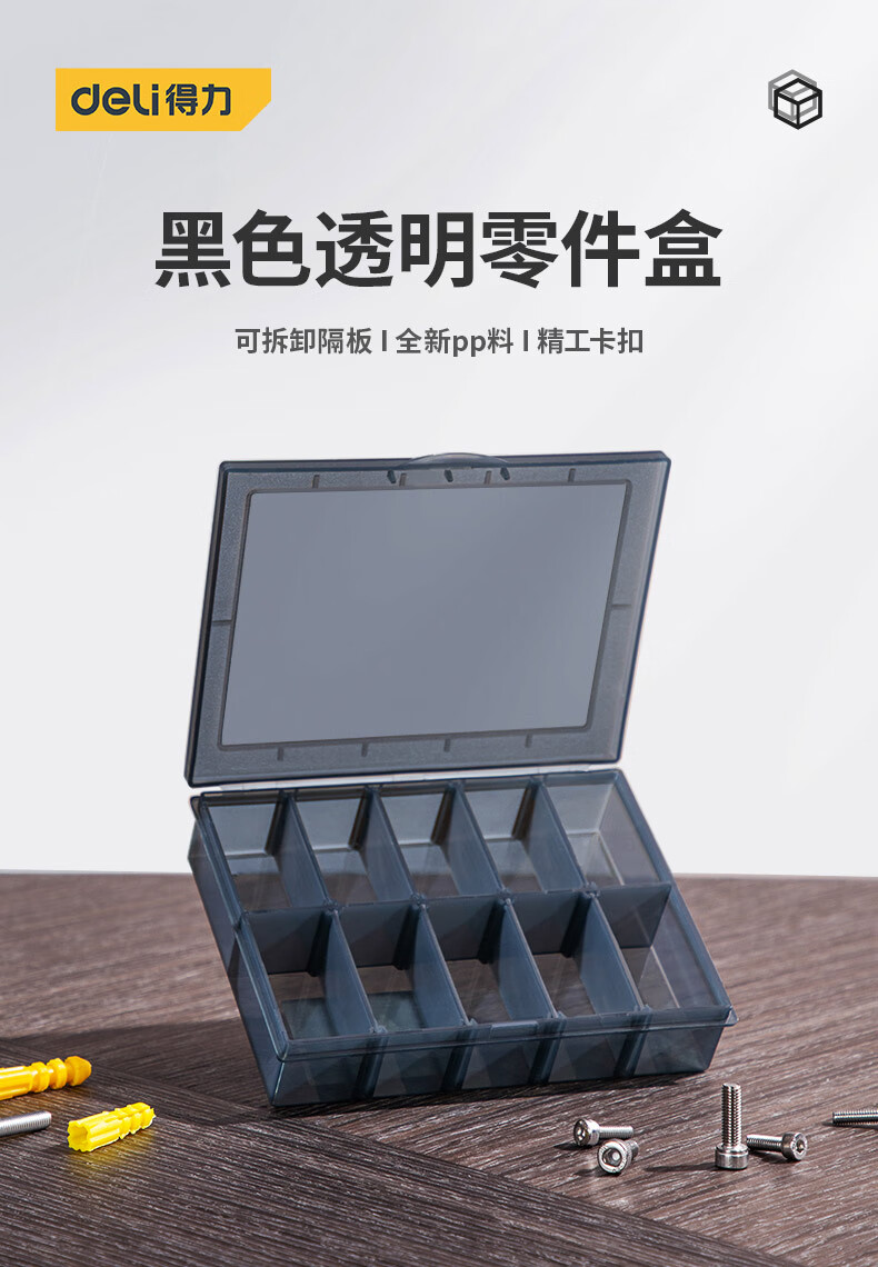 Deli Tool Storage Box Parts Box Transparent Small Grid Detachable Plastic Electronic Component Accessories Drill Bit Grid Box (12 Large Grids) Parts Box