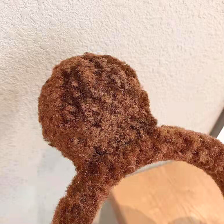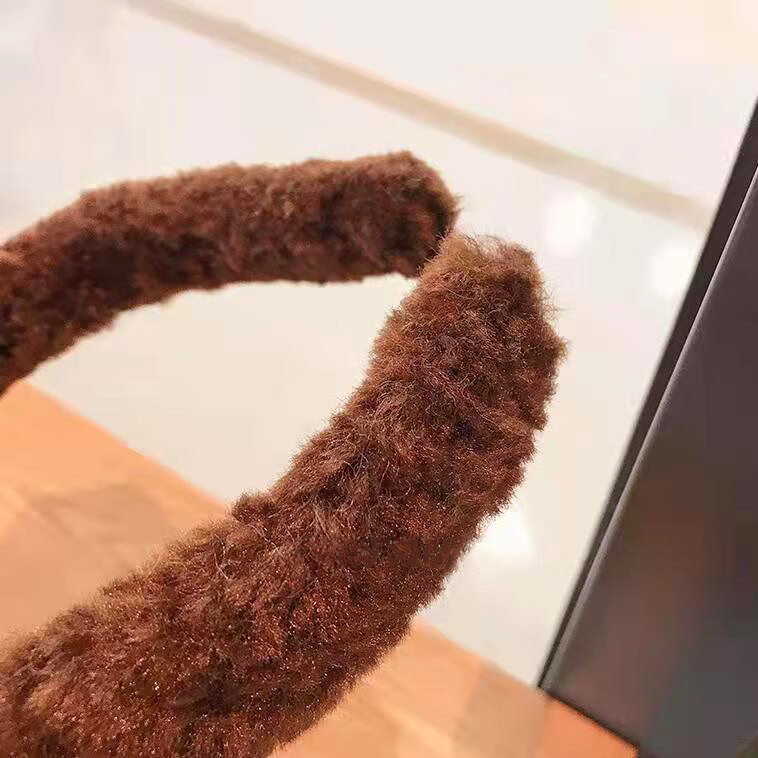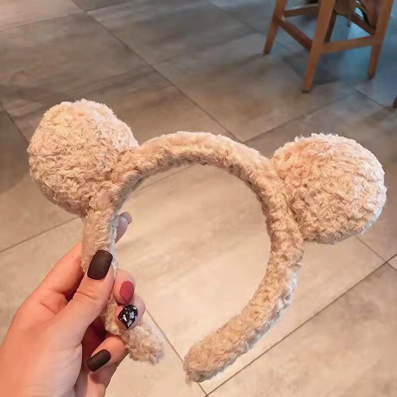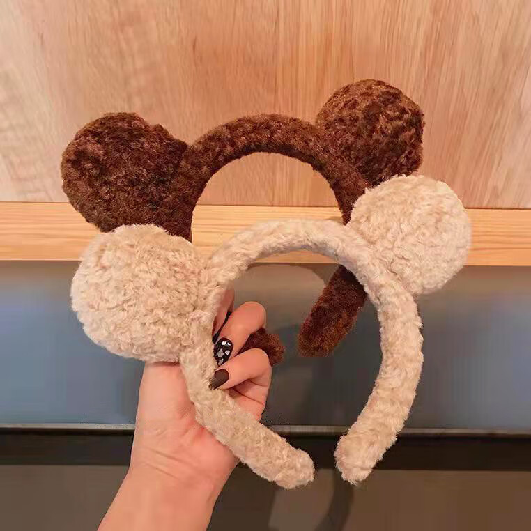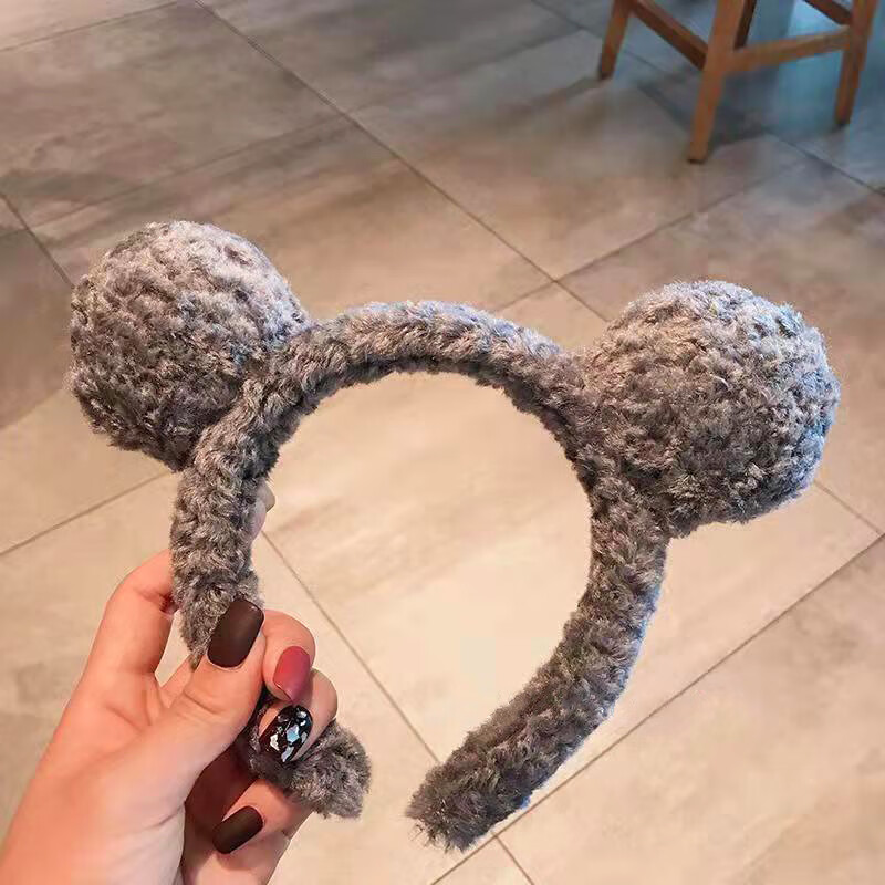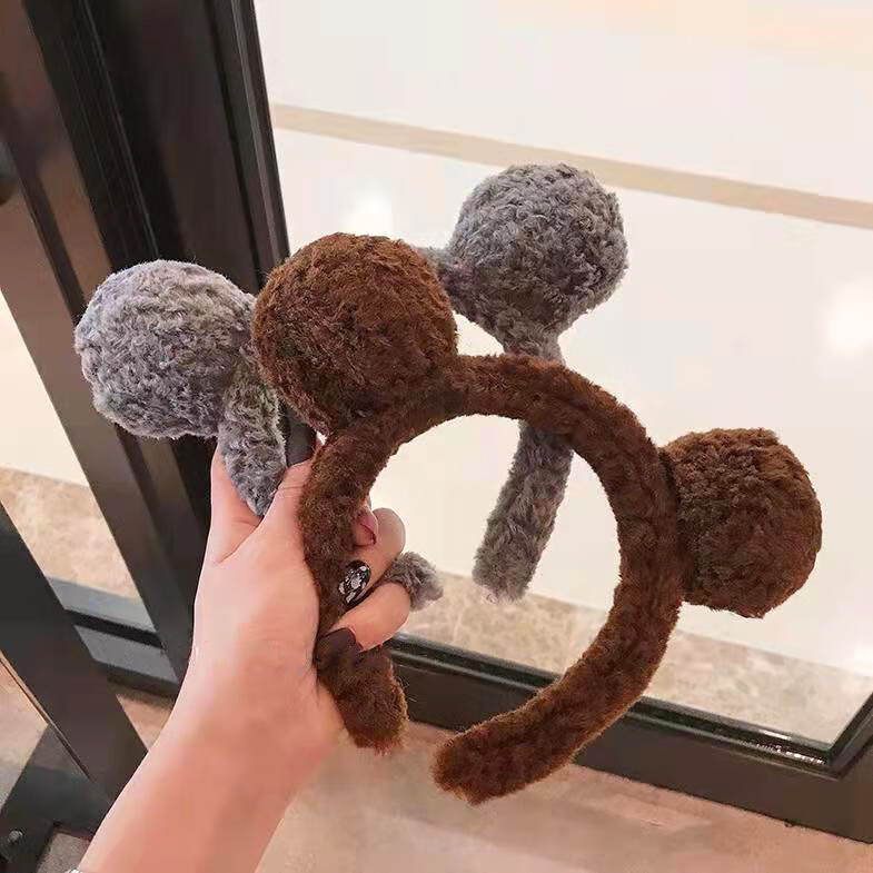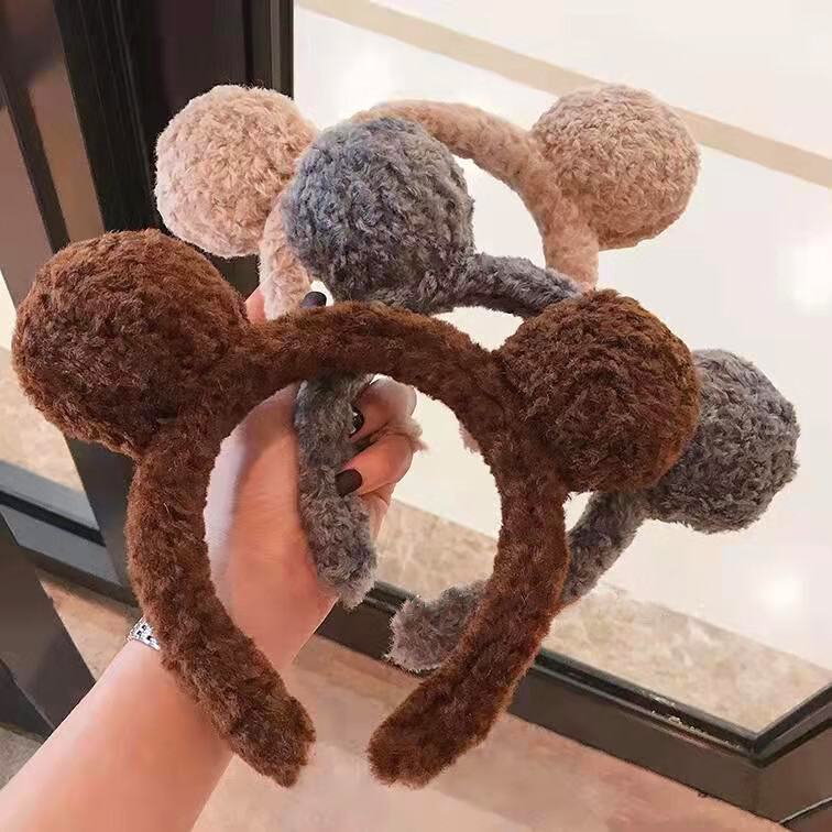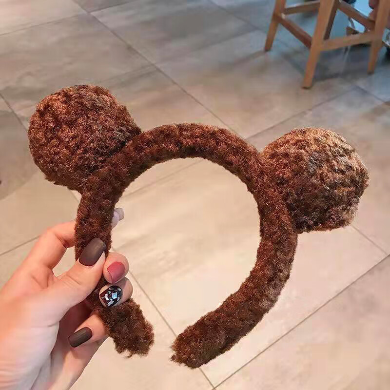 MiU Se sweet and cute plush bear ear headband super cute fur ball girl headband internet celebrity face wash headband coffee color B02-302