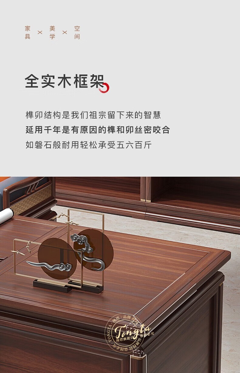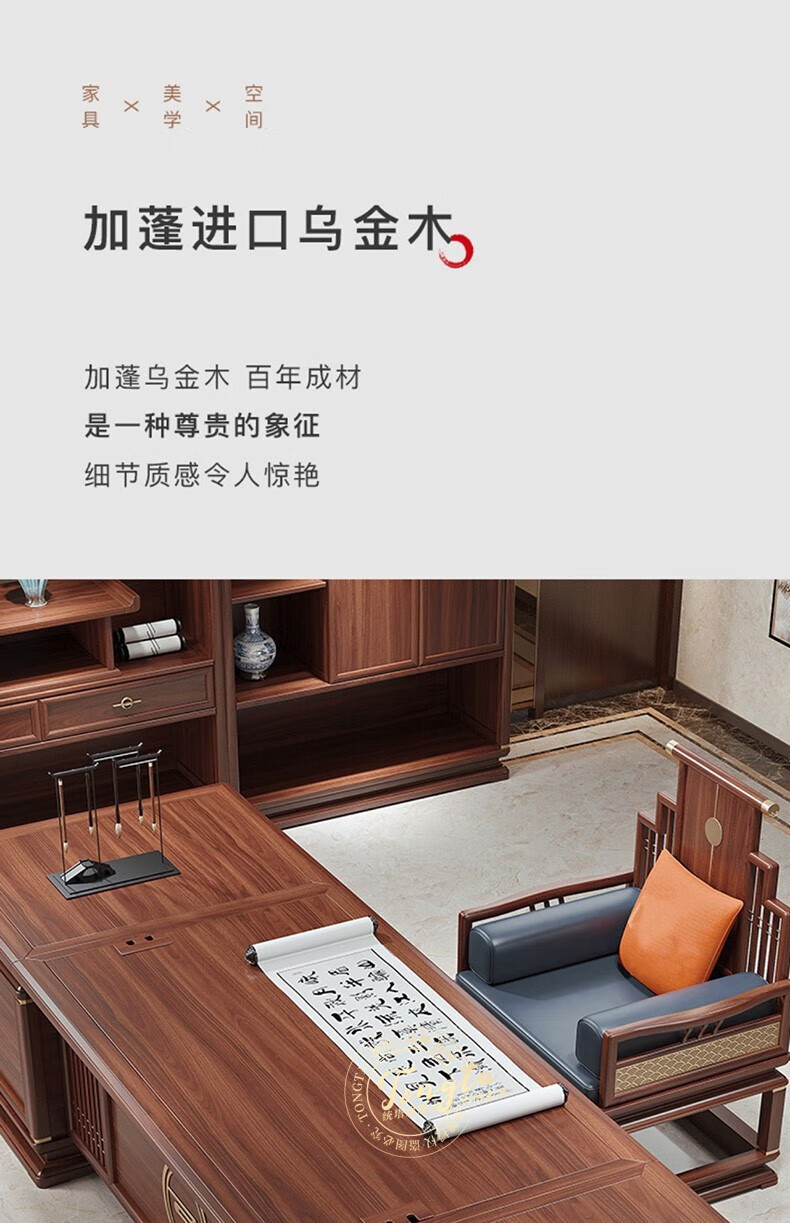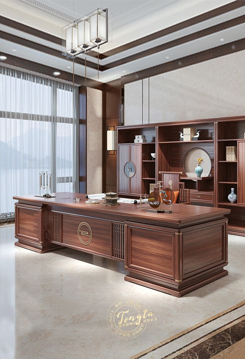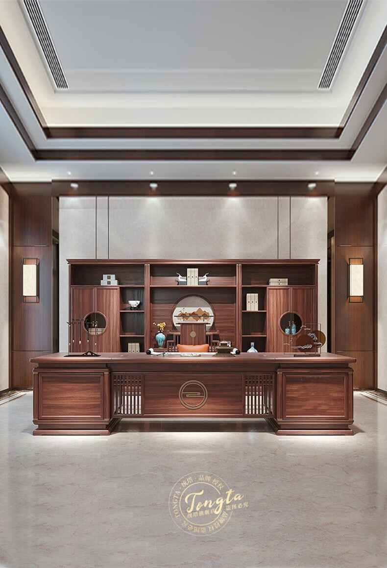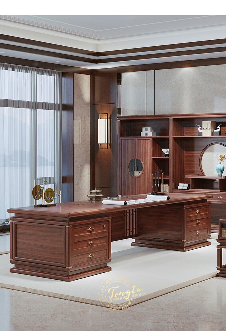 TONGTA new Chinese style solid wood office desk boss desk ebony wood executive desk chairman office furniture combination set 2.0 meter desk ebony wood