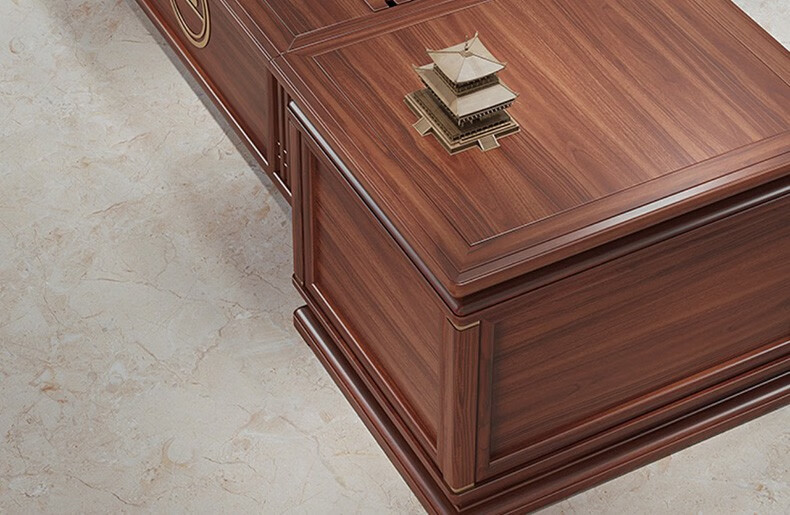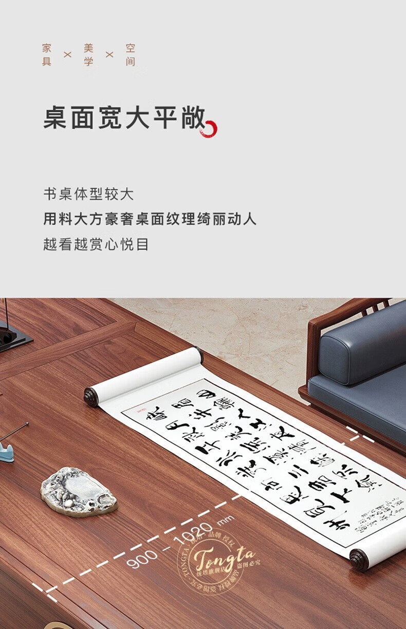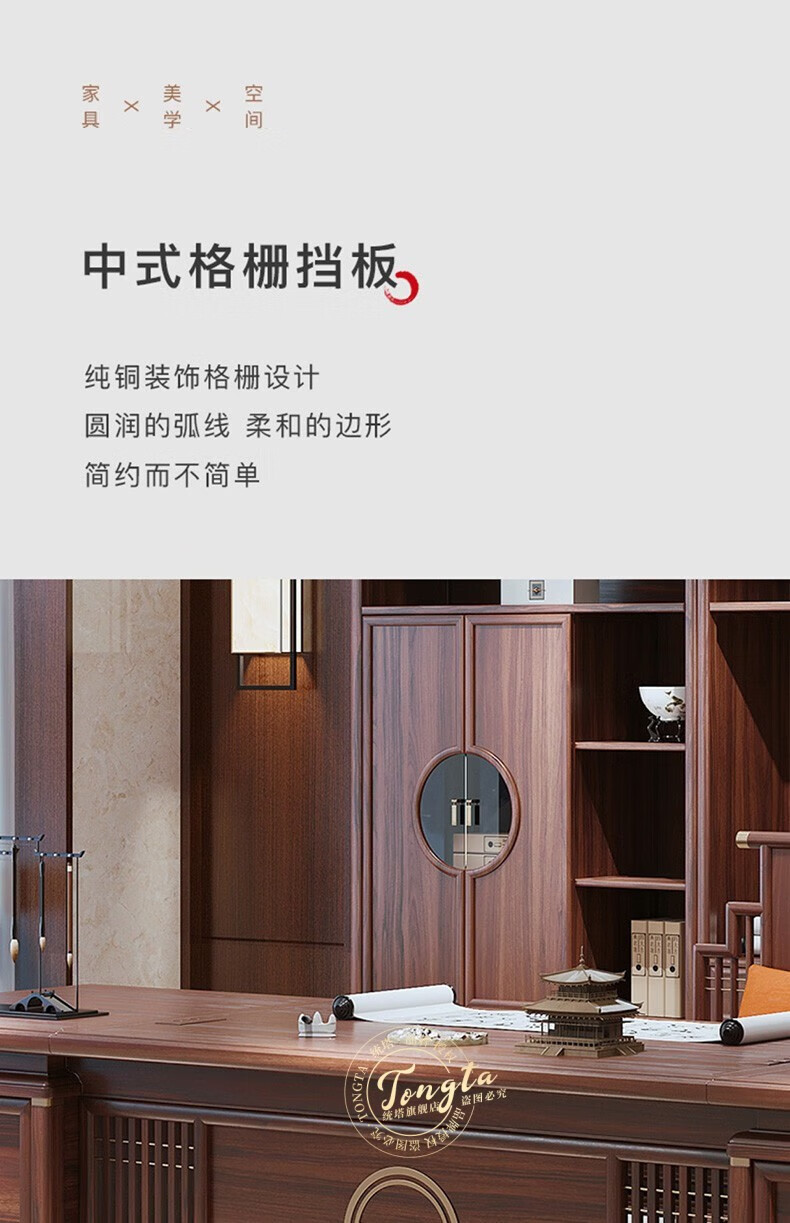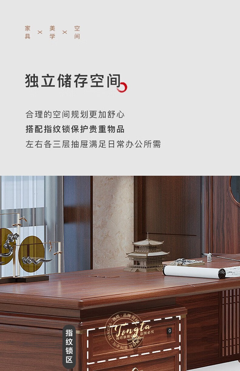 TONGTA new Chinese style solid wood office desk boss desk ebony wood executive desk chairman office furniture combination set 2.0 meter desk ebony wood
