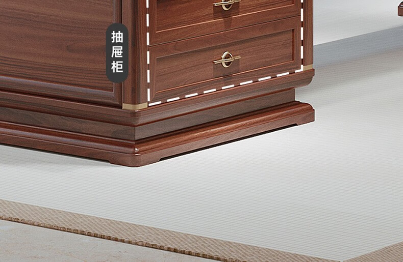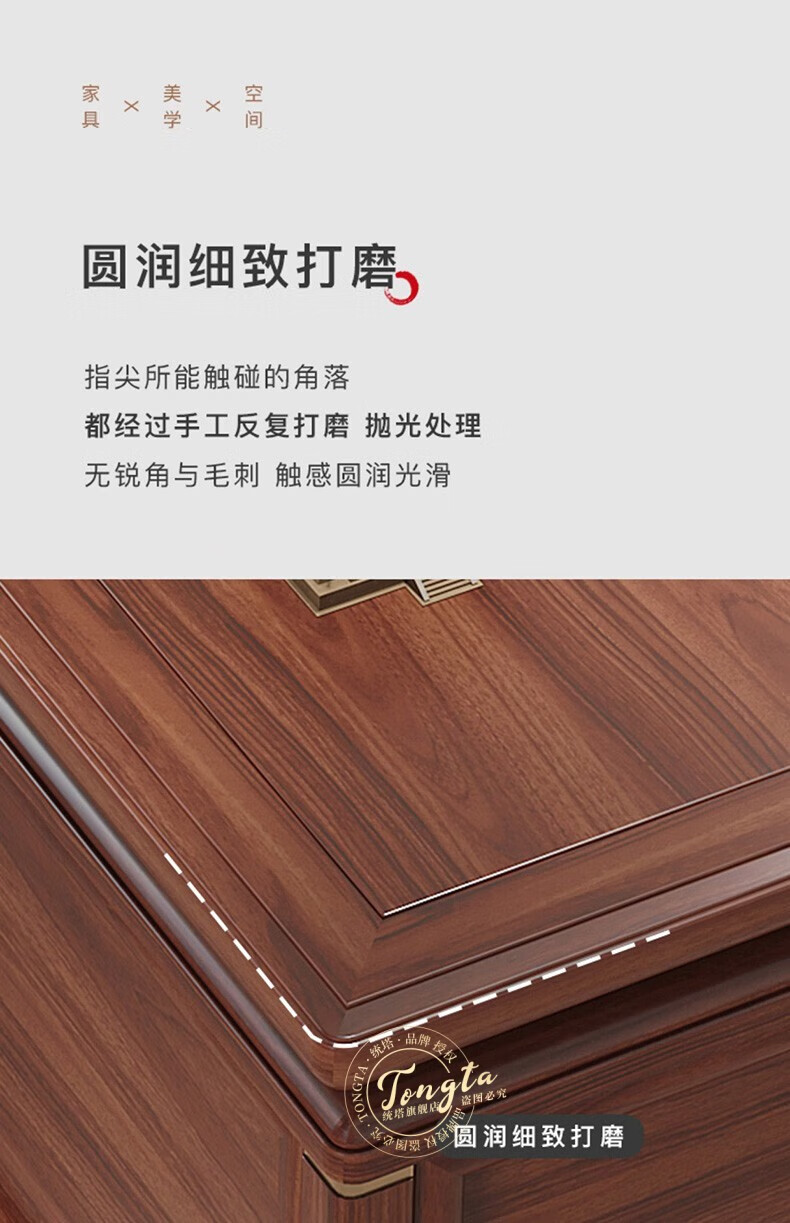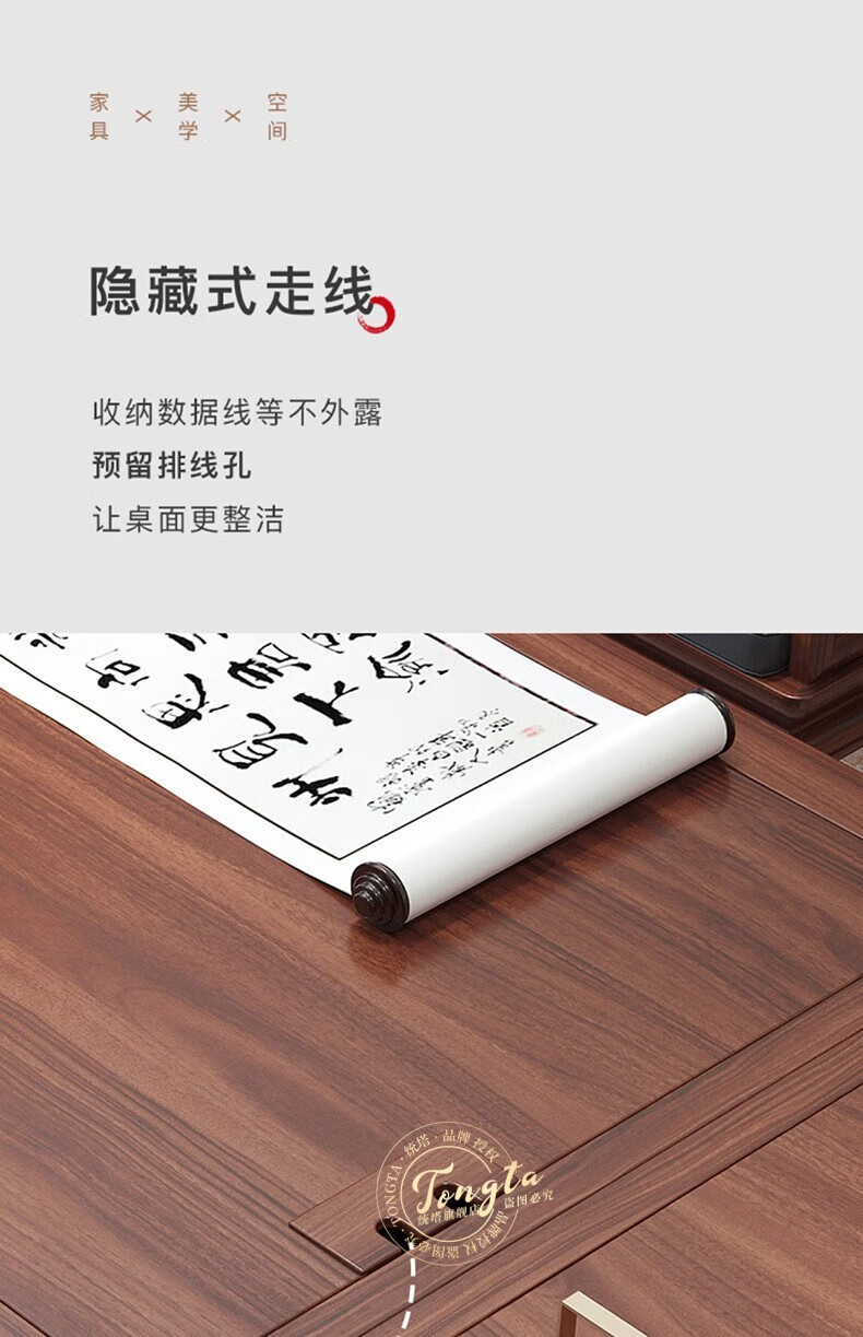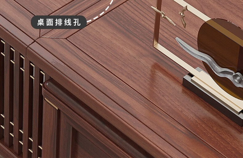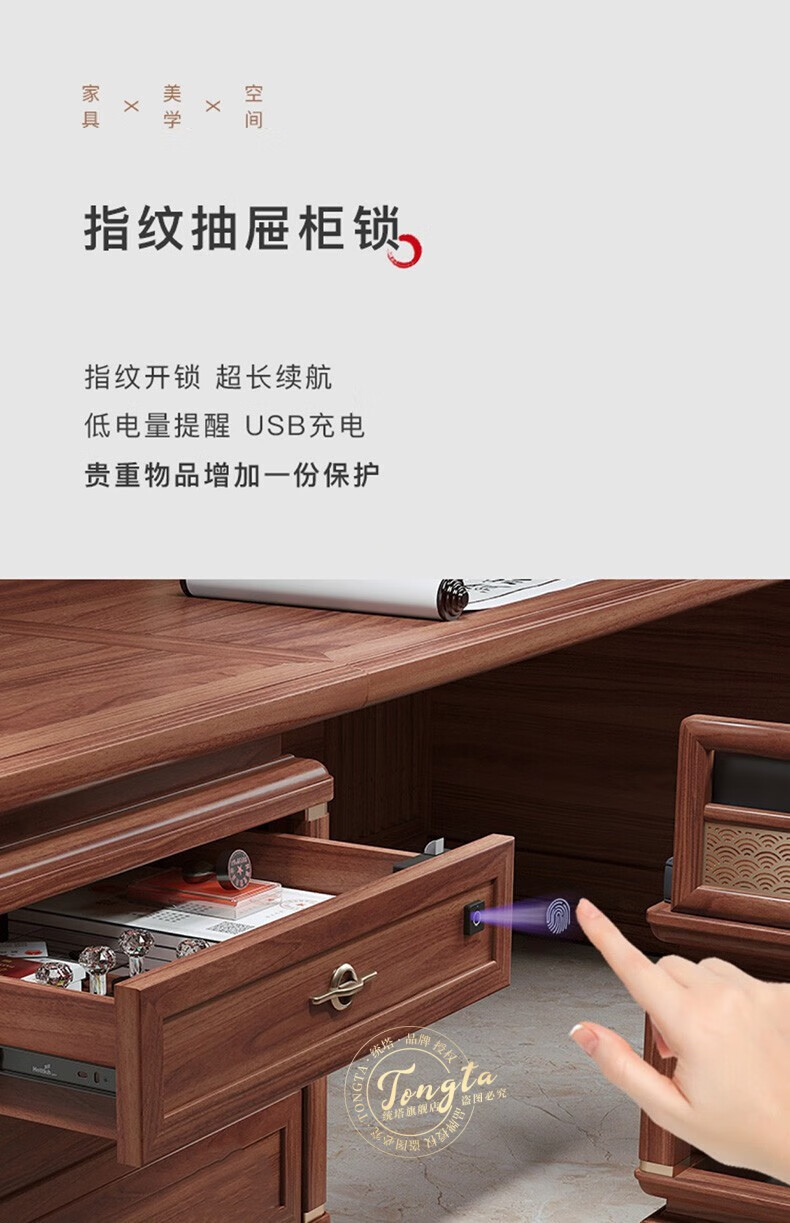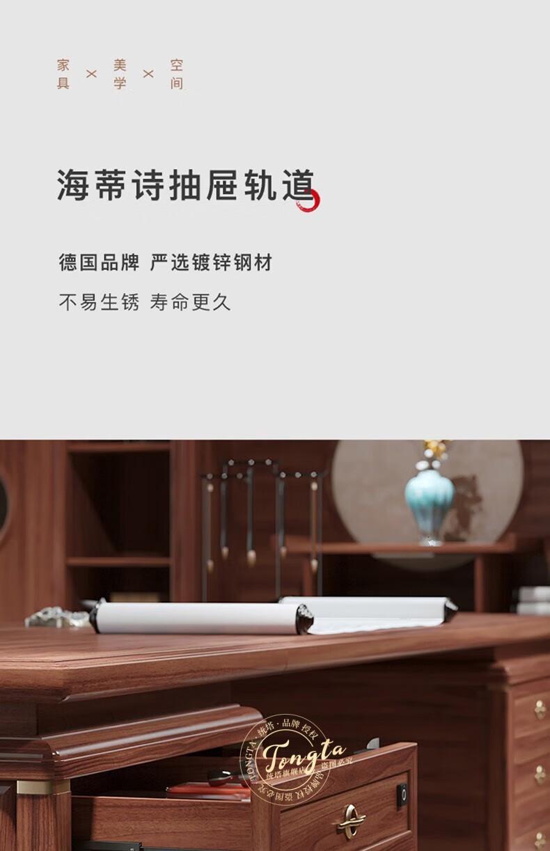 TONGTA new Chinese style solid wood office desk boss desk ebony wood executive desk chairman office furniture combination set 2.0 meter desk ebony wood