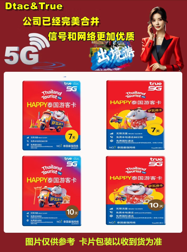 Thailand phone card 7/10 days 5G/4G mobile Internet card happy&true card unlimited traffic universal in Thailand mailing 7 days unlimited traffic free card needle