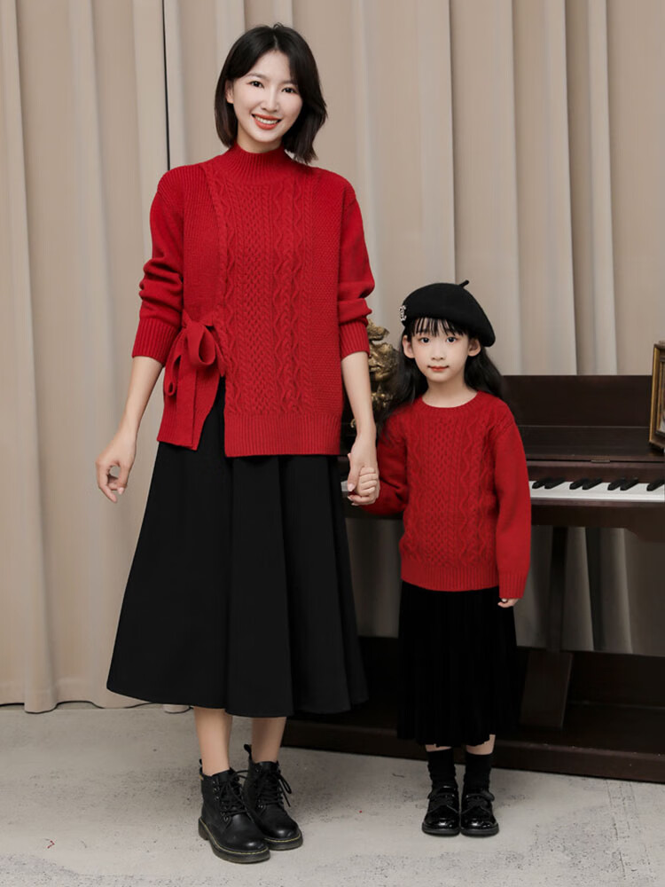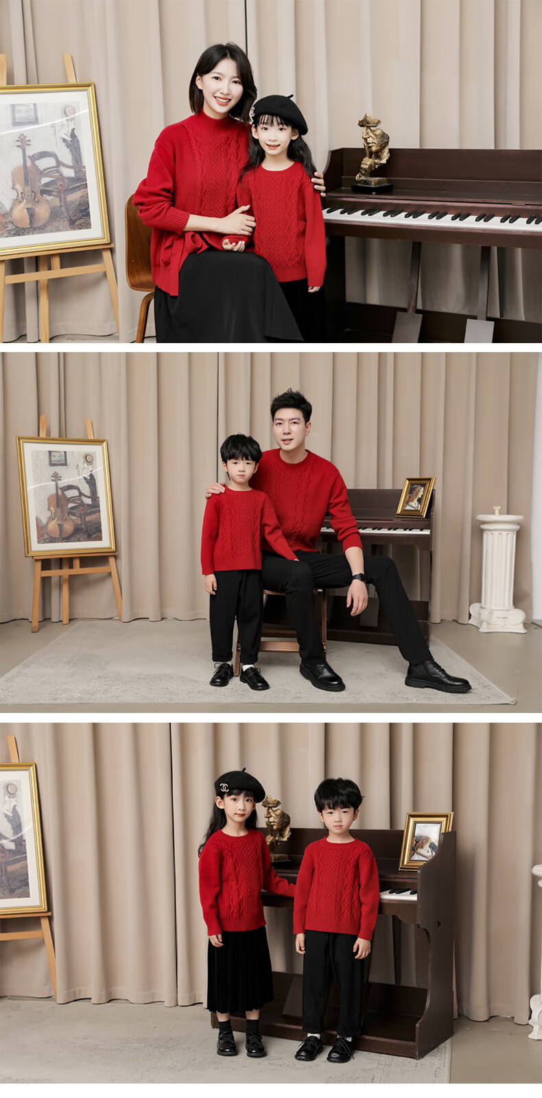 Little Bear Elf (xiaoxiongjingling) parent-child outfit family portrait autumn and winter New Year festive sweater Chinese style red mother and daughter family of three and four high-end sense burgundy dad size 3XL (recommended height 180-190cm)