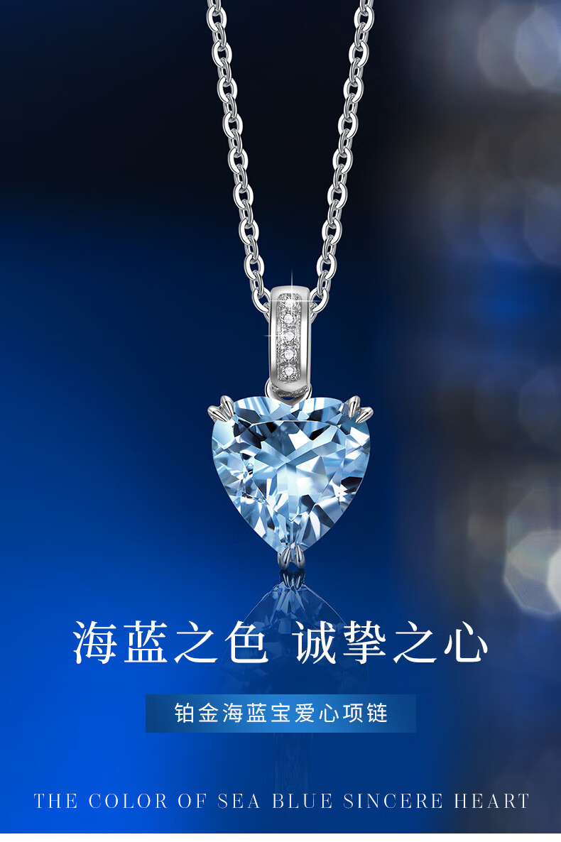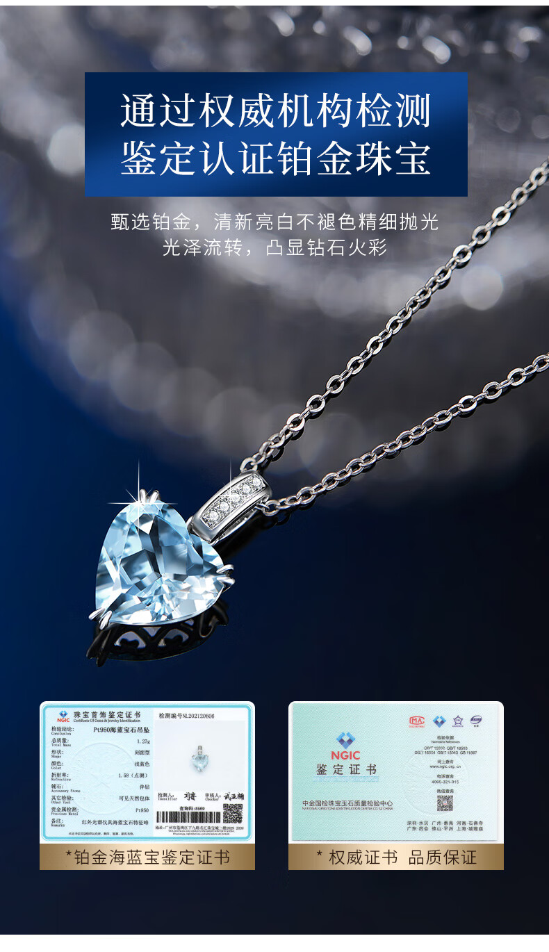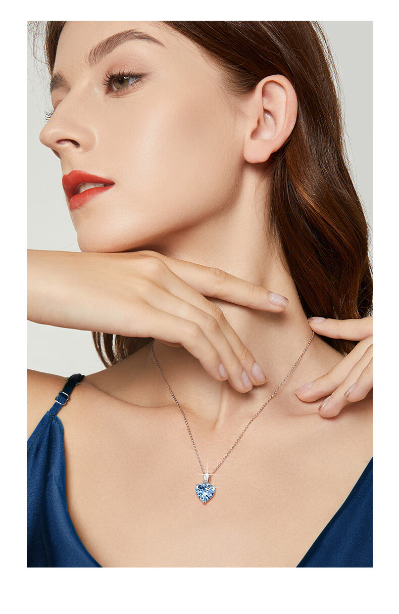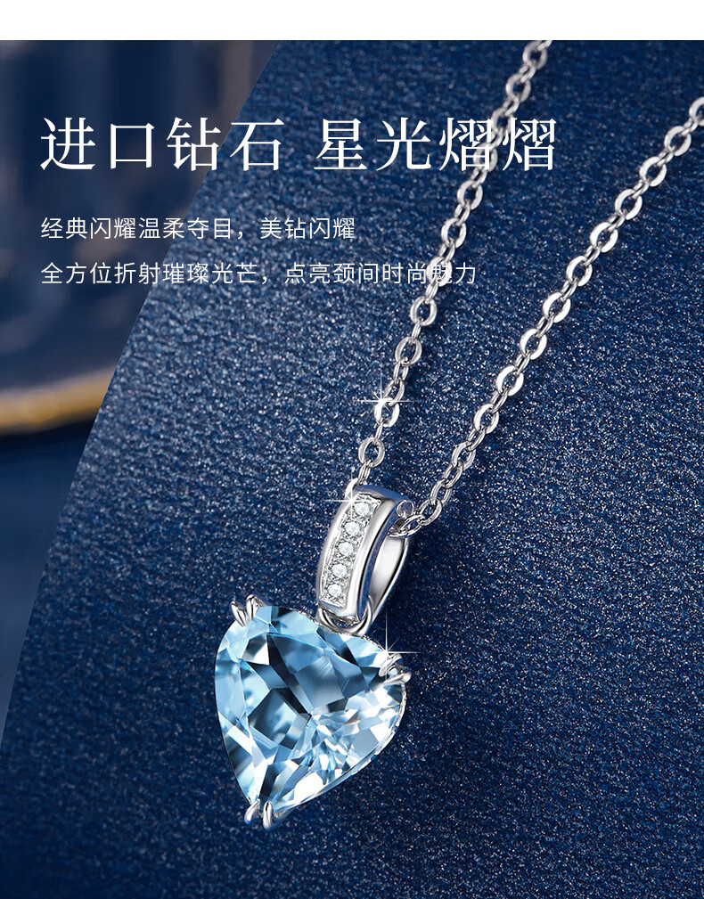 SGE Platinum pt950 Heart of the Ocean Necklace for Girls Aquamarine Topaz Love Diamond Valentine's Day Gift Platinum Topaz Necklace-Brand Gift Box