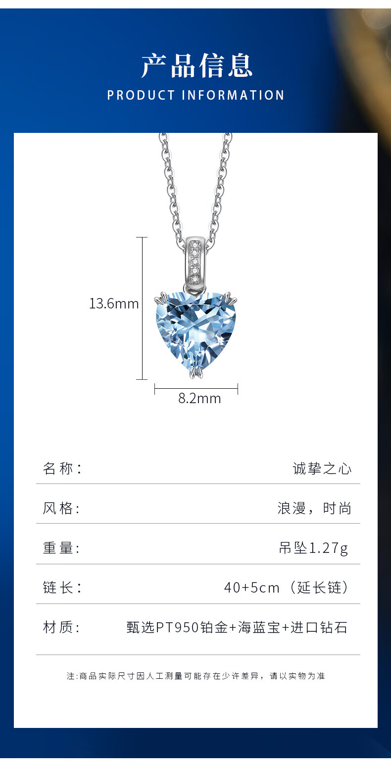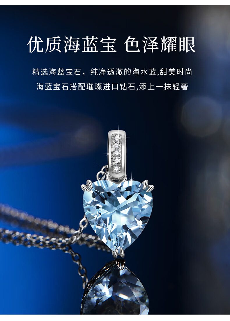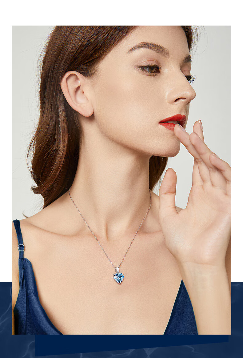 SGE Platinum pt950 Heart of the Ocean Necklace for Girls Aquamarine Topaz Love Diamond Valentine's Day Gift Platinum Topaz Necklace-Brand Gift Box