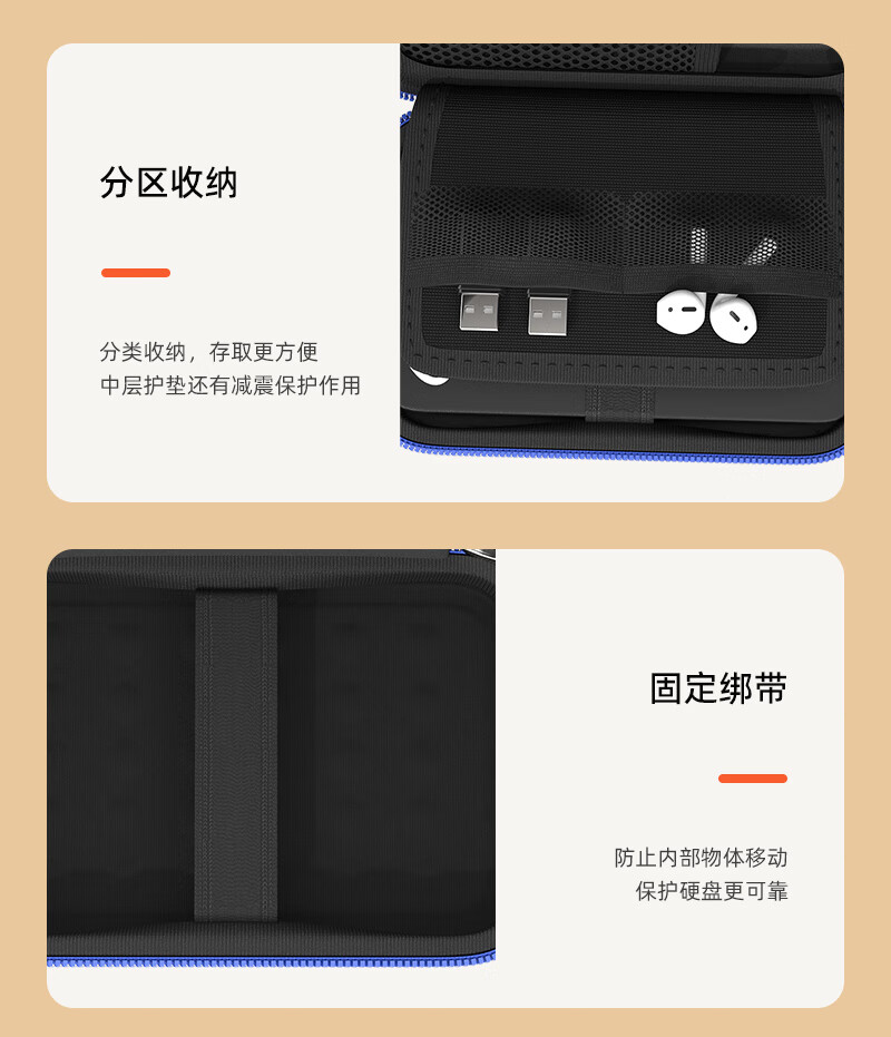 鑫喆移动硬盘保护套硬盘包收纳包充电宝防震WD硬盘盒U盘收纳盒2.5英寸数据线充电器电源线便携G010 标准款【PU款银色】15*11*4cm