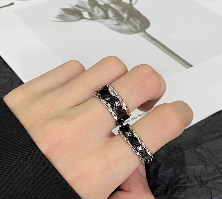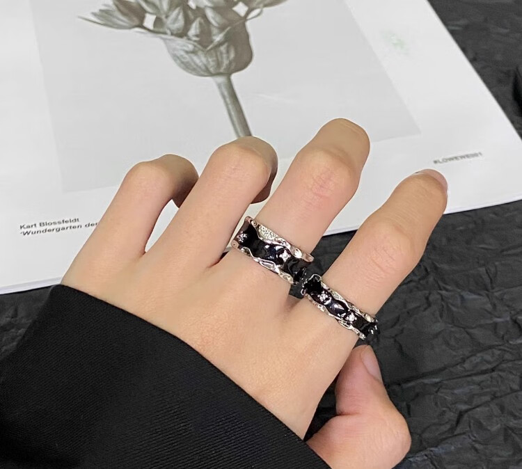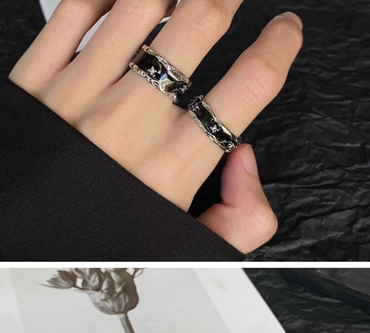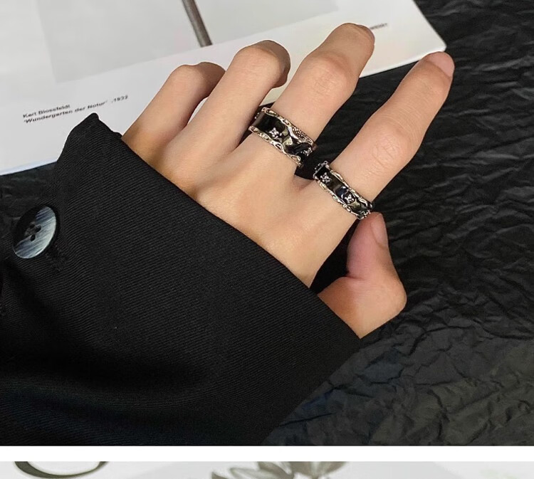 Qi Xiaomi two-piece ring set for men, trendy hip-hop open-ended men's single ring, dark style student index finger ring, fashionable and versatile tail ring