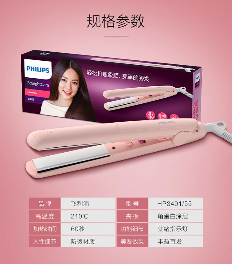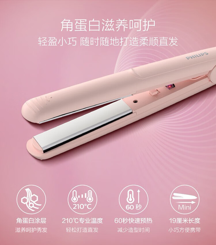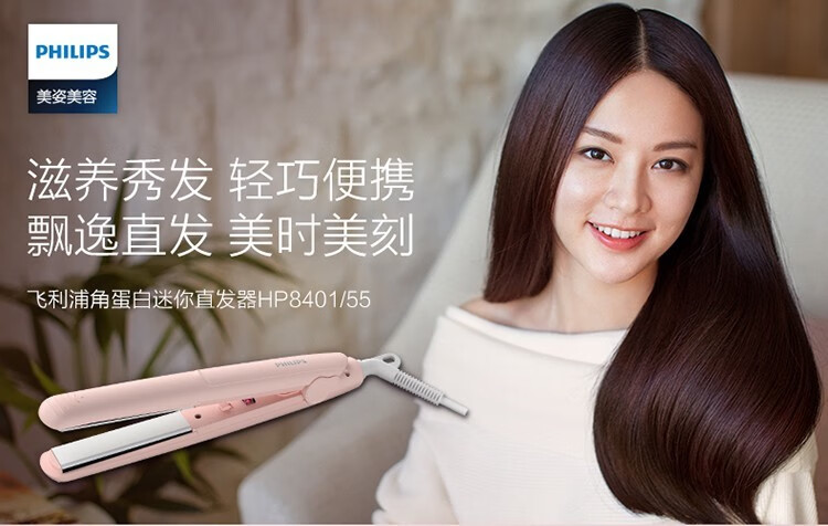 Philips (PHILIPS) Electric Curling Iron, Curling and Straightening Dual-Purpose Electric Plint Straight Clip Bangs Clip Mini Student Portable Suitable for Various Hair Types Birthday Gift for Girlfriend HP8401/55