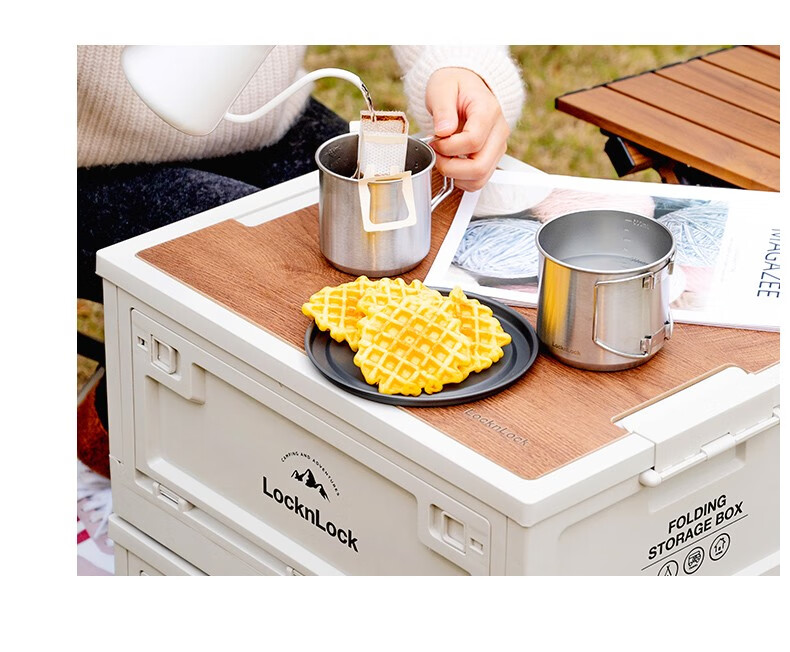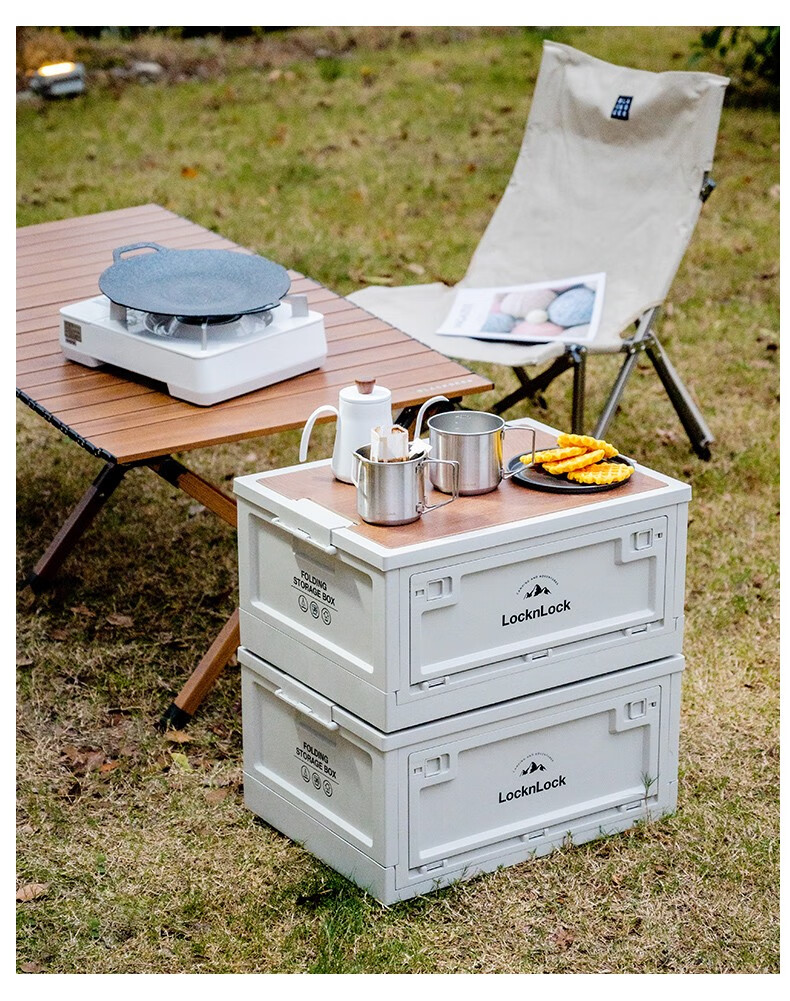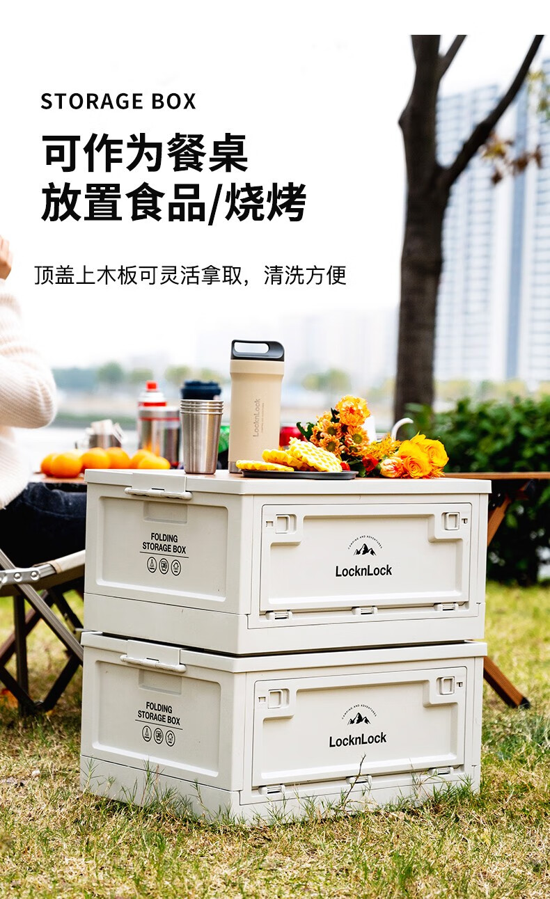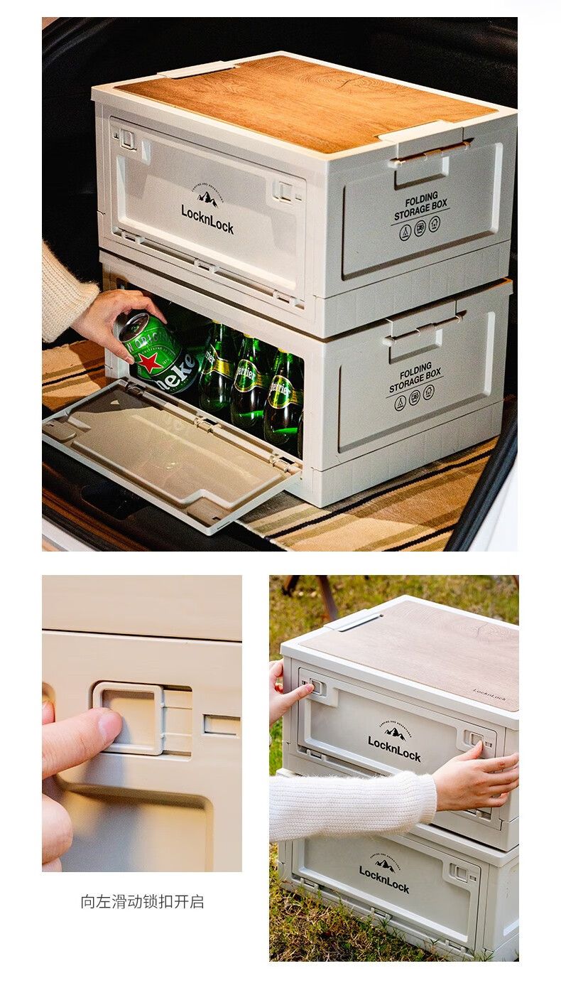 Lock & Lock Outdoor Camping Storage Box Storage Box Extra Large Capacity Foldable Portable Camping Picnic Box Wooden Cover Model Large - Foldable Storage Box