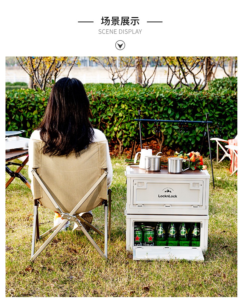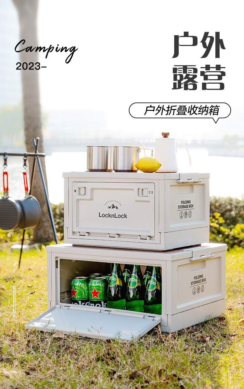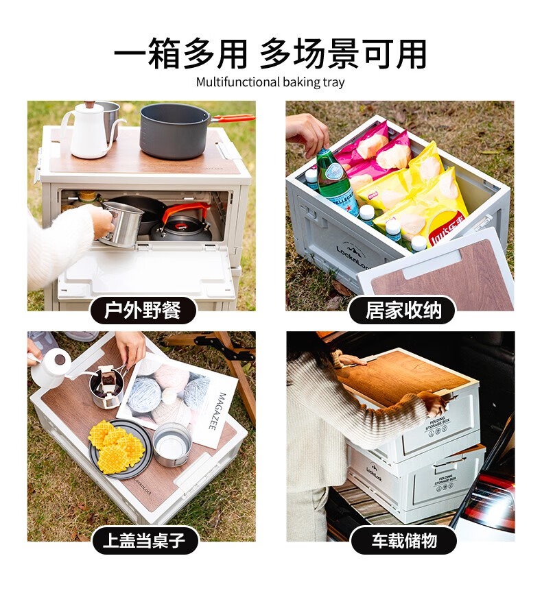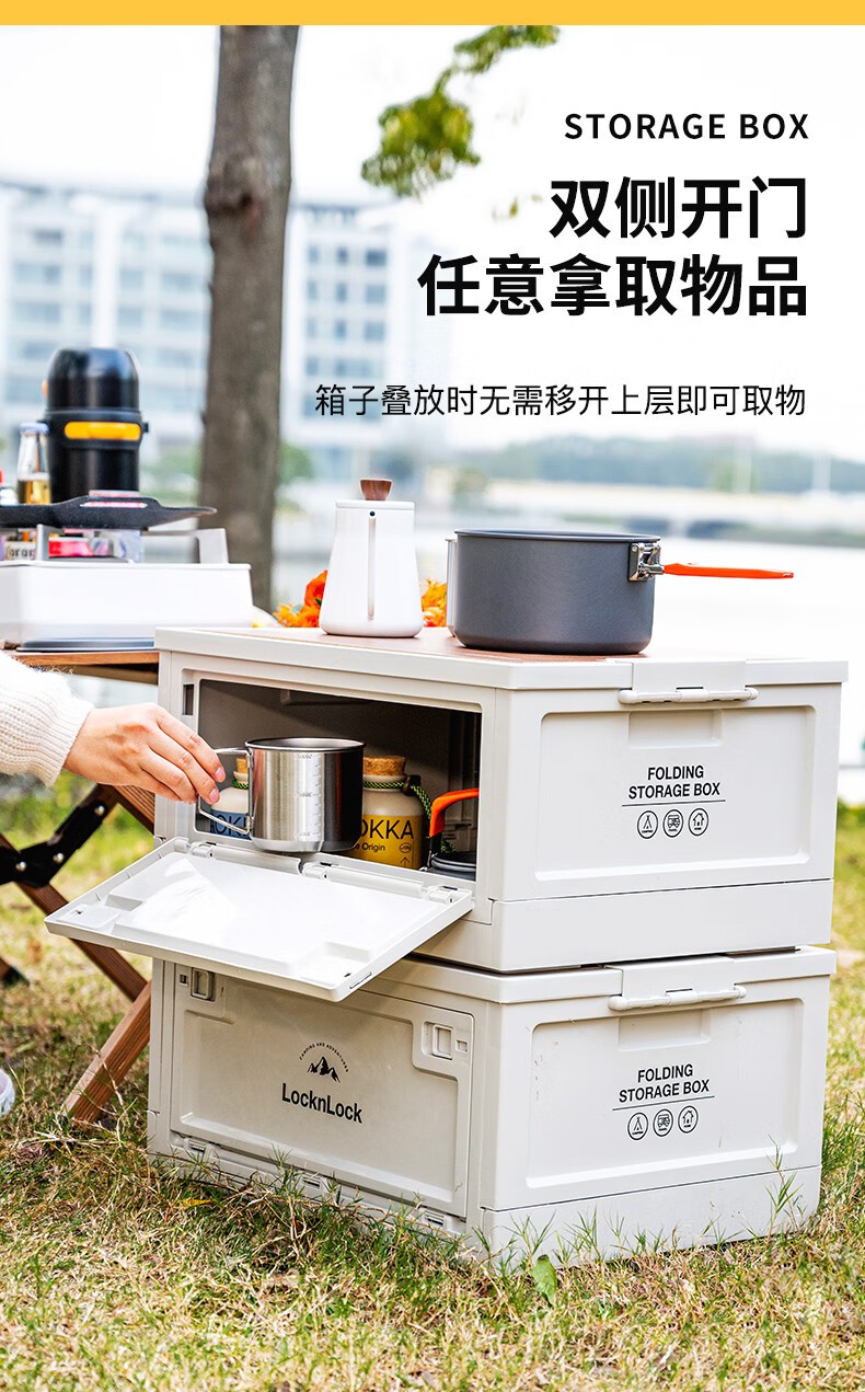 Lock & Lock Outdoor Camping Storage Box Storage Box Extra Large Capacity Foldable Portable Camping Picnic Box Wooden Cover Model Large - Foldable Storage Box
