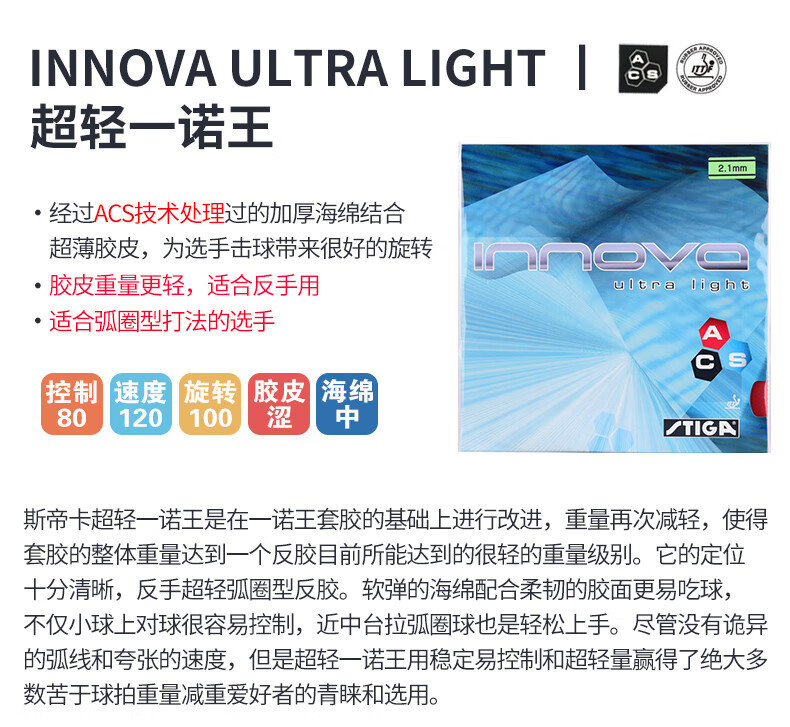Stiga table tennis rubber ultra-light Innova Ultra Light (1 picture) Red