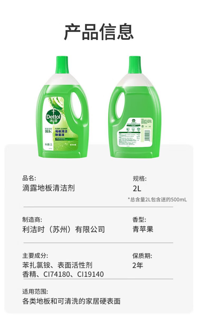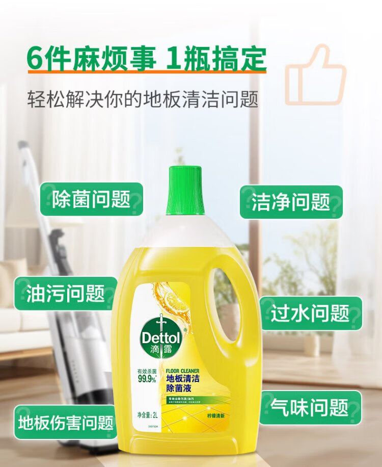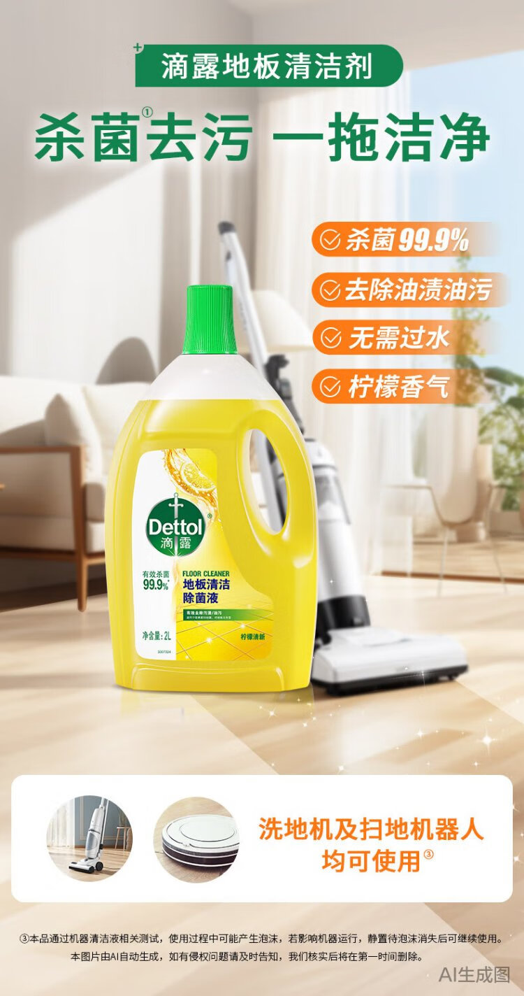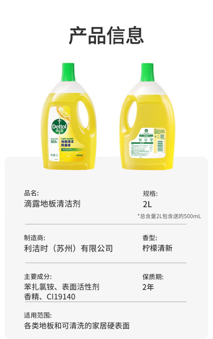 Dettol floor cleaner, wood floor tile mopping machine available, non-oxalic acid maintenance wax, latex paint cleaning tablets, double bottles for sale, lemon fragrance 2L*2 bottles