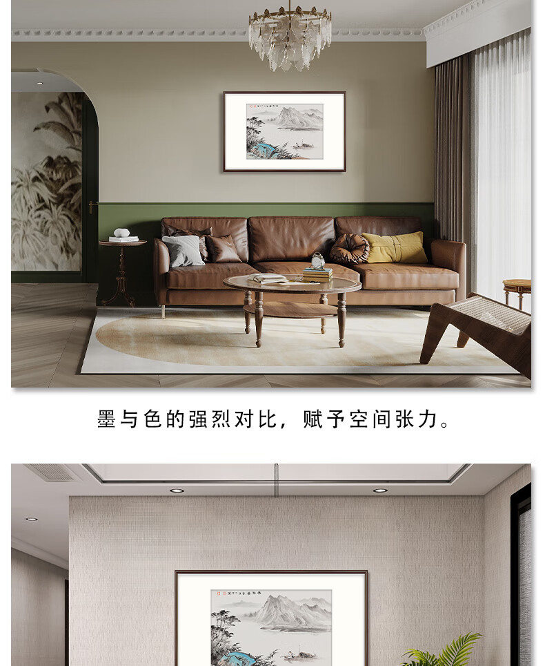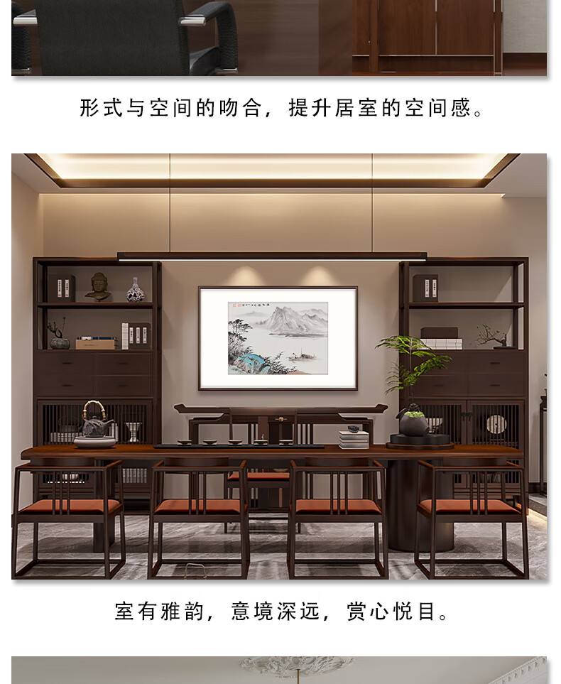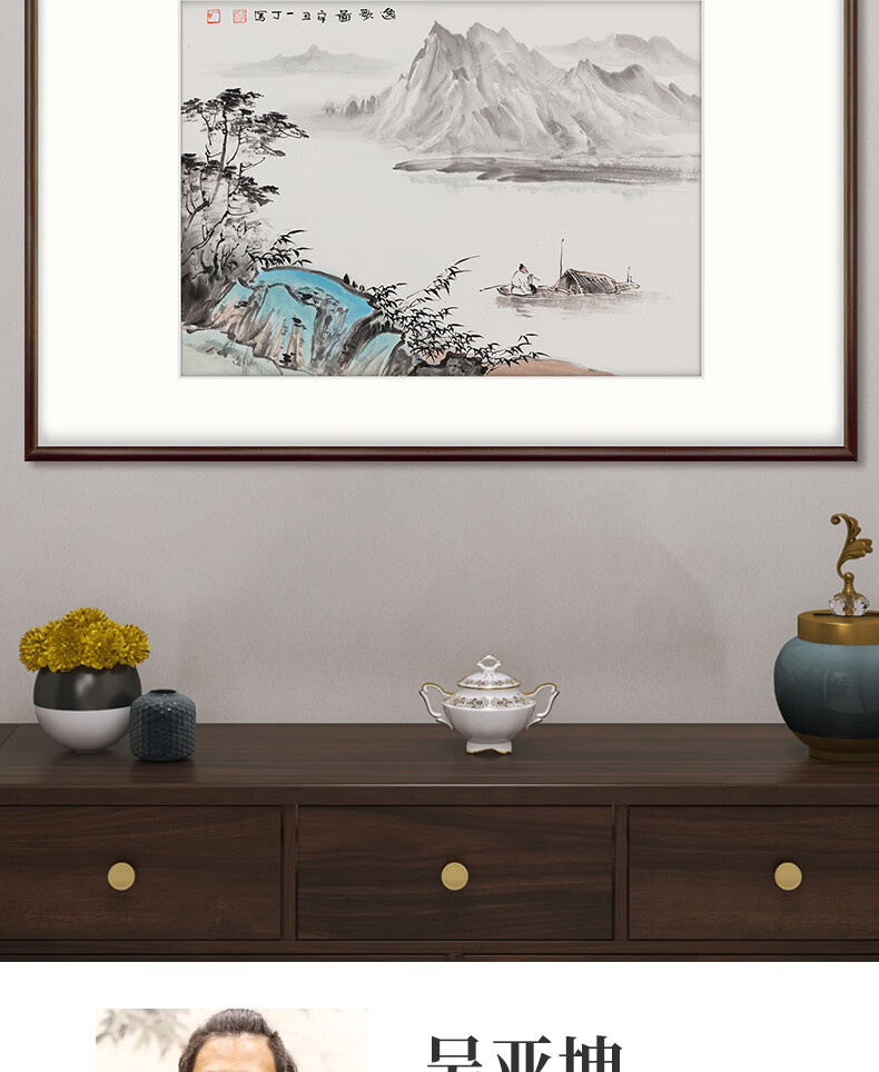 Bogu Painting Garden hand-painted new Chinese-style entrance decorative painting landscape painting restaurant hanging painting corridor aisle mural Chinese painting tea room ink painting elegant walnut Luban ruler lucky number length 102cm * height 68cm