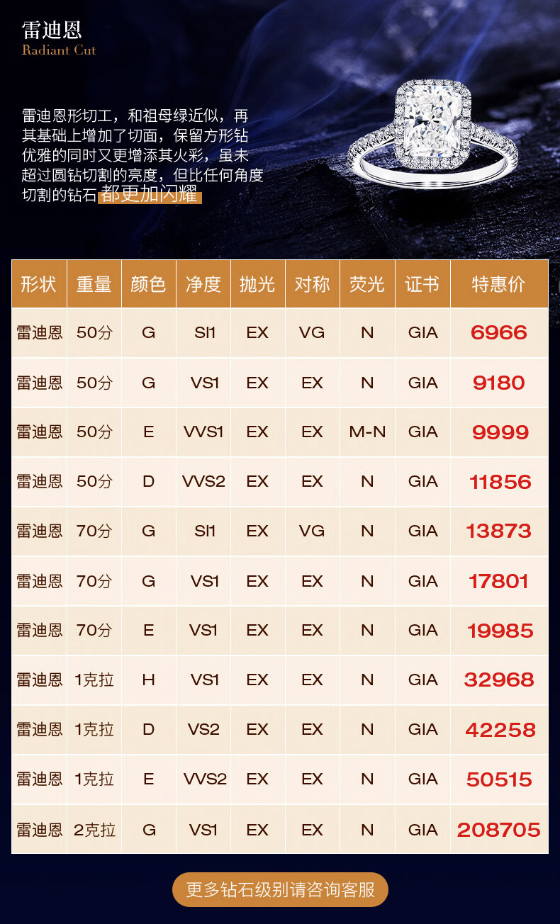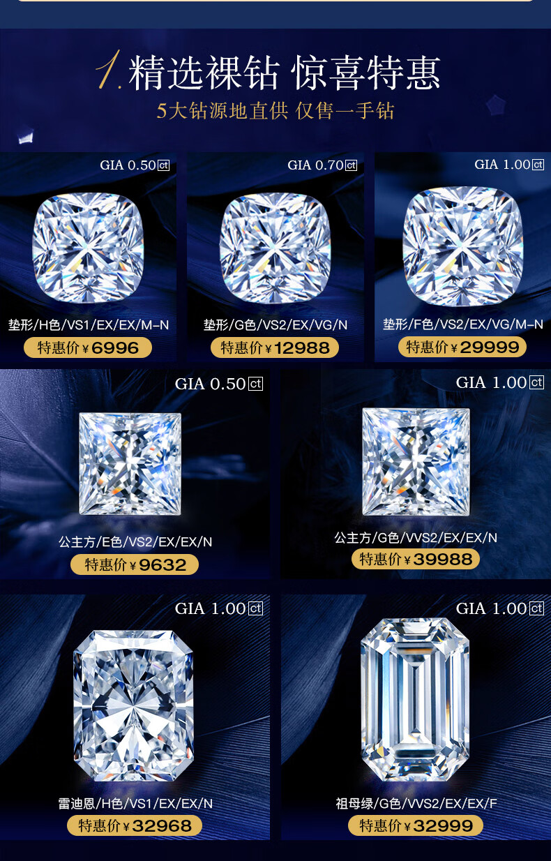 I Love Diamond Network GIA Loose Diamond Customized Princess Cut Diamond Ring Female Proposal Wedding Diamond Ring Special Shaped Diamond 30 Points 50 Points 1 Carat 70 Points E Color VS2 EX EX N