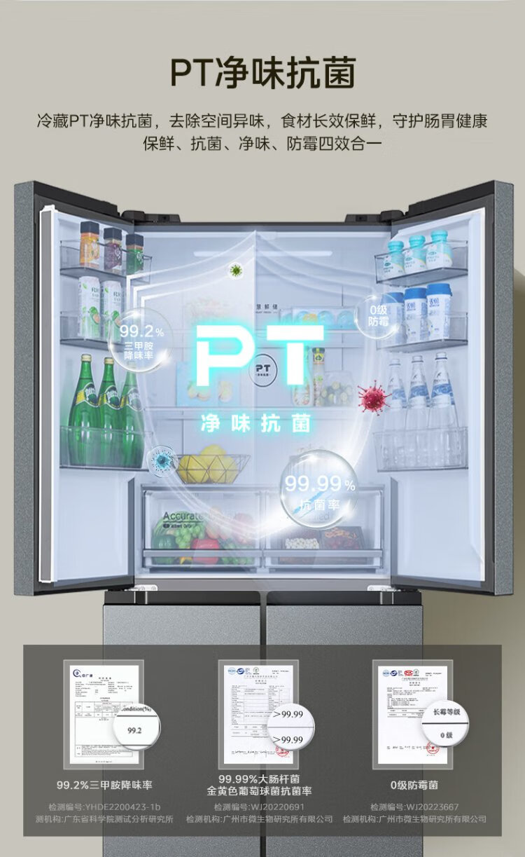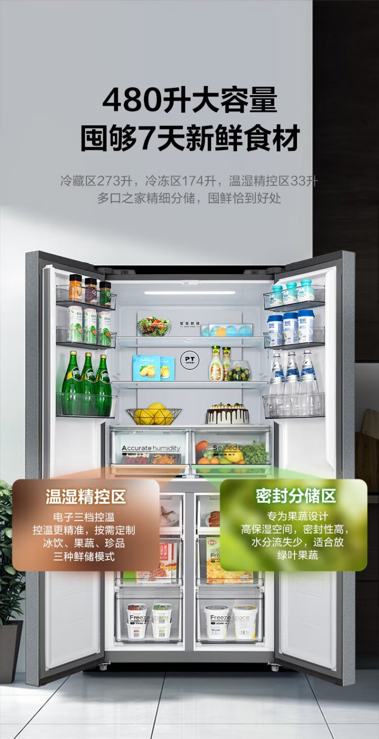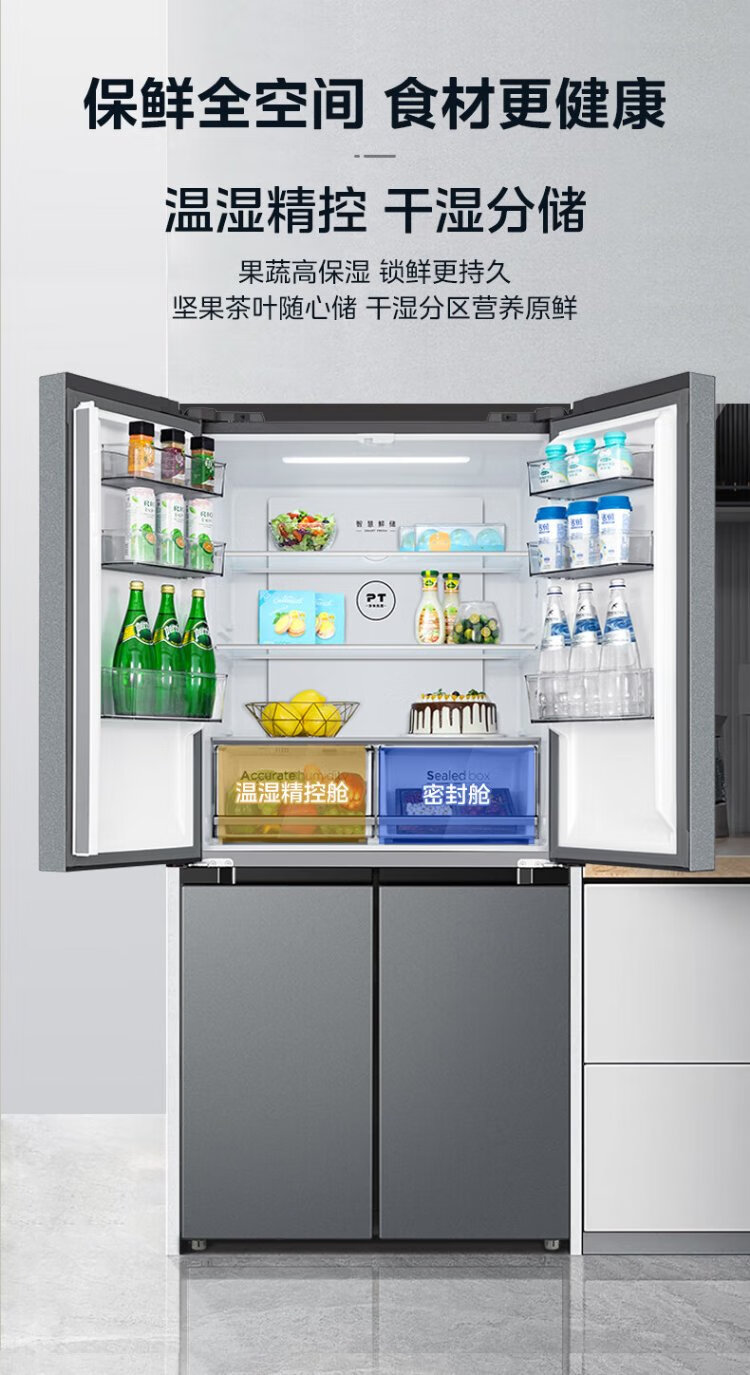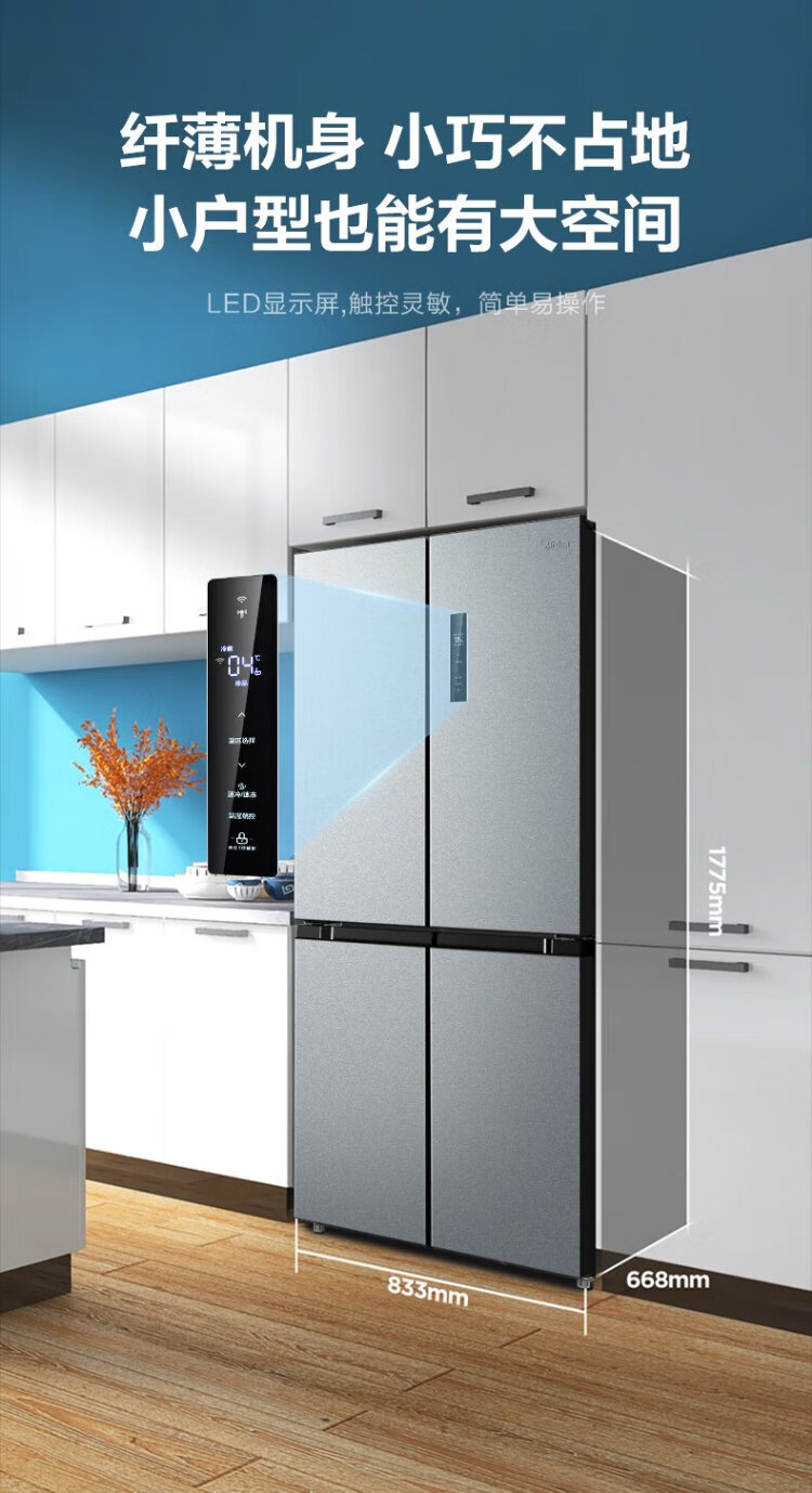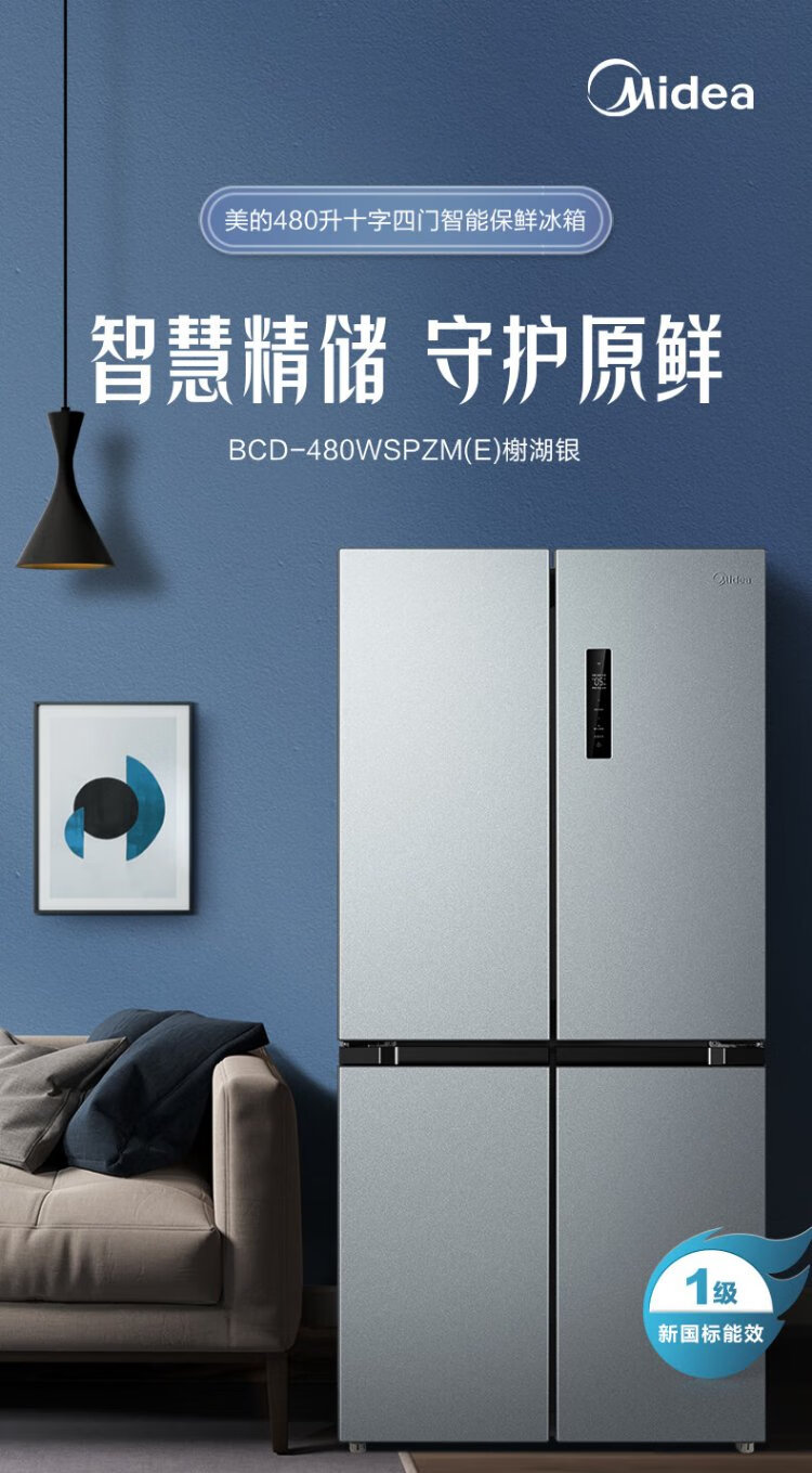 Midea 480L Cross Door Refrigerator Dual Frequency Conversion Level 1 Energy Efficiency Home Smart Refrigerator BCD-480WSPZM(E) National Subsidy BCD-480WSPZM(E)
