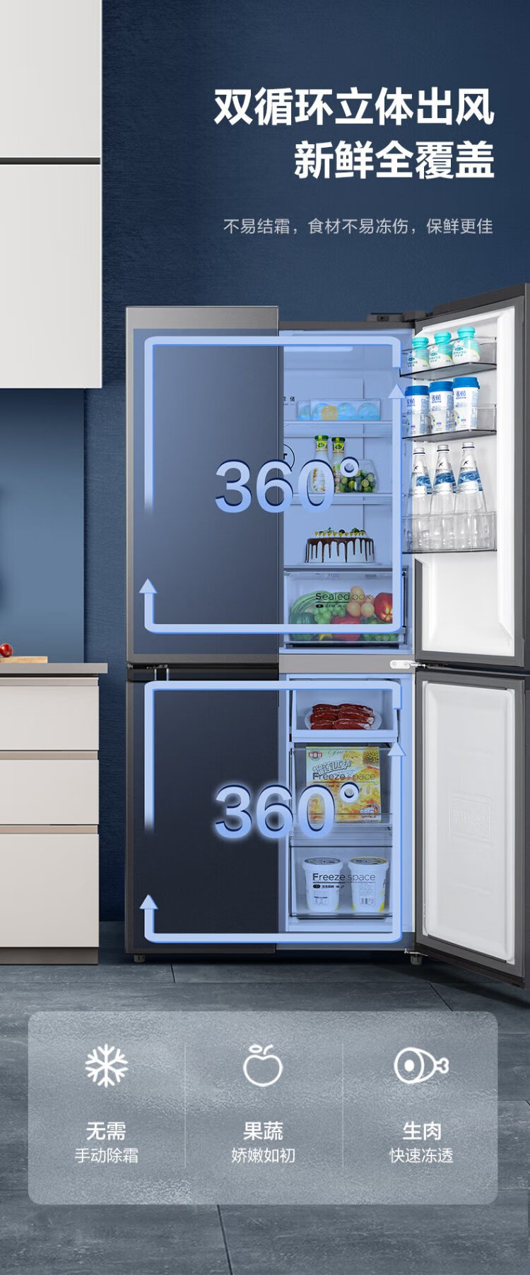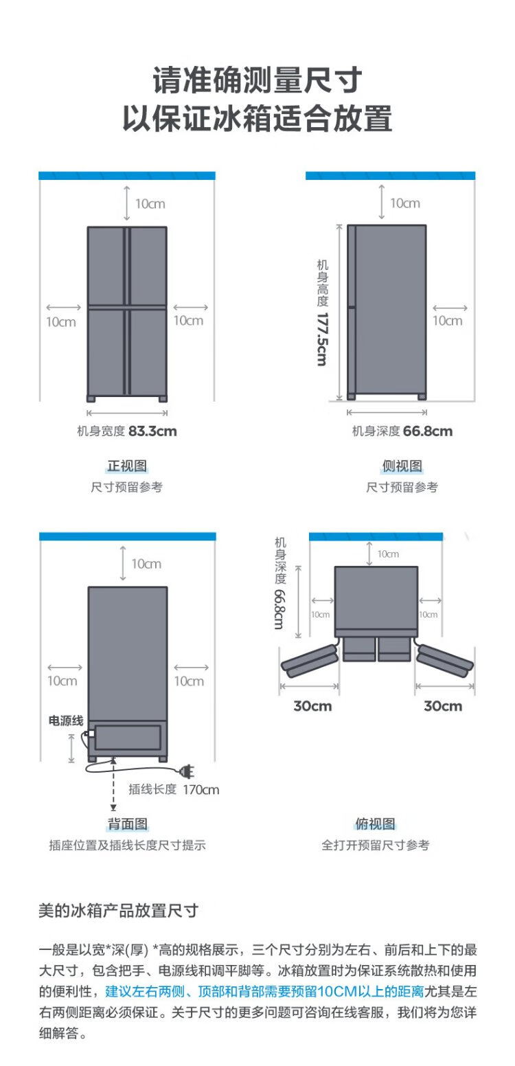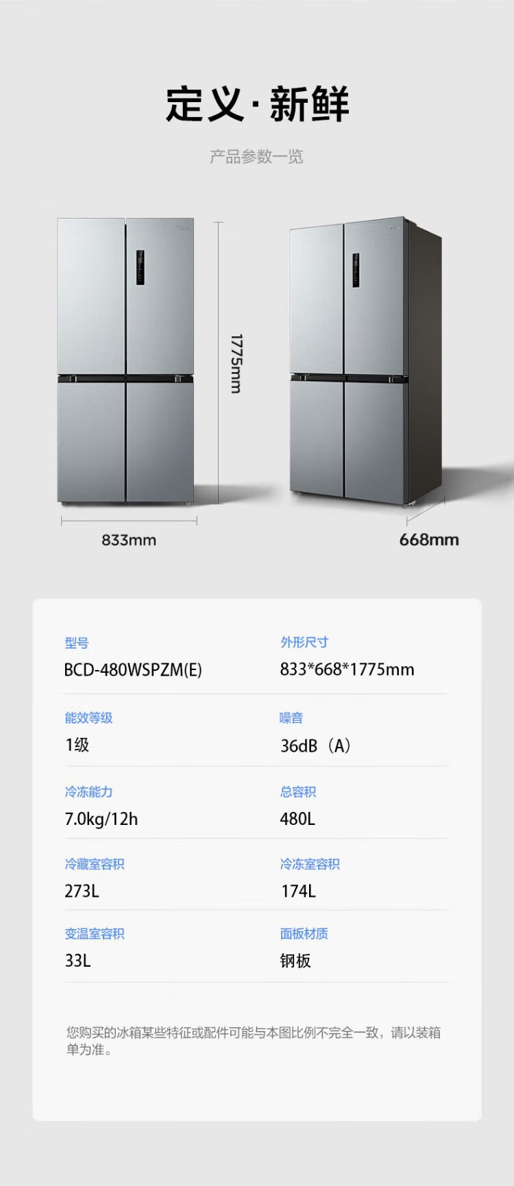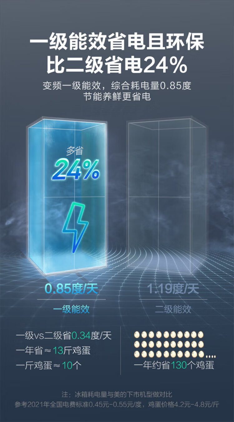 Midea 480L Cross Door Refrigerator Dual Frequency Conversion Level 1 Energy Efficiency Home Smart Refrigerator BCD-480WSPZM(E) National Subsidy BCD-480WSPZM(E)