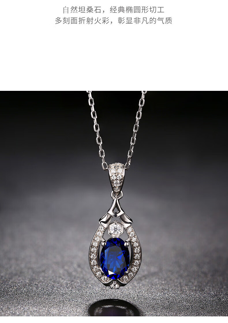 Lirokini Necklace Women's Tanzanite Blue Gemstone Pendant 18 Gold K Diamond Luxury Jewelry New Year's Birthday Gift Tanzanite Pendant (Customized and shipped within 3 days)