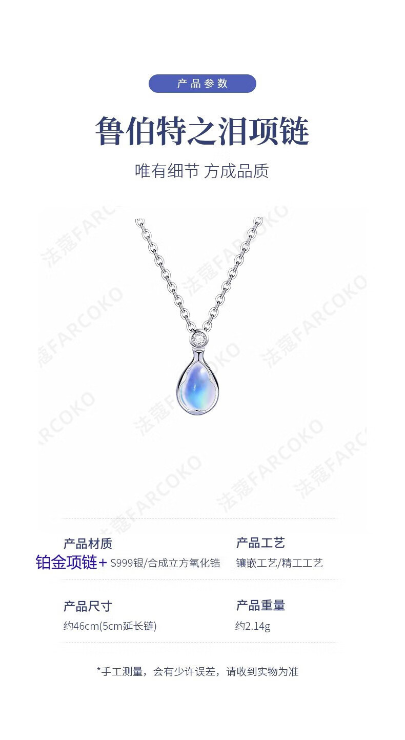 Farcoko platinum necklace women's pt950 Rupert's Tears pendant temperament clavicle chain Christmas and Valentine's Day gift for girlfriend Rupert's Tears necklace exquisite gift box