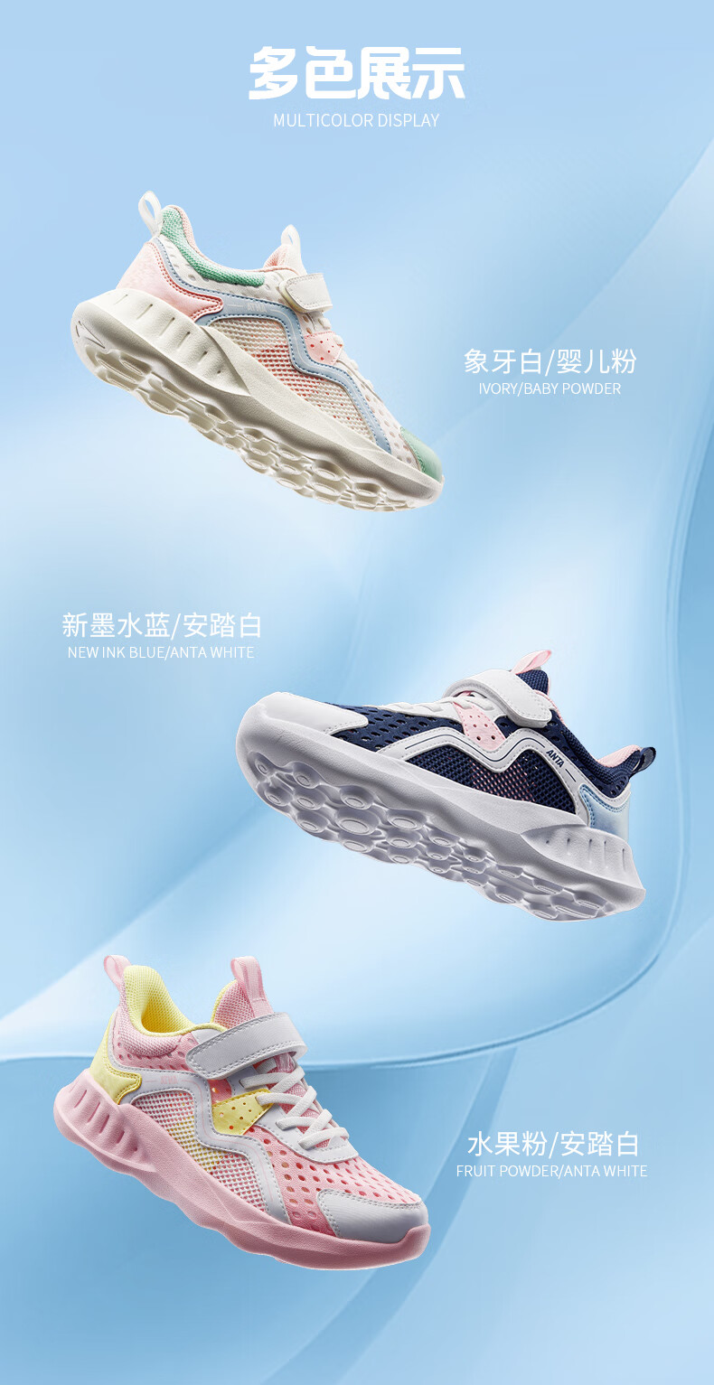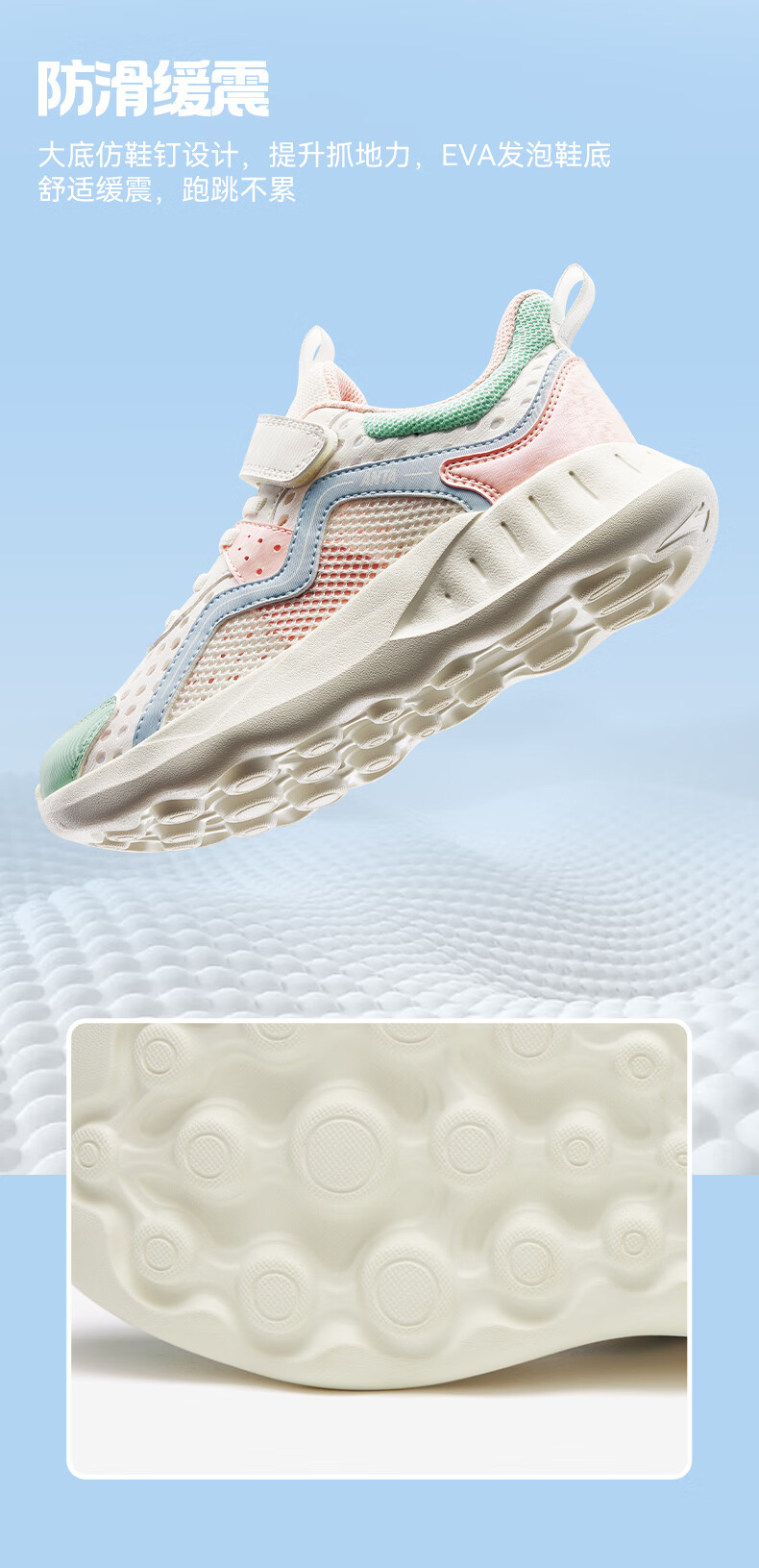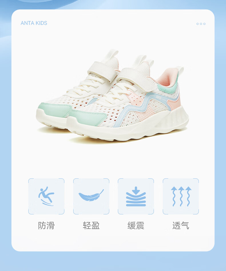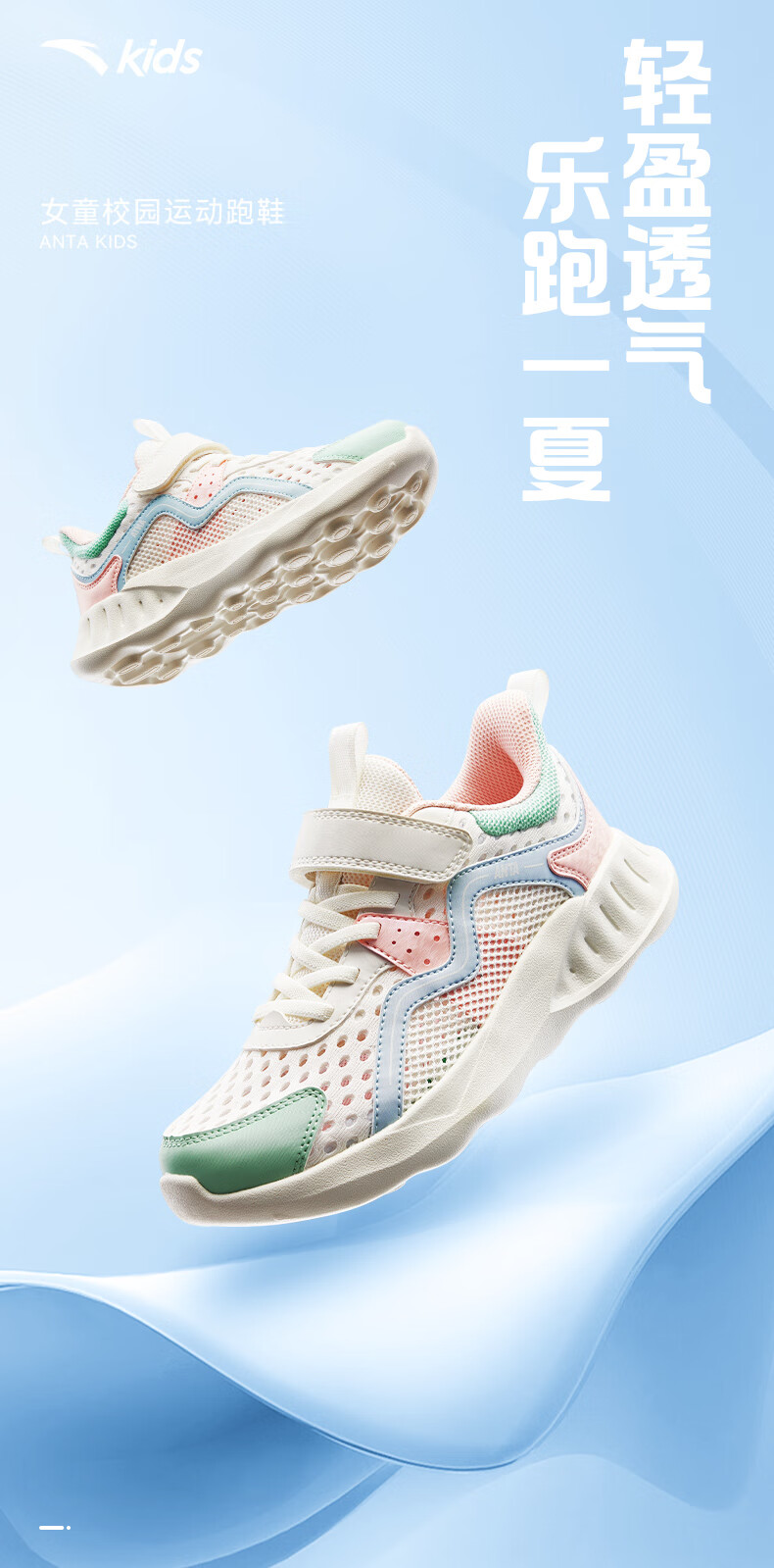 ANTA children's sports shoes spring and summer men's and women's big children's shoes mesh breathable comfortable cushioning running shoes wear-resistant campus running shoes summer mesh aqua/white-1 34/21.5cm