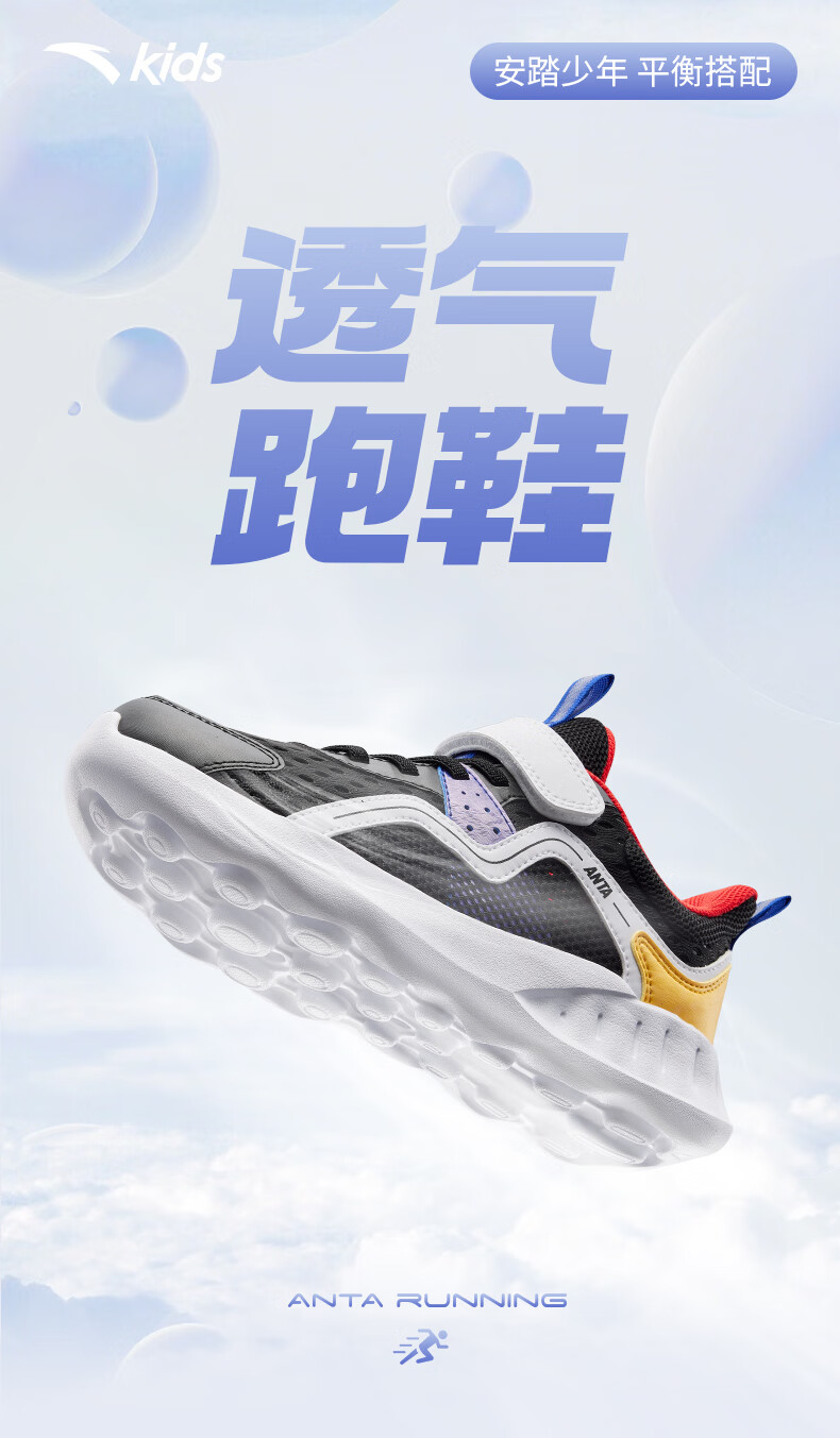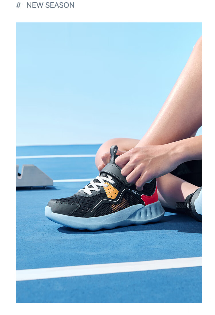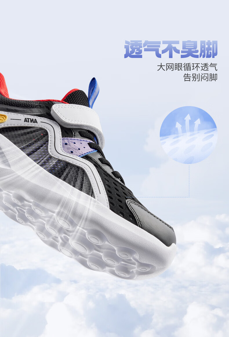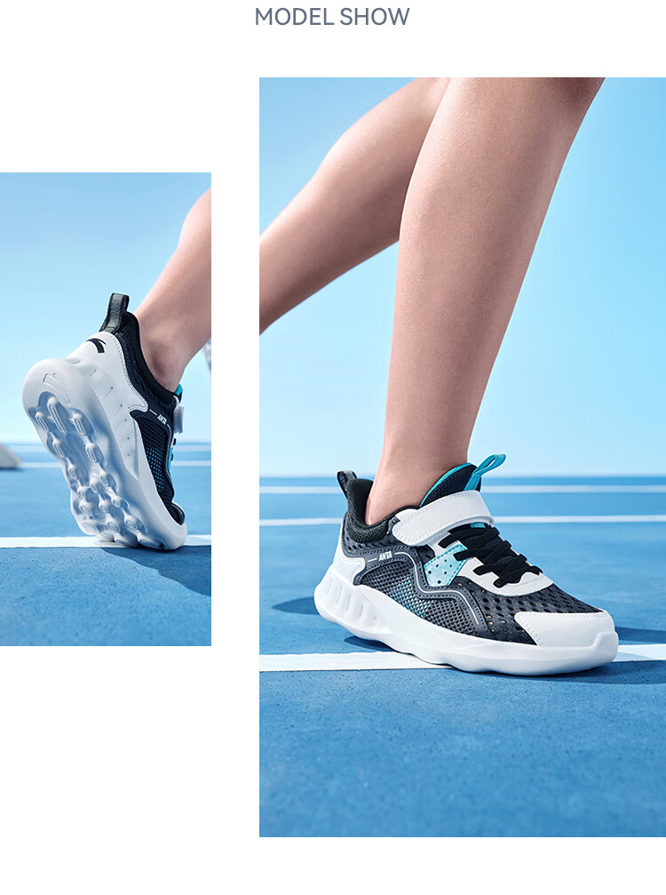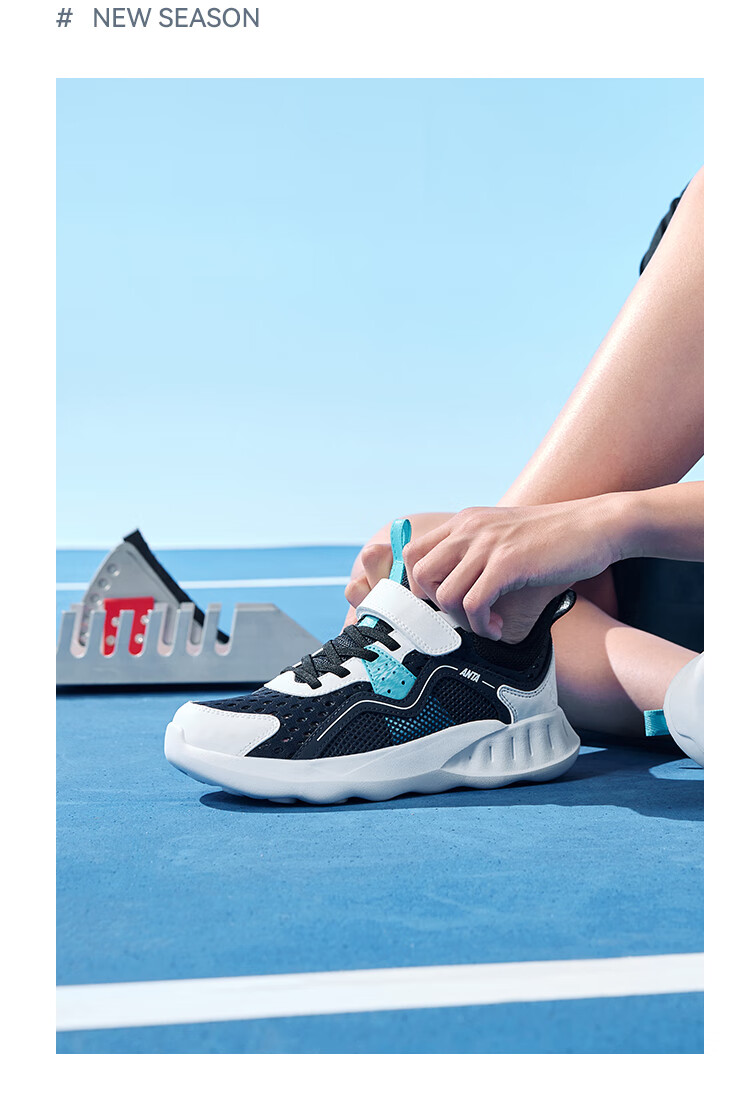 ANTA children's sports shoes spring and summer men's and women's big children's shoes mesh breathable comfortable cushioning running shoes wear-resistant campus running shoes summer mesh aqua/white-1 34/21.5cm