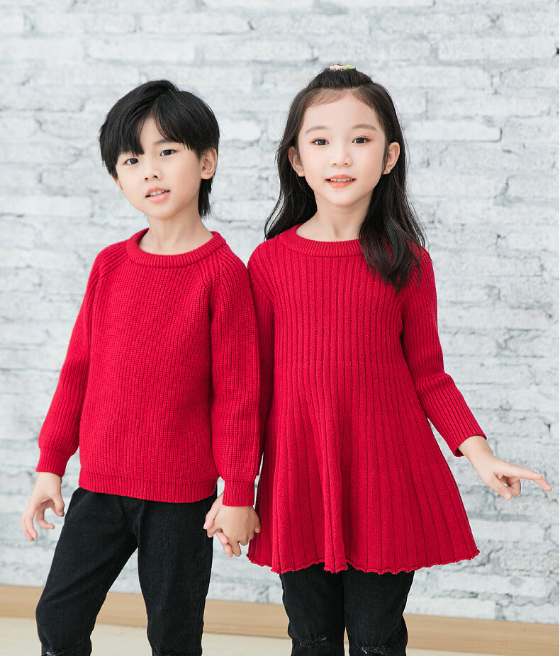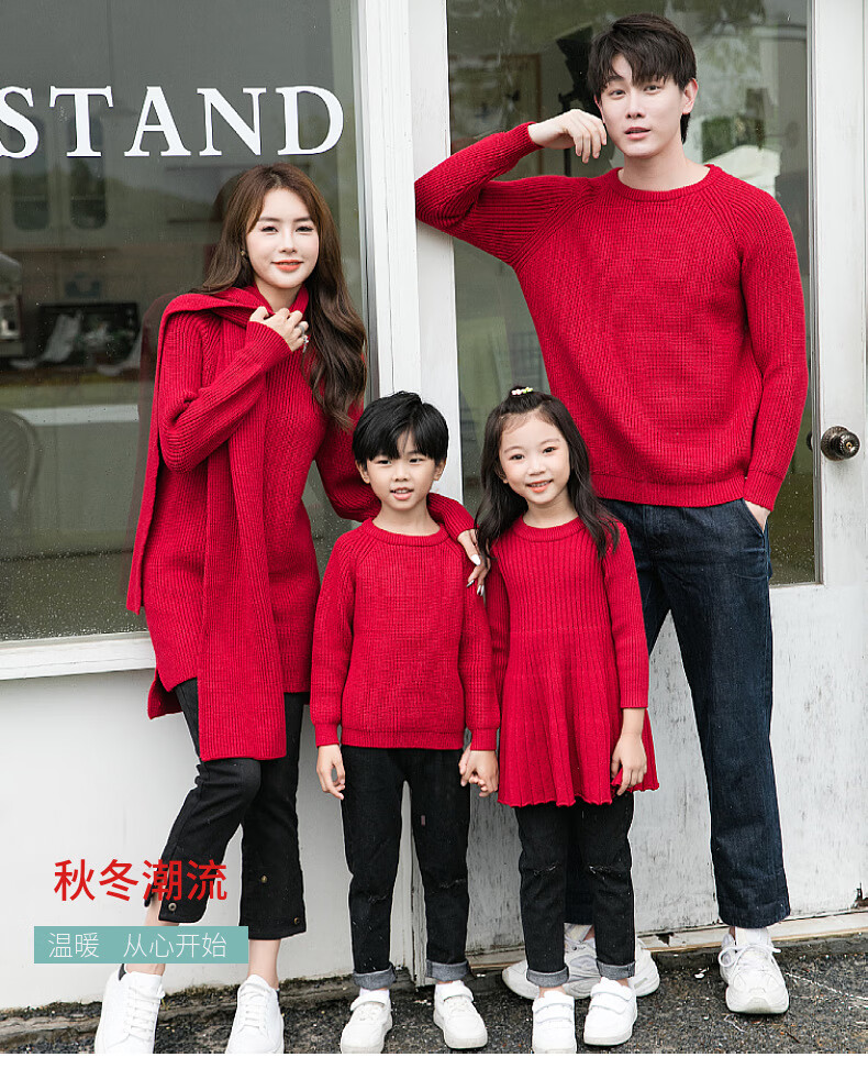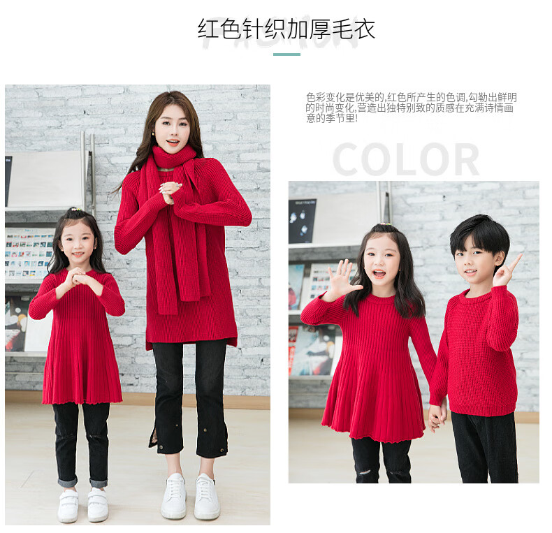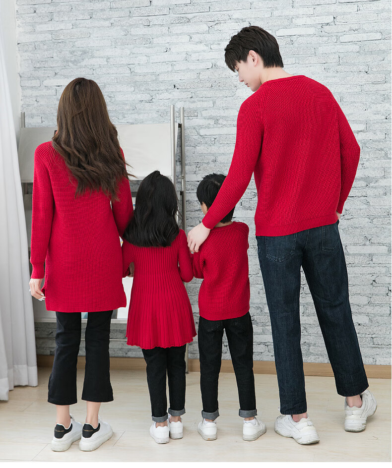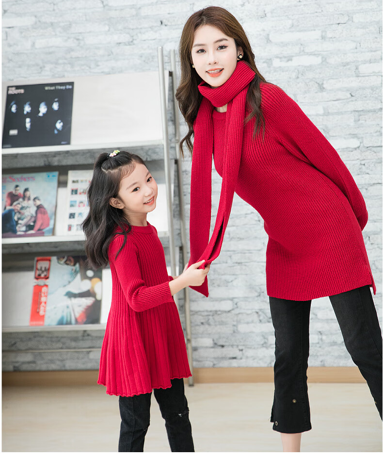 BUBBLE ORANGE parent-child red sweater Horse Year clothes autumn and winter round neck mother-daughter skirt family wear sweater for a family of three and four burgundy mother size S (recommended 90-105 Jin Jin equals 0.5 kg)