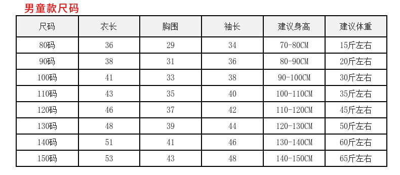 China (cm) 165 / 88-90 170 / 96-98 175 / 108-110 180 / 118-122 185 / 126-130