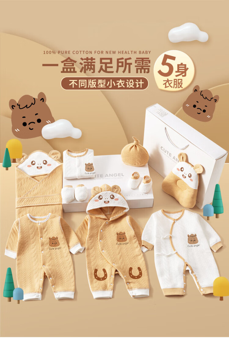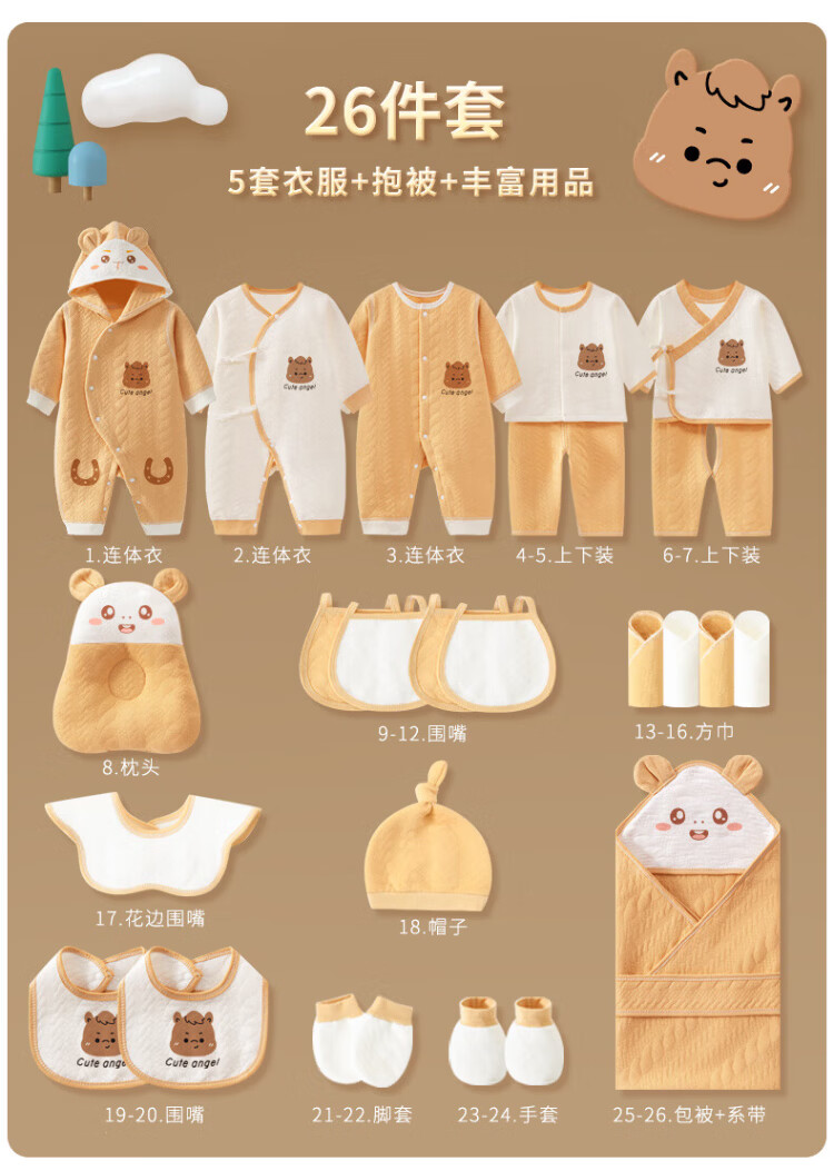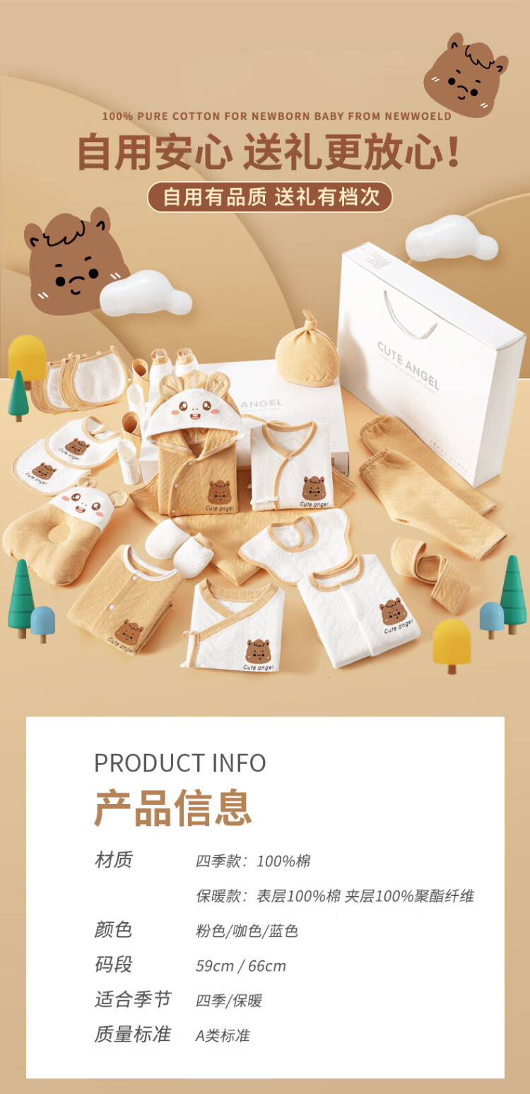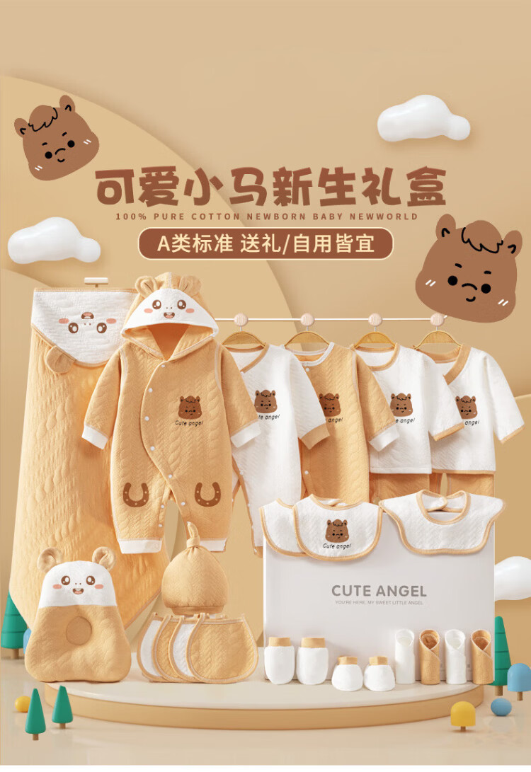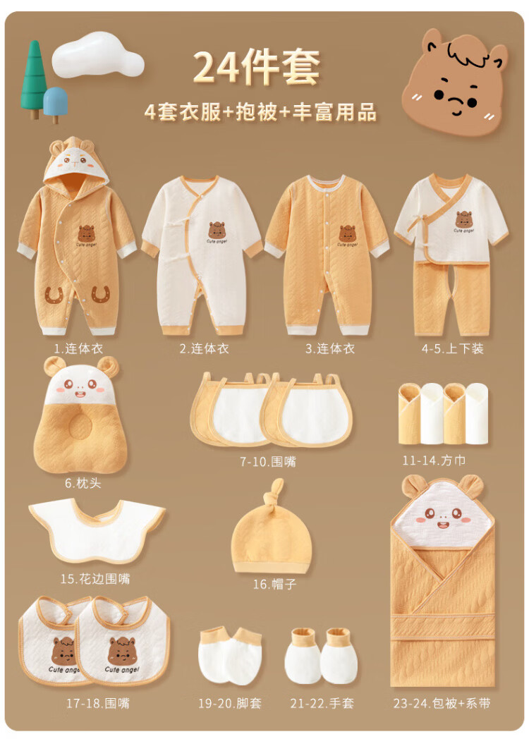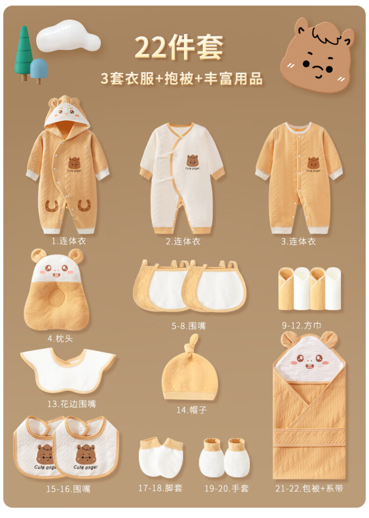 SANFE ELEPHANT Baby Clothes Newborn Gift Box Cotton Set Spring, Summer, Autumn and Winter Baby First-born Gift Maternal and Infant Supplies Warm Blue 22-piece Set 59cm (0-3 Months)