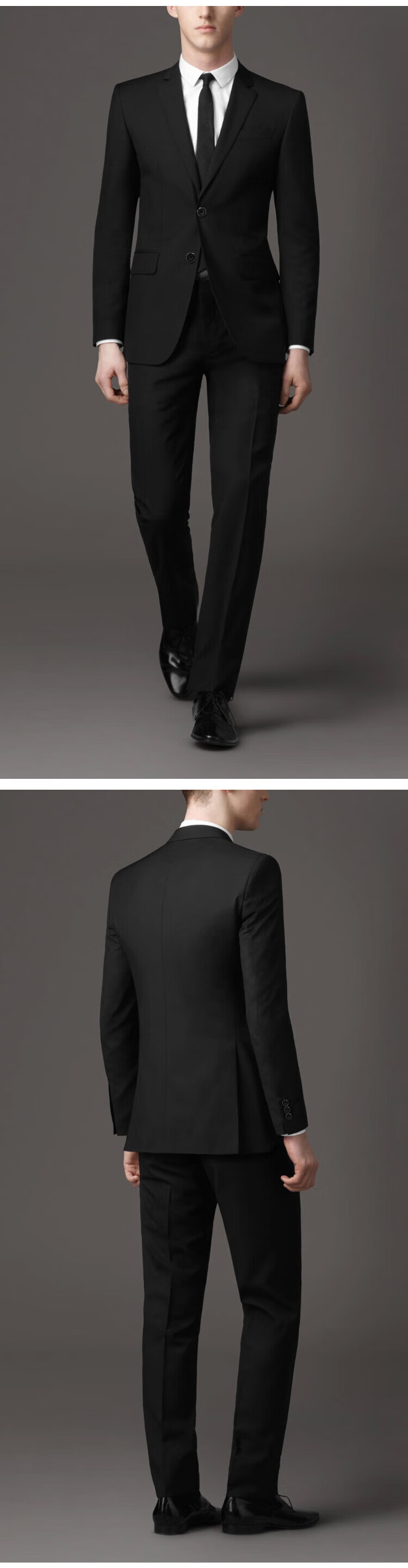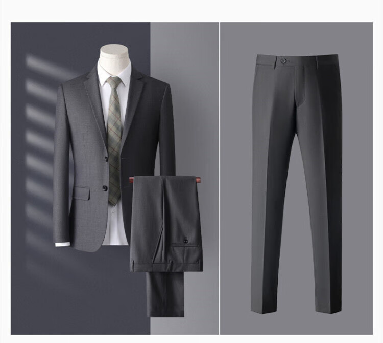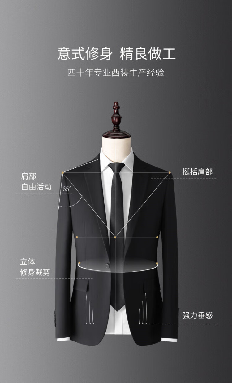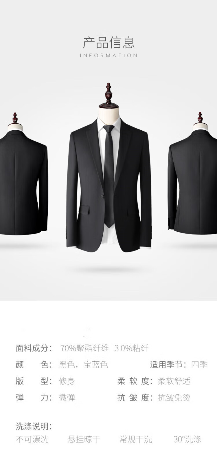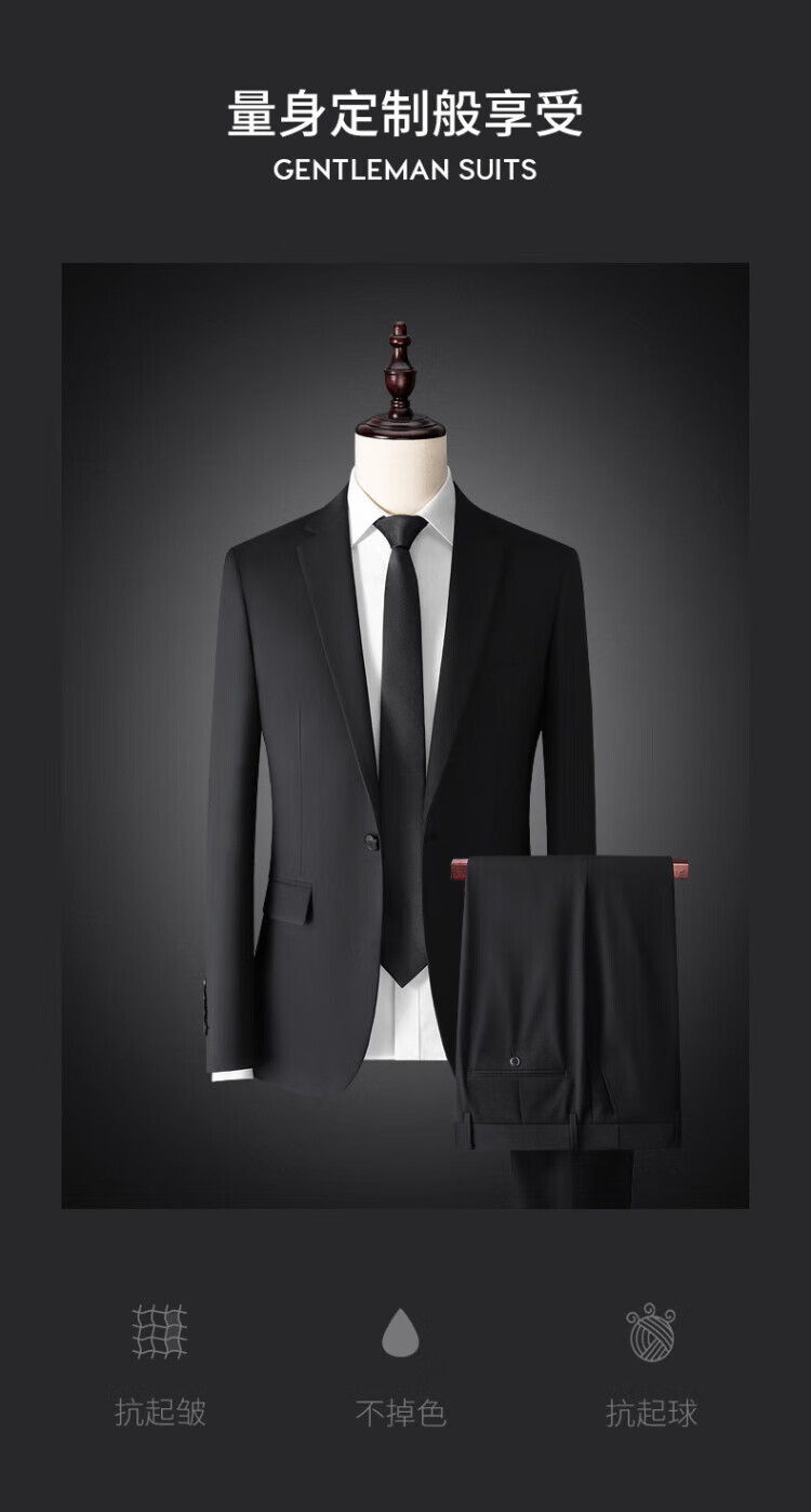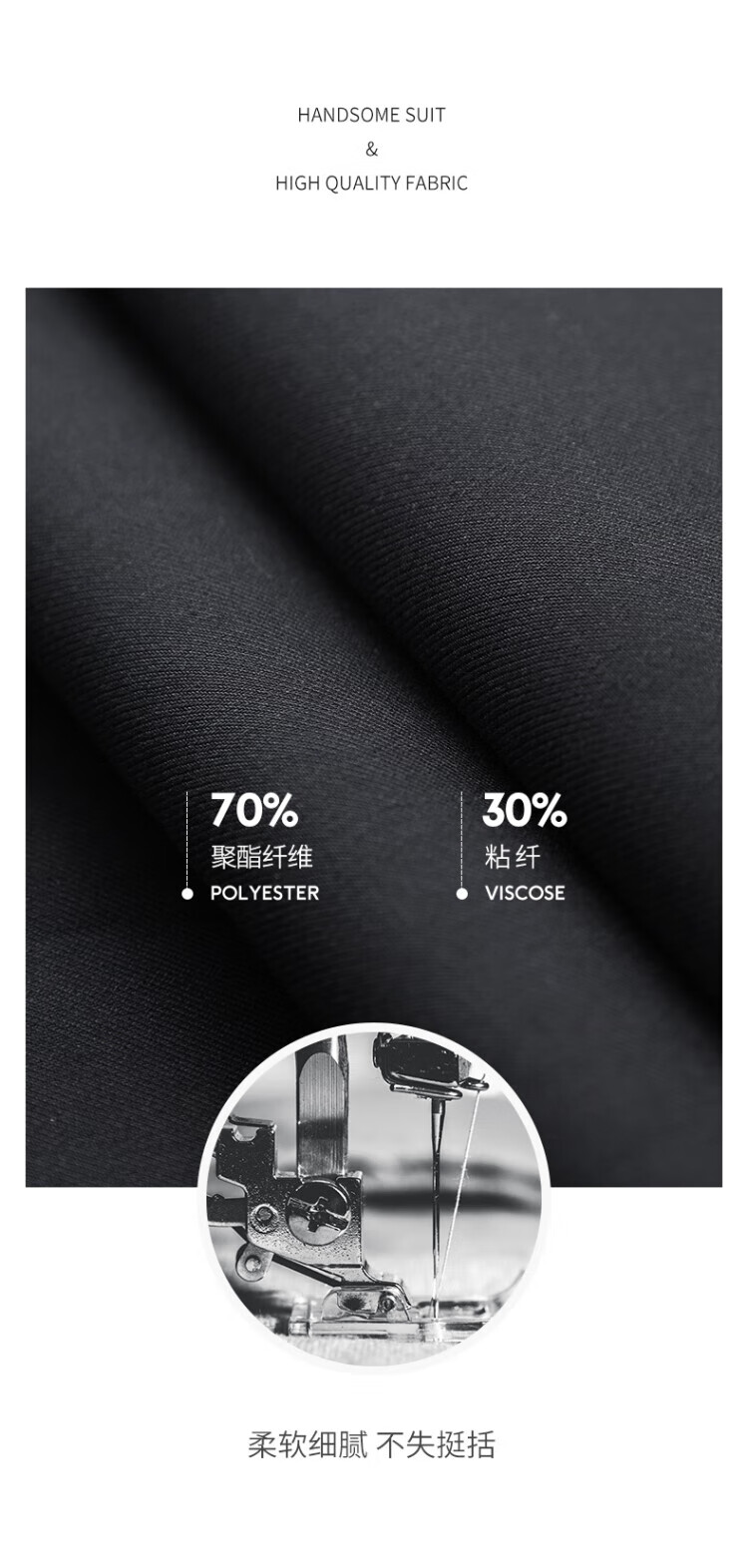 ROMON new suit men's four seasons business slim fit no ironing trendy casual men's small suit single suit top suit jacket warm black double button/single suit/double slit L 175