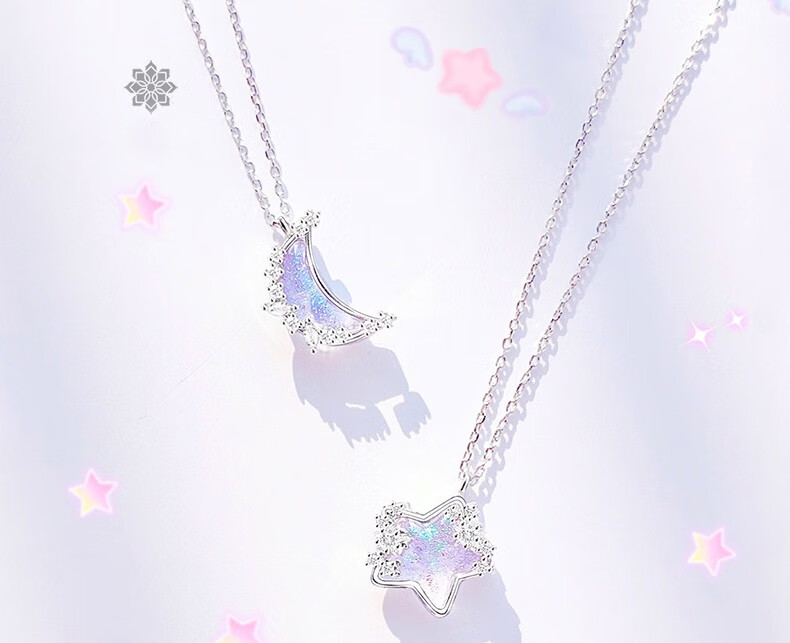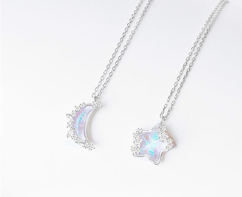 QMXD bestie necklace for two women, honey star moon clavicle chain couple necklace, Valentine's Day commemorative gift for girls