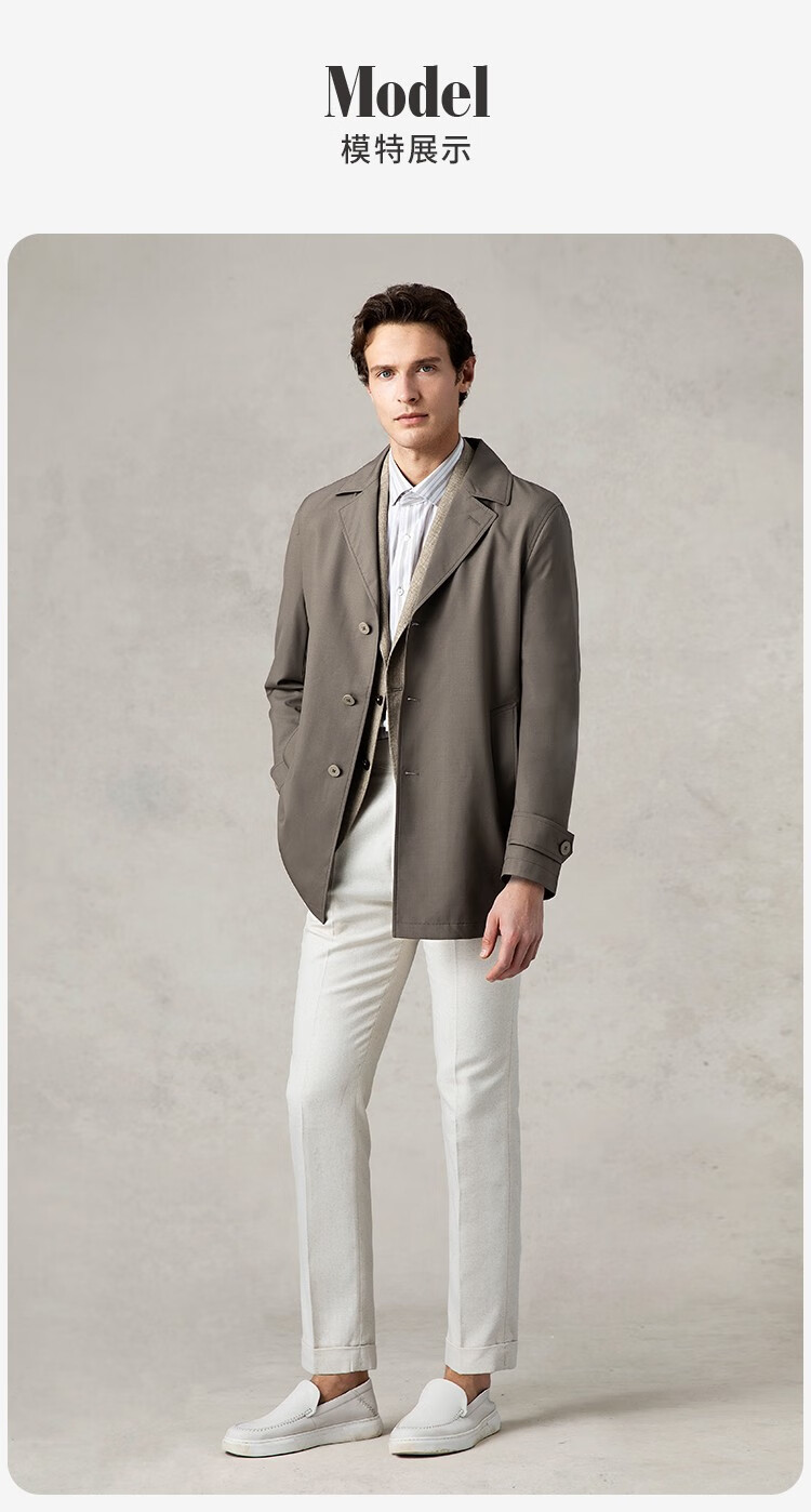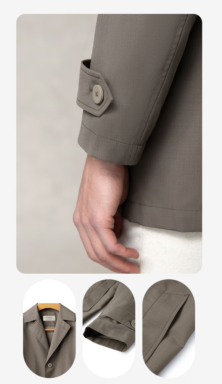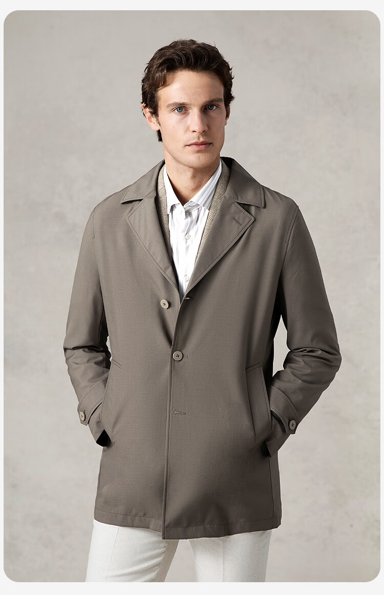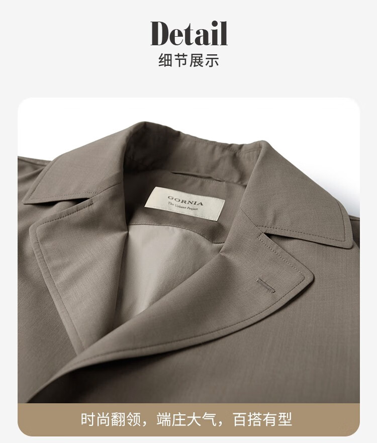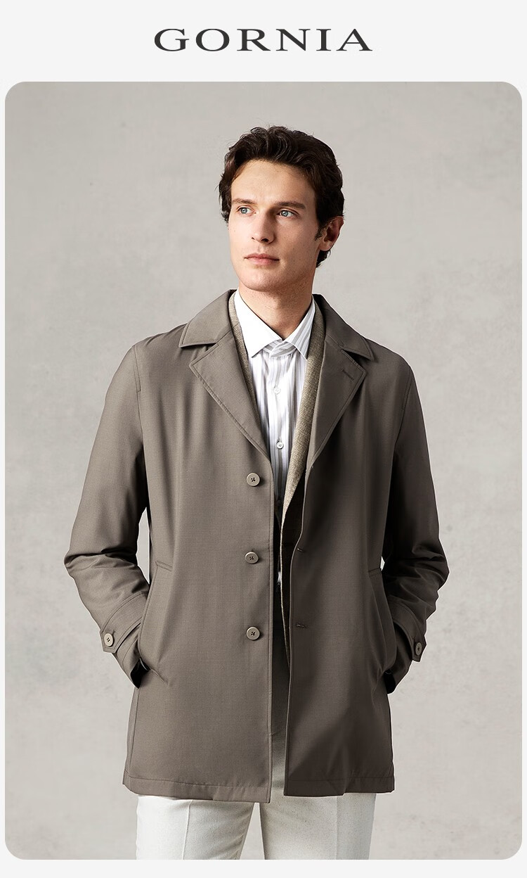 GORNIA men's business windbreaker wool lapel fashion middle-aged mid-length business jacket GBS22142280 coffee color L