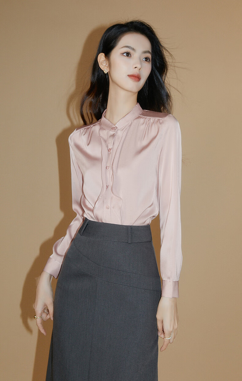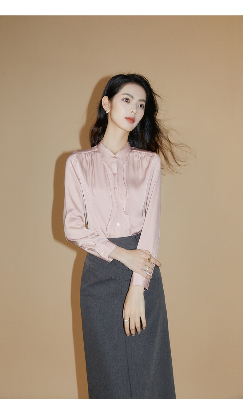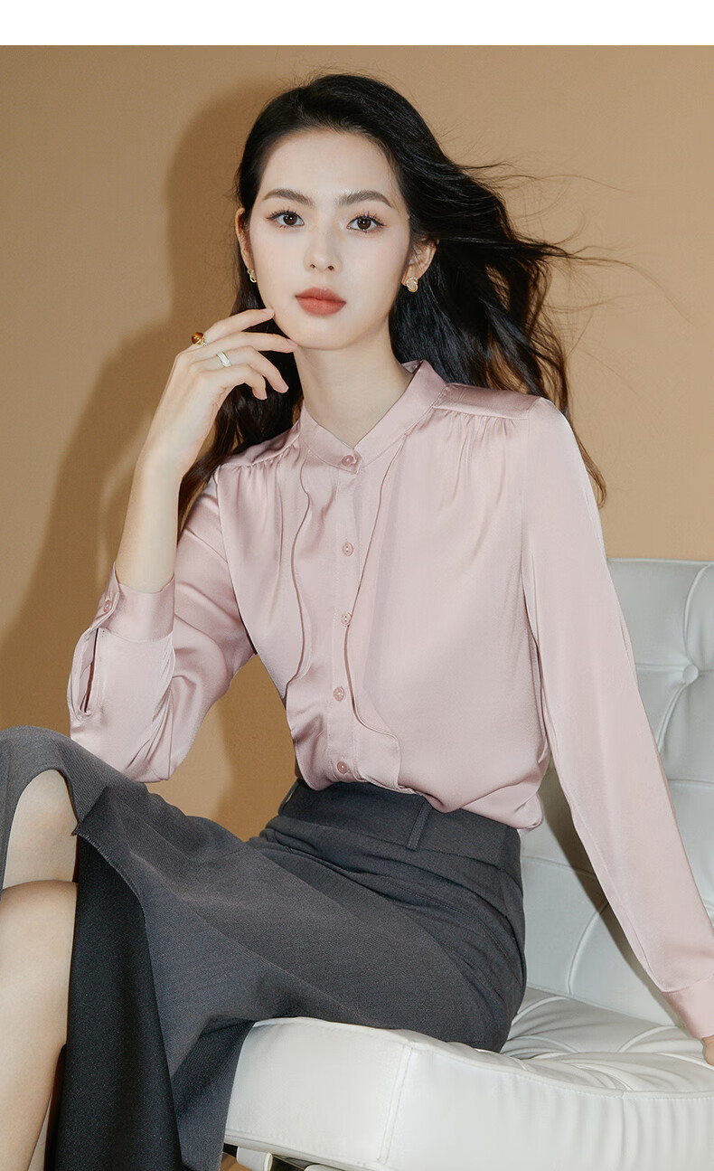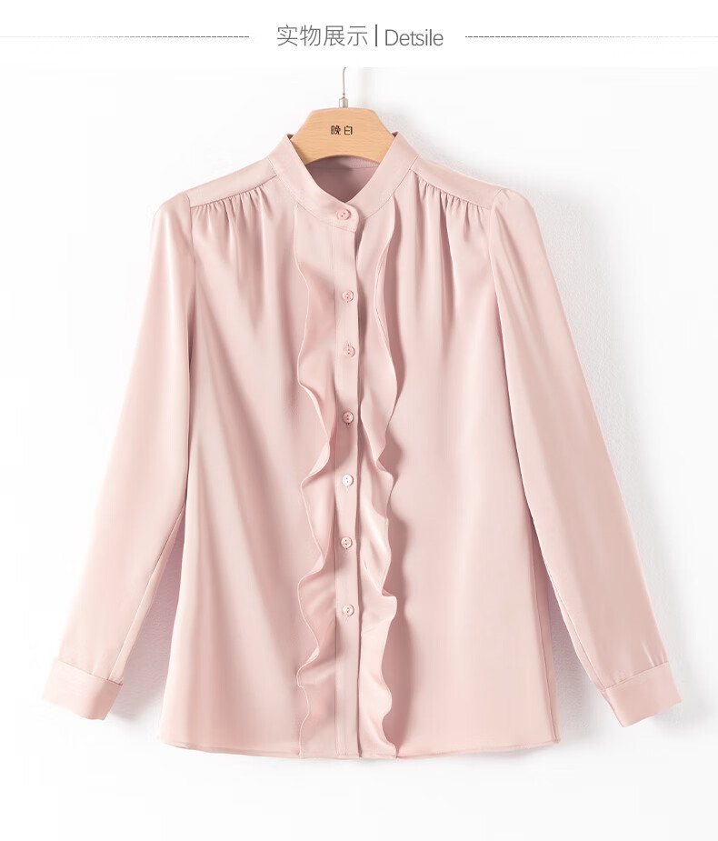 Late white off-size clearance design ruffled shirt for women 2026 spring temperament versatile commuting shirt pink M