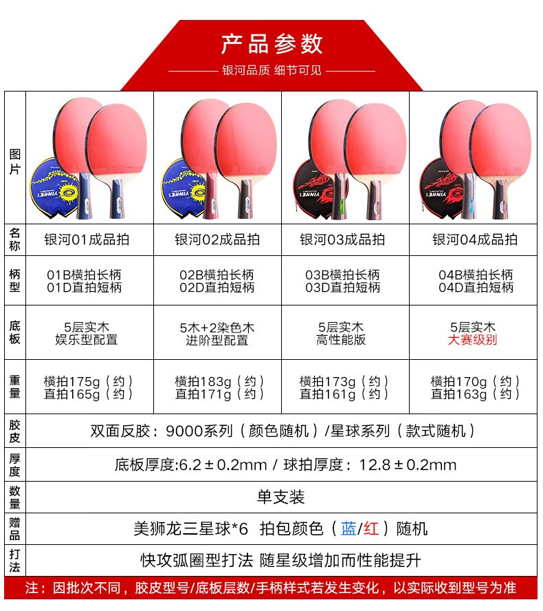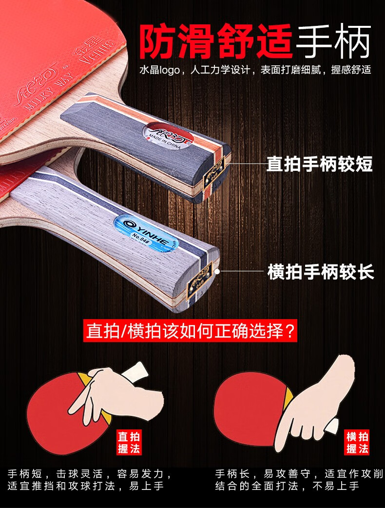 Galaxy (YINHE) table tennis racket four-star professional-grade straight horizontal racket for beginners 123-star primary school students' table tennis finished racket single racket 3-star horizontal racket/long handle
