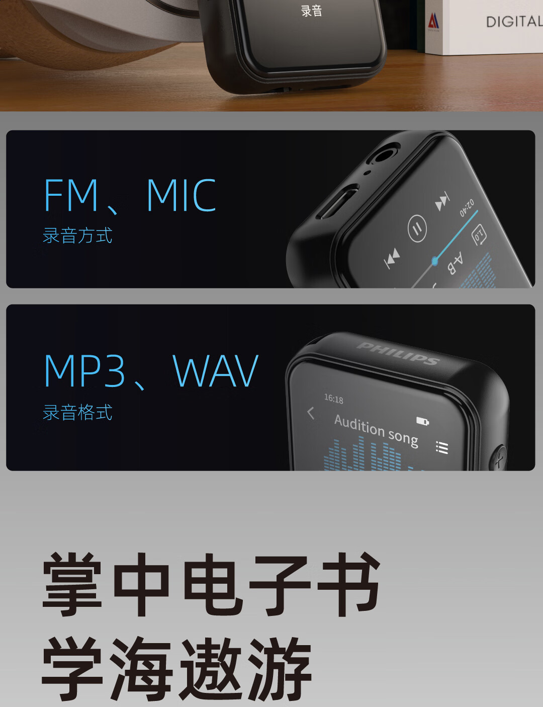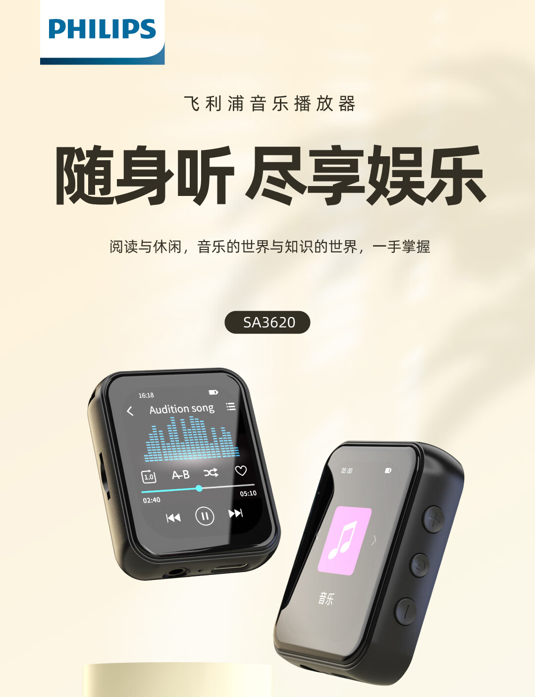 Philips MP3 Bluetooth Walkman Student Edition High School Junior High School Students Special English Listening Only Listening to Songs Lossless Music Player SA3620 32G/Wired Connection to Computer or Mobile Phone to Download Songs
