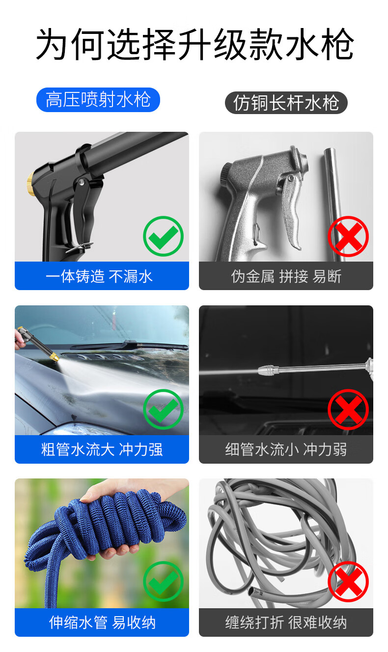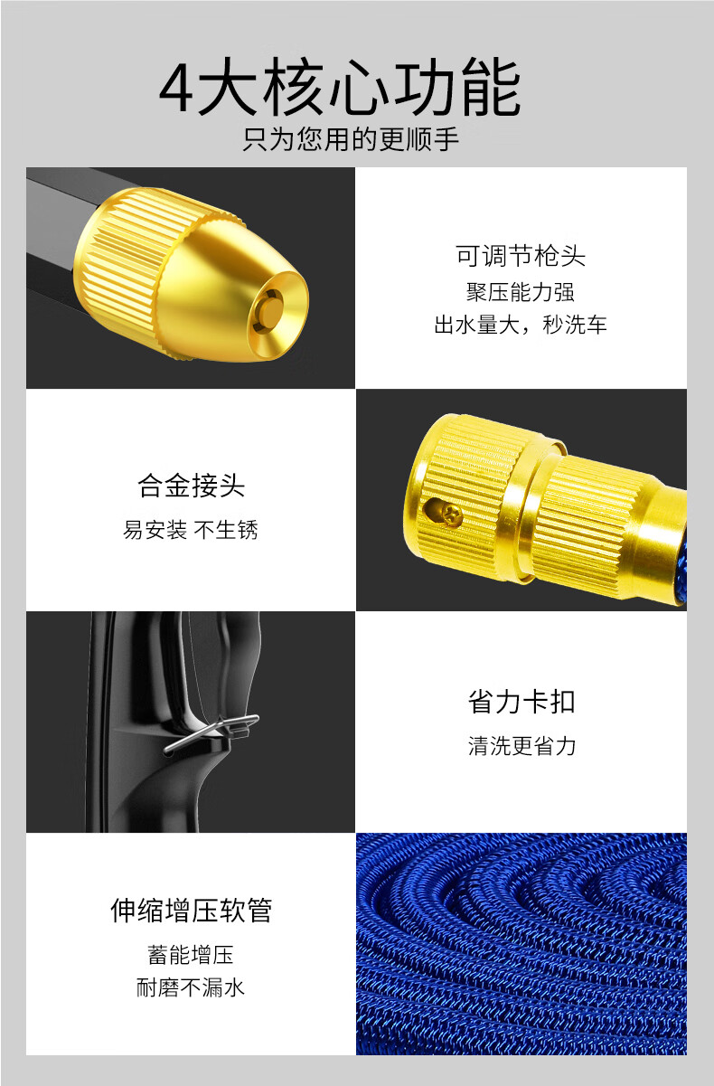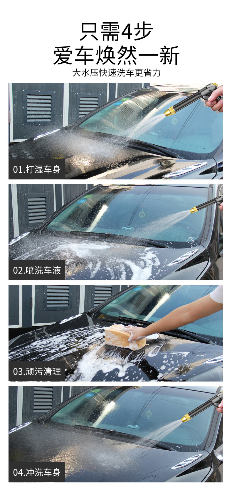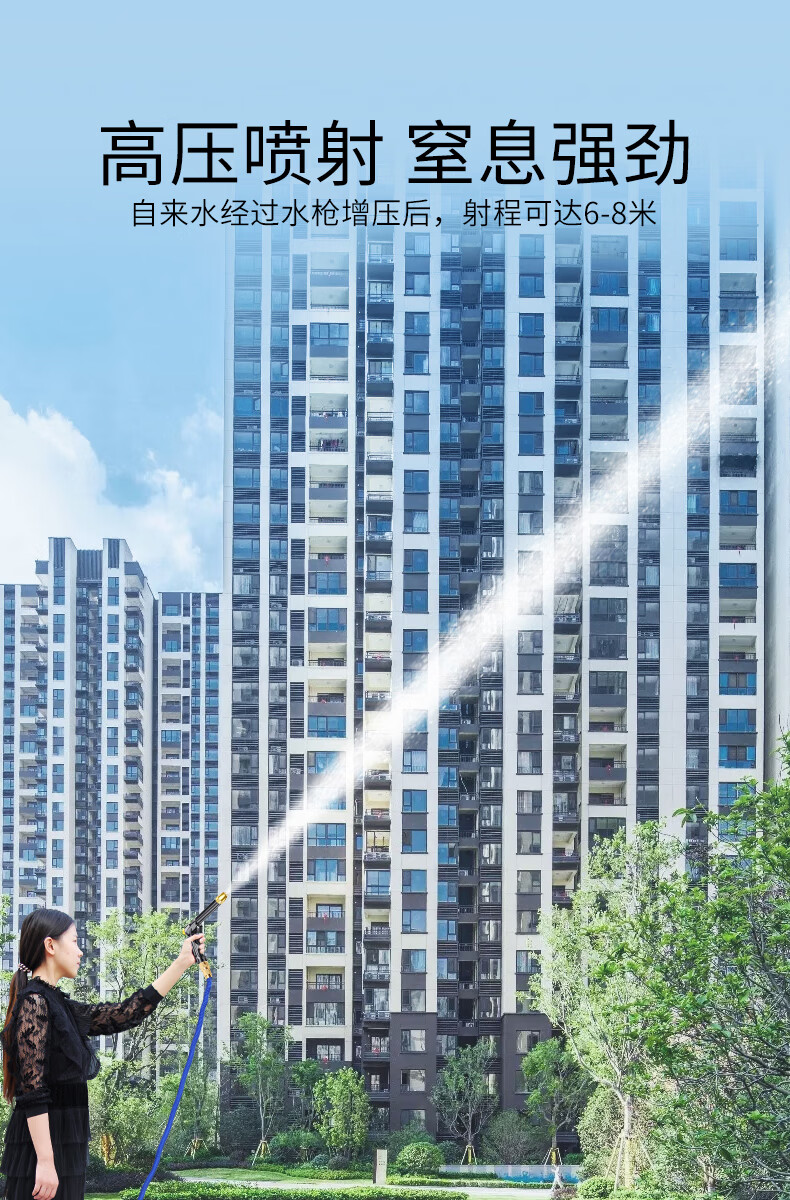 Giant wood high-pressure car wash water gun grabs household artifact telescopic water pipe hose tap water nozzle flushing spray gun pressurized 50 times spiral pressurized 22 meters set