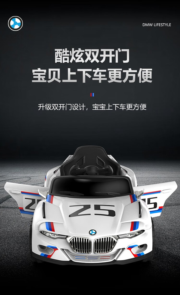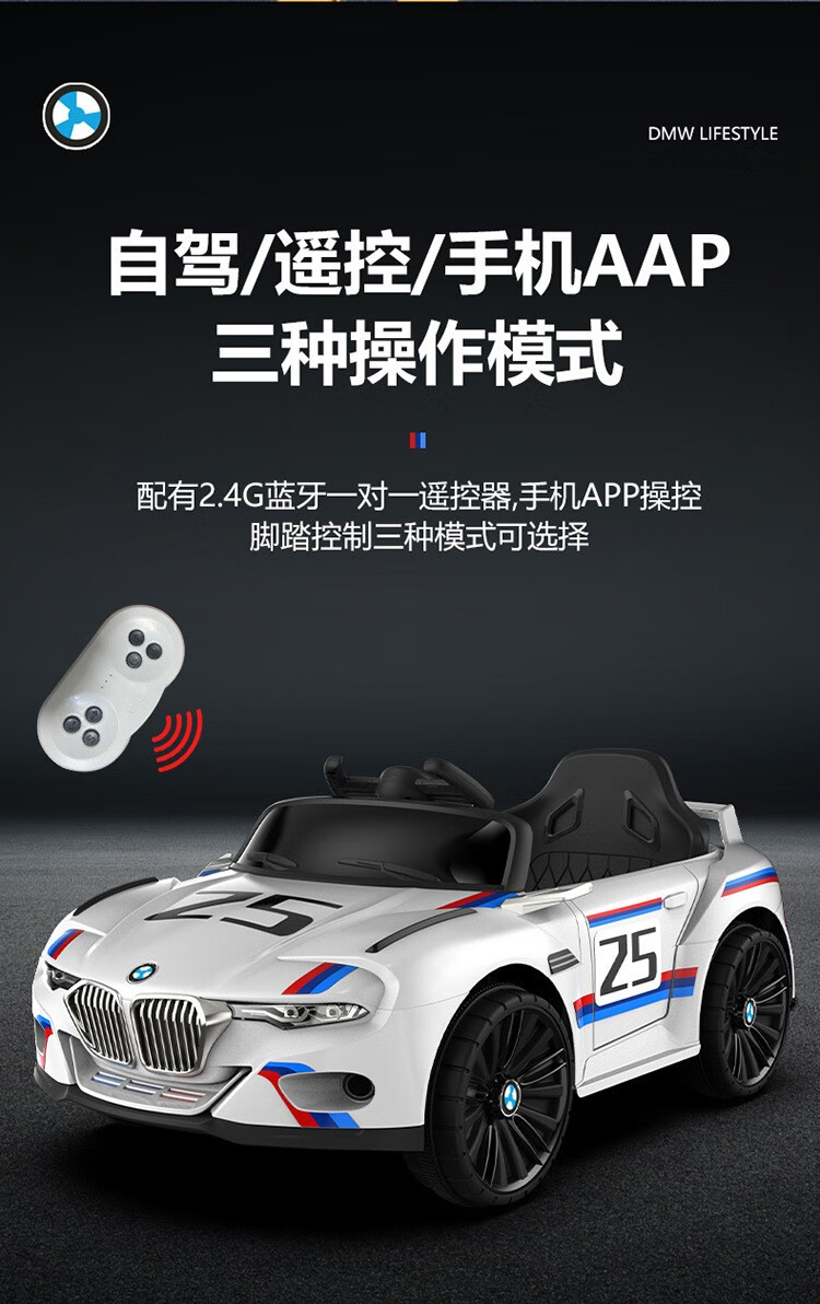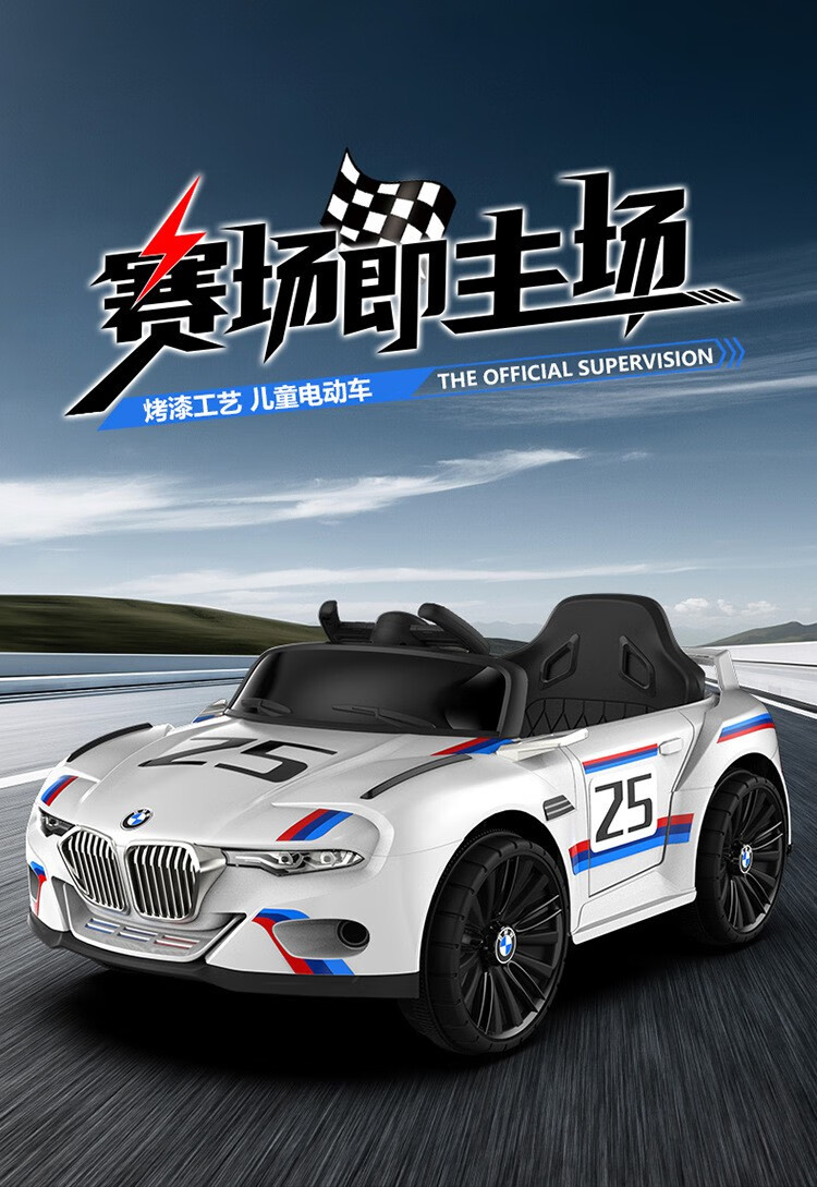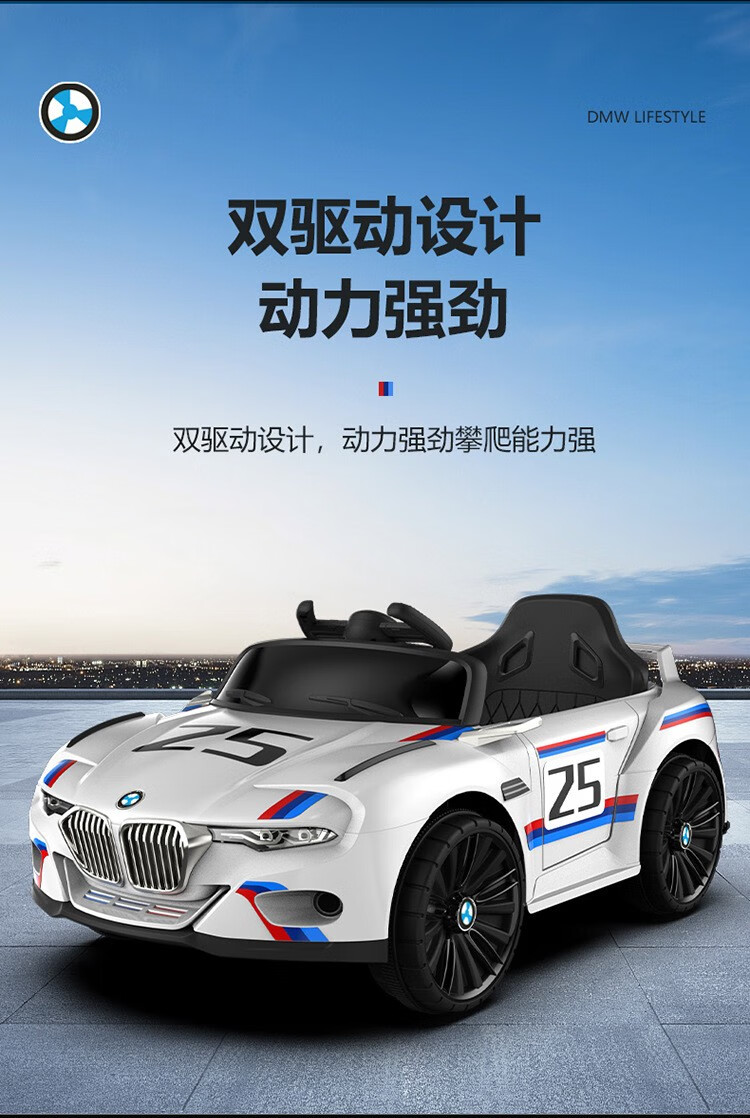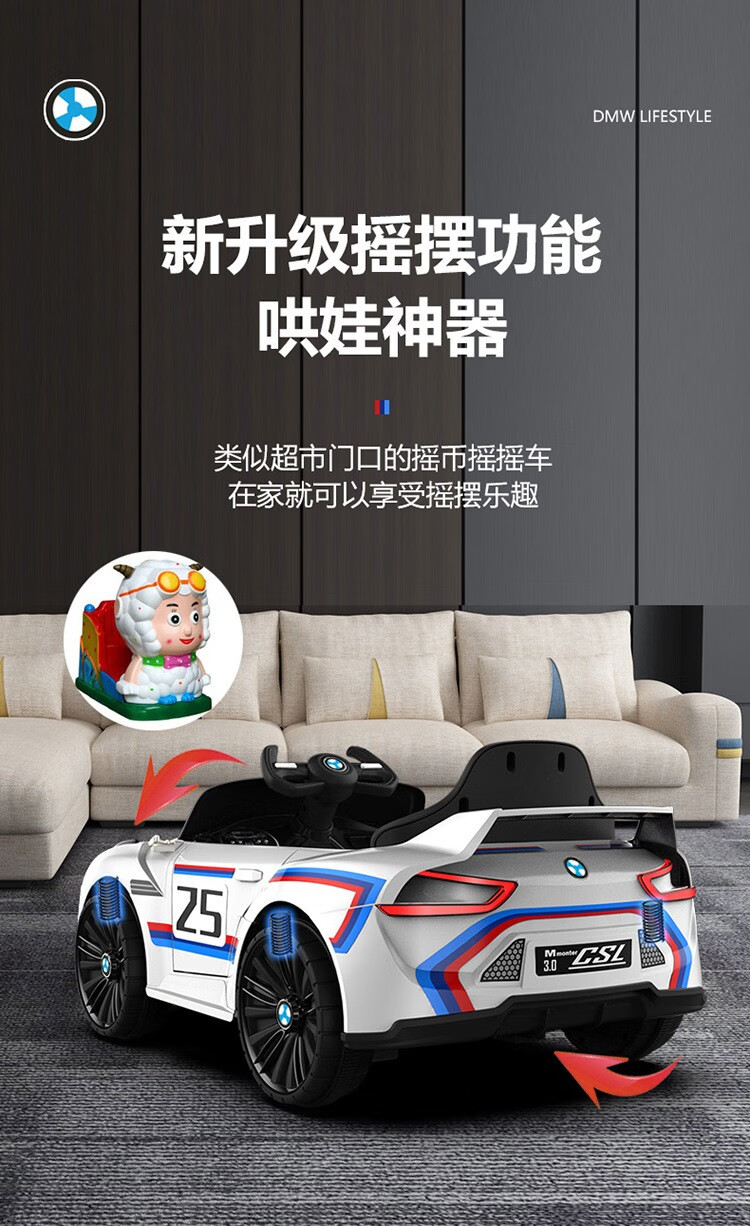 Miss Dolphin children's electric car four-wheel car with remote control toy car swing can sit men and women baby battery stroller double drive painted white