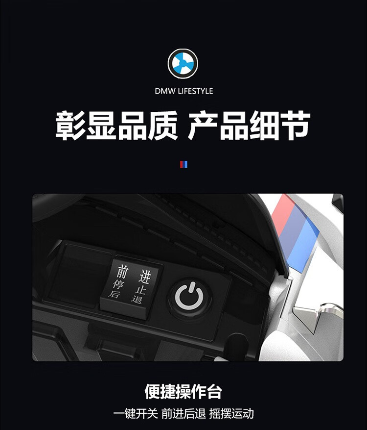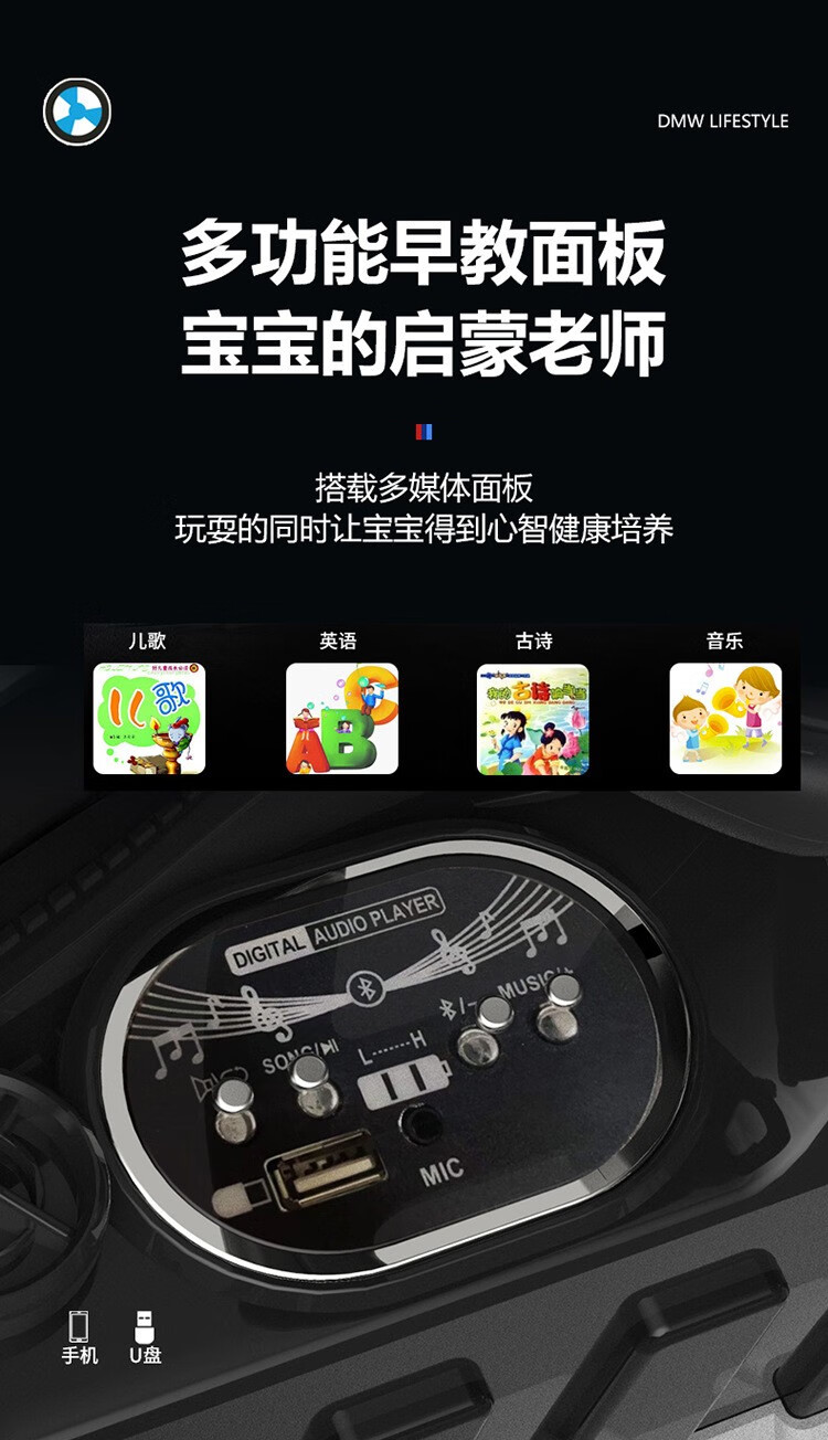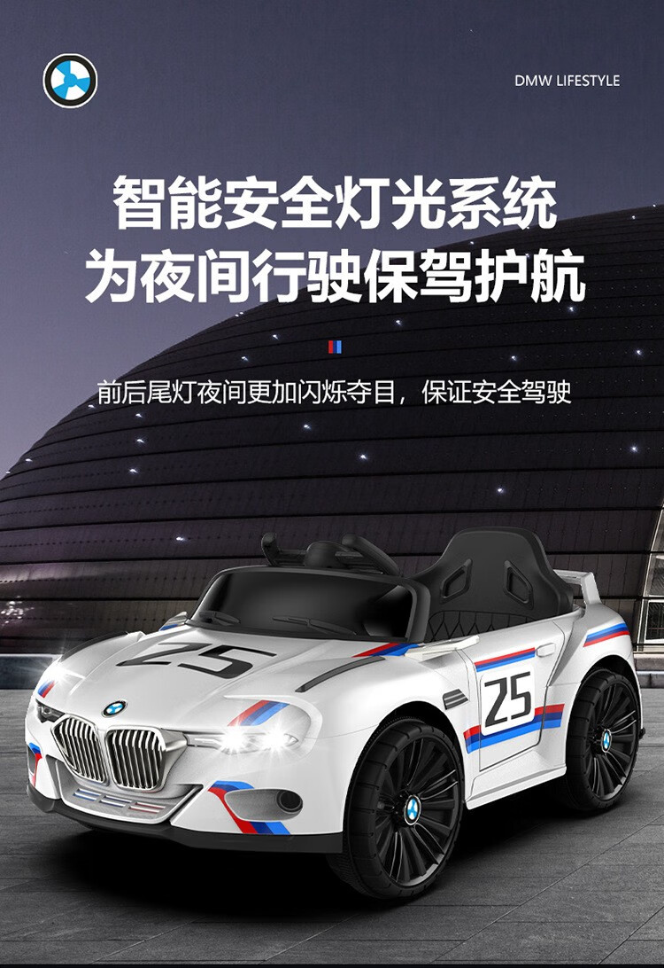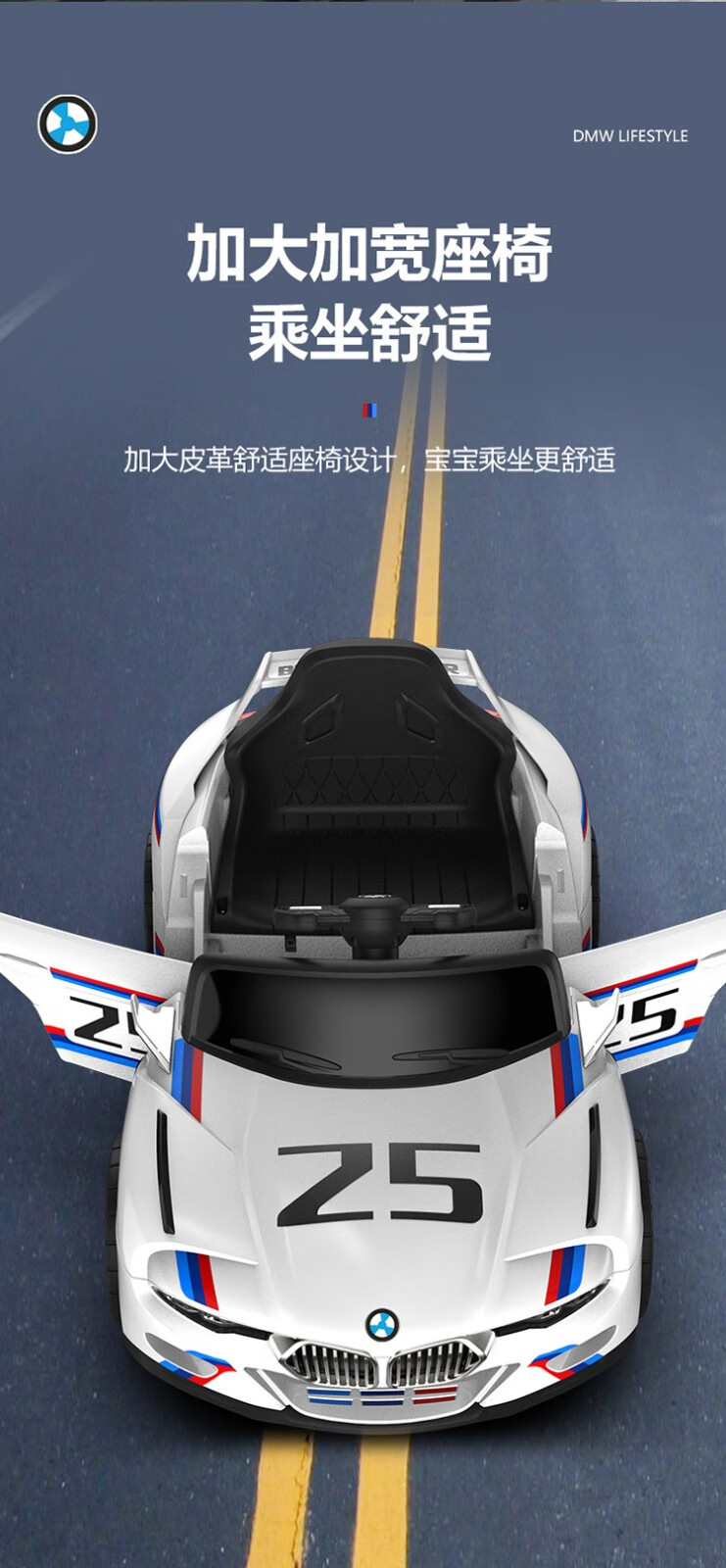 Miss Dolphin children's electric car four-wheel car with remote control toy car swing can sit men and women baby battery stroller double drive painted white