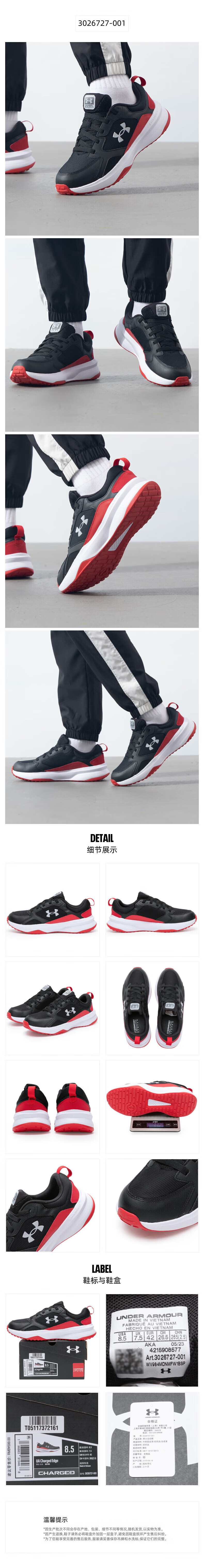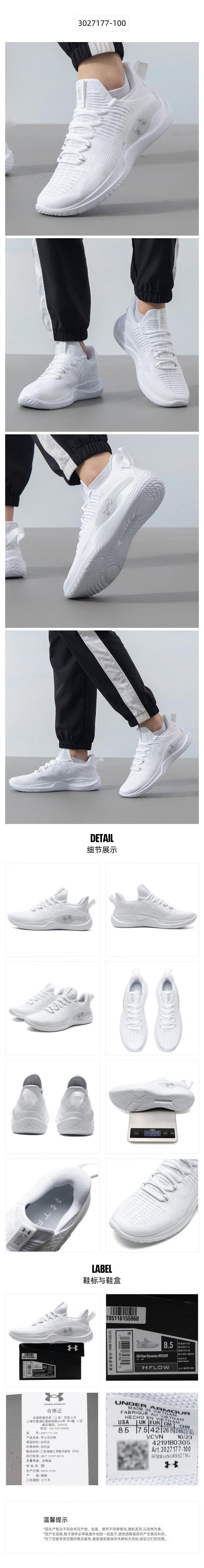 Under Armor men's shoes 26 spring new sports shoes outdoor running breathable wear-resistant lightweight casual low-top training shoes 3027177-100 41 41/260