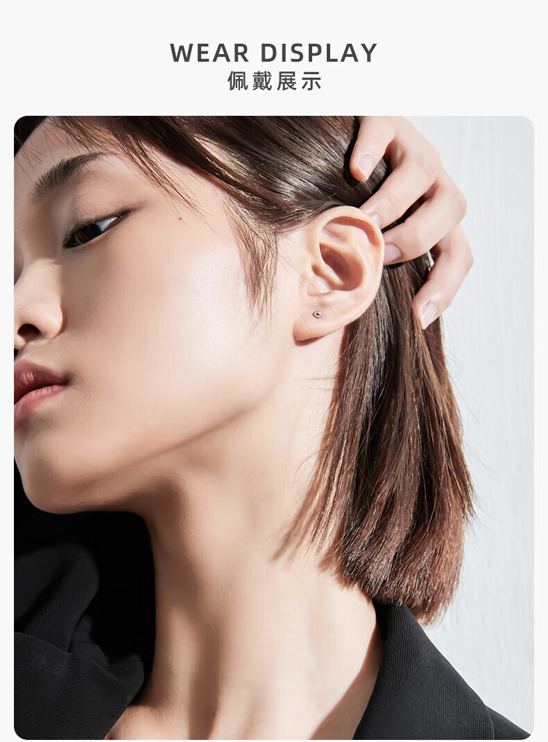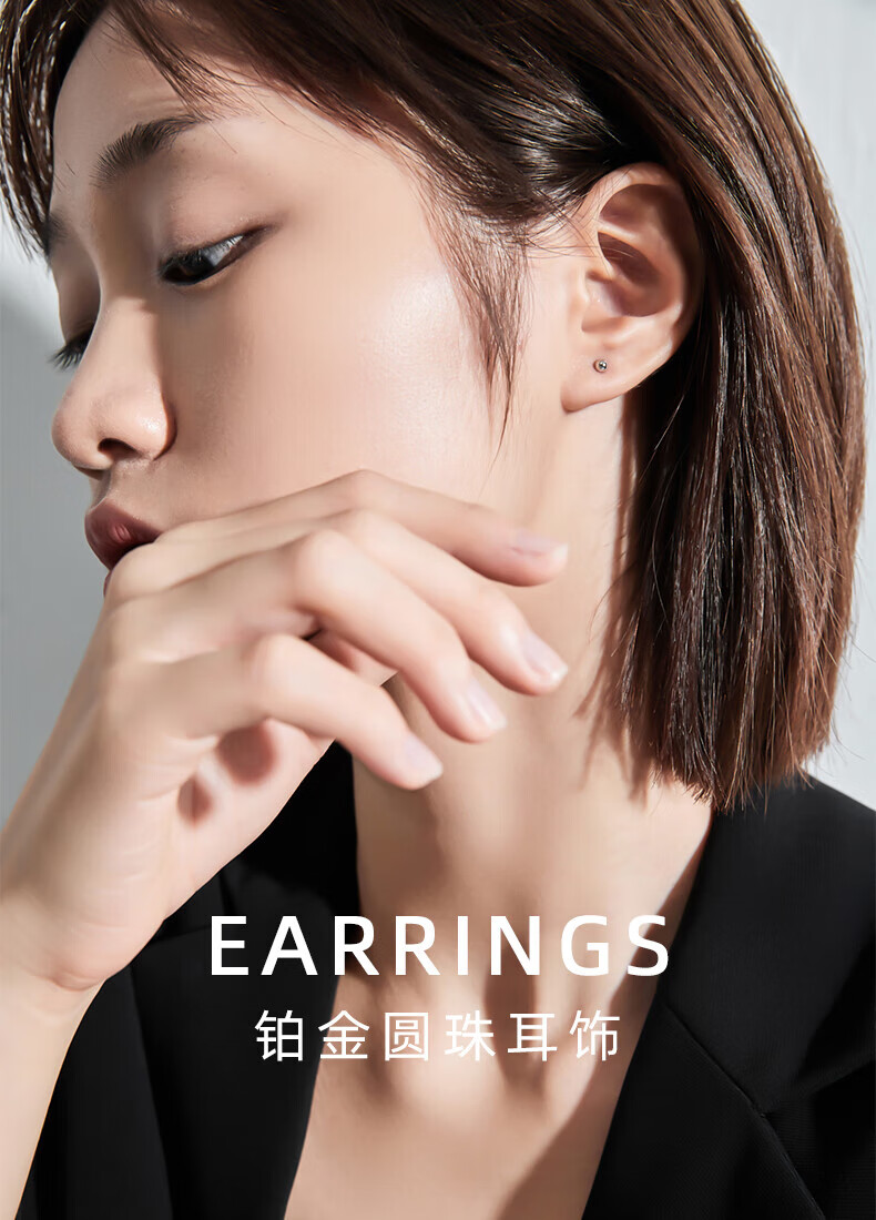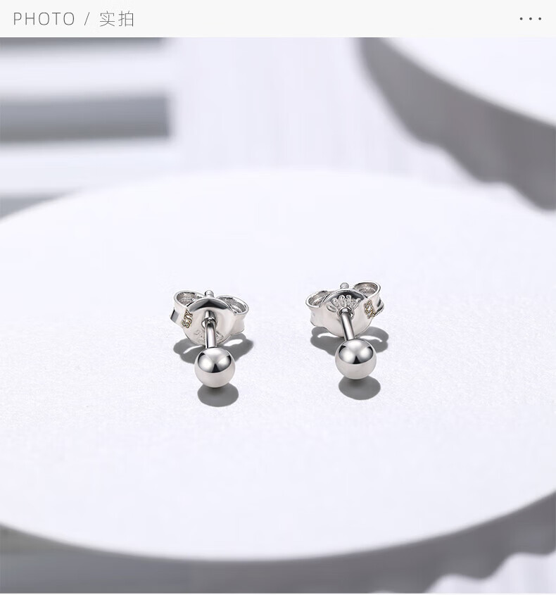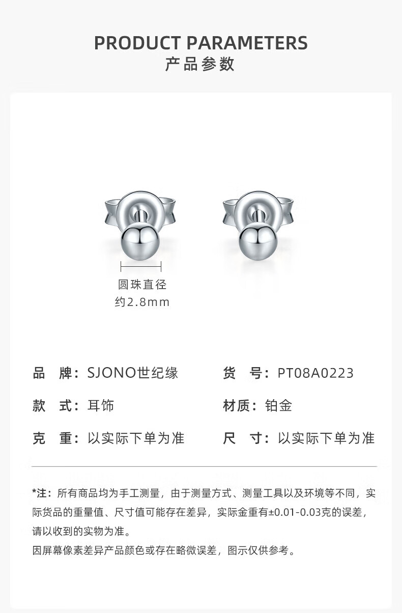 Century Yuan Platinum Earrings Female Light Beads Round Beads PT950 Peas Earrings Simple Birthday Gift for Girlfriend and Wife 1.11g