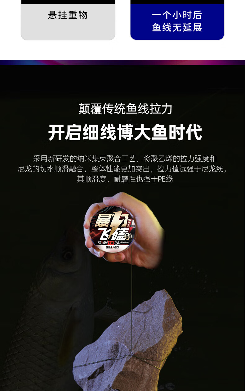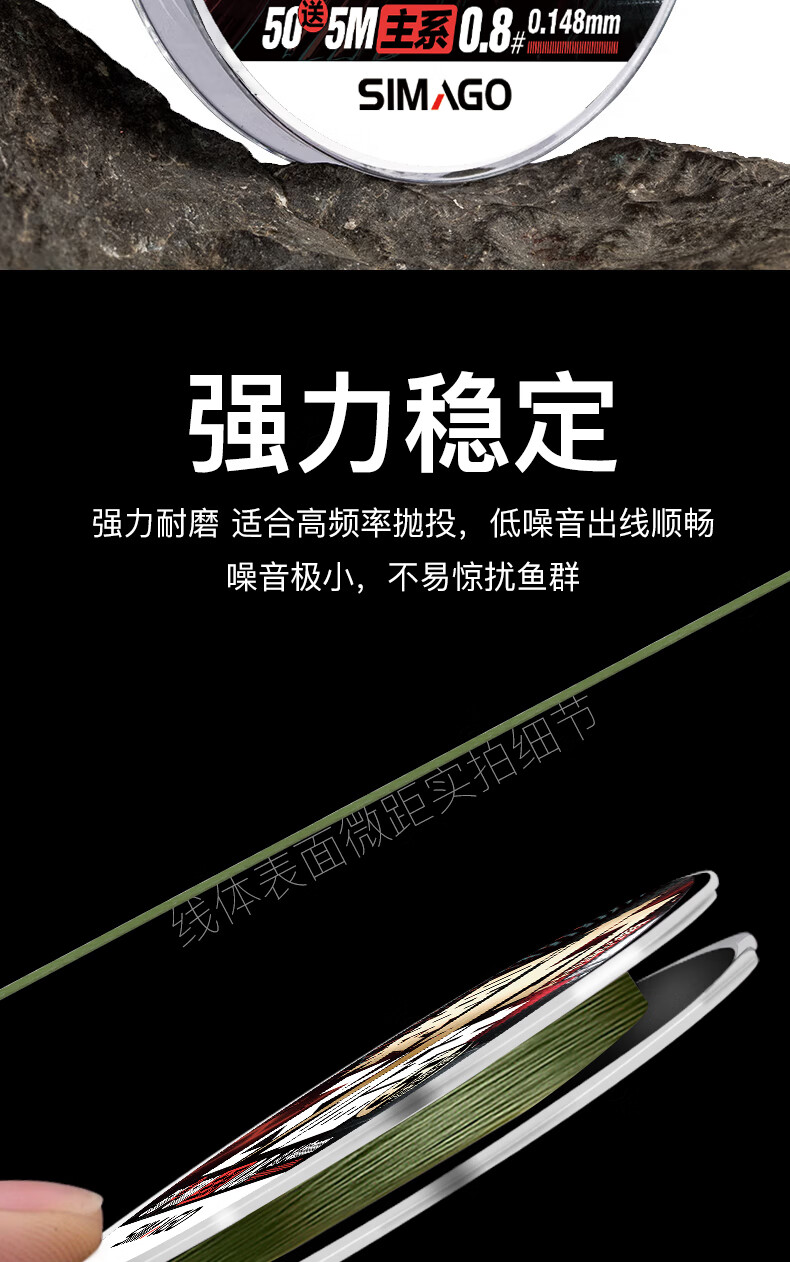 SIMAGO Ximanduo fishing line has strong pulling force and does not increase in number, wear-resistant and durable, black pit competitive flying knock line, strong horse pe nylon line, main line type - 55 meters, contact customer service for two shots and three shots 2.0