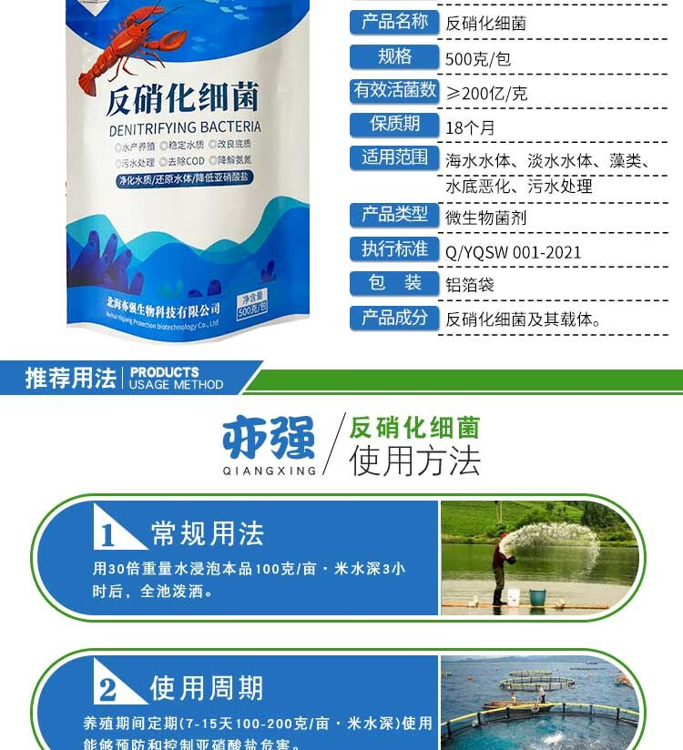 Yiqiang Biotech 20 billion/g denitrifying bacteria microbial agent degrades nitrite and ammonia nitrogen to improve water quality 500g/pack*10 packs