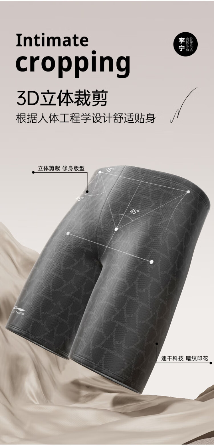 Li Ning (LI-NING) men's quick-drying dark pattern printed swimming trunks, racing knee-length swimming trunks, hot spring men's swimsuit, training swimming equipment, dark pattern black XL, height 175-180, weight 65-75kg