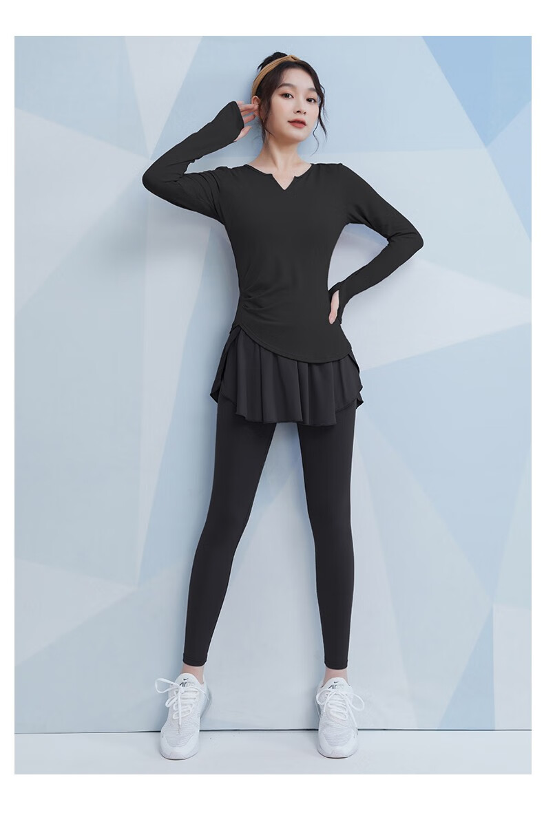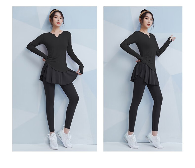 Vansydical Yoga Wear Women's New Pilates Training Wear Spring Running High-Elastic Sports Suit Fitness Wear Black Two-piece Set TC53077 L (Recommended for women: 105-120 Jin Jin equals 0.5 kg)