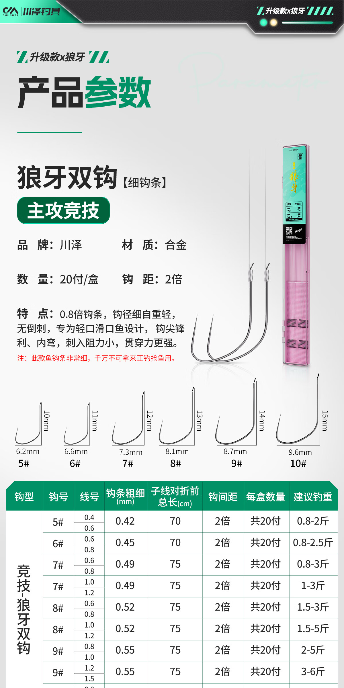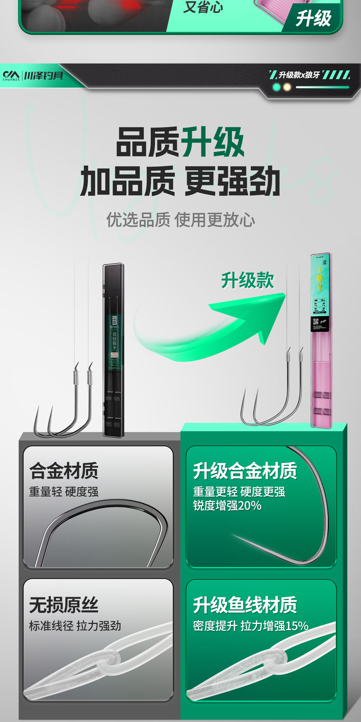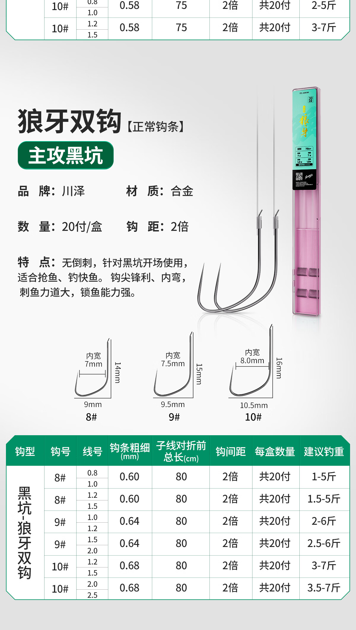 Kawasawa sub-line double hook wolf tooth competitive black pit anti-winding finished fish hook tied full set fishing hook crucian carp carp hook 75cm upgraded competitive wolf tooth hook 7 lines 0.6-0.8