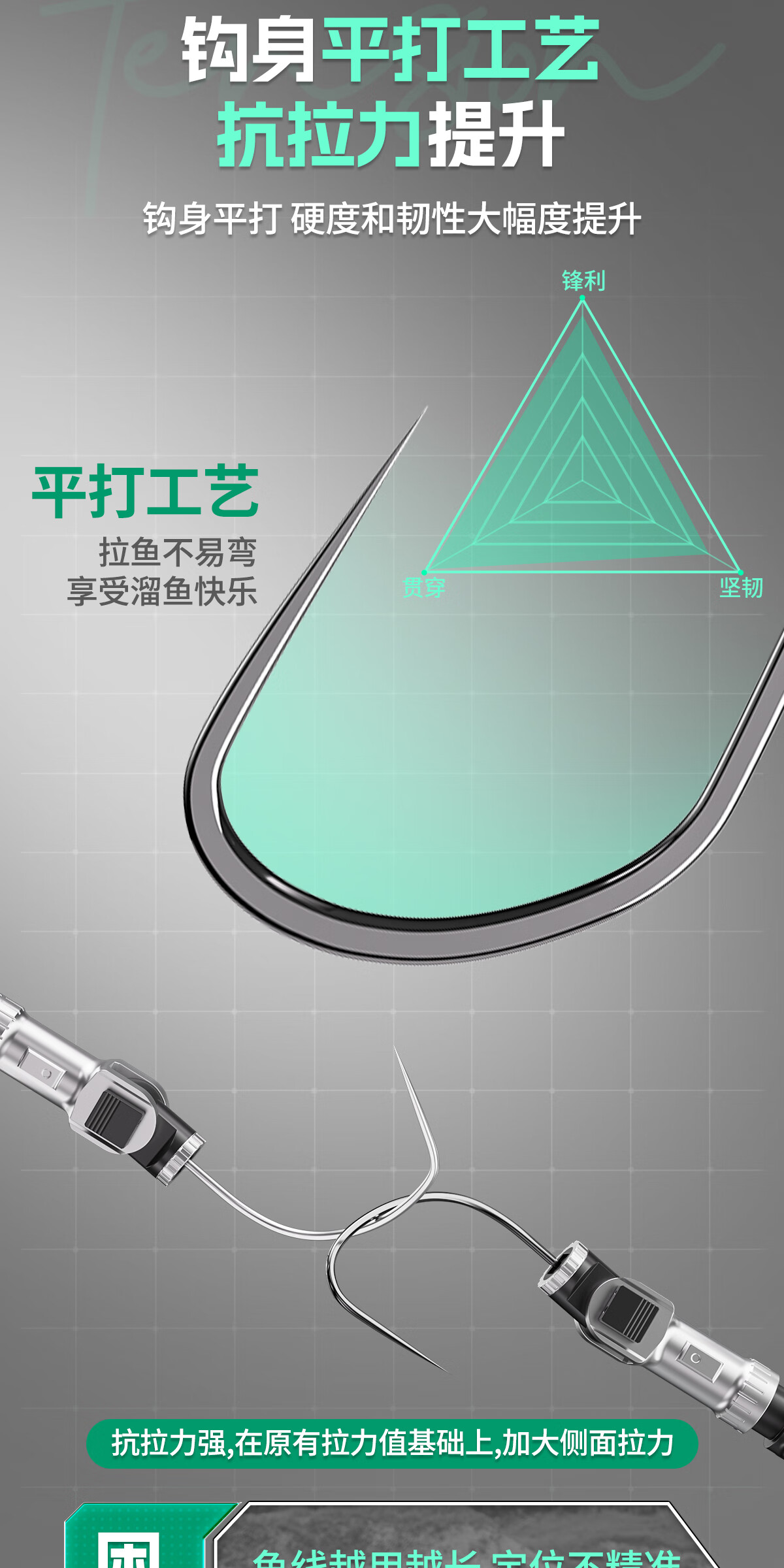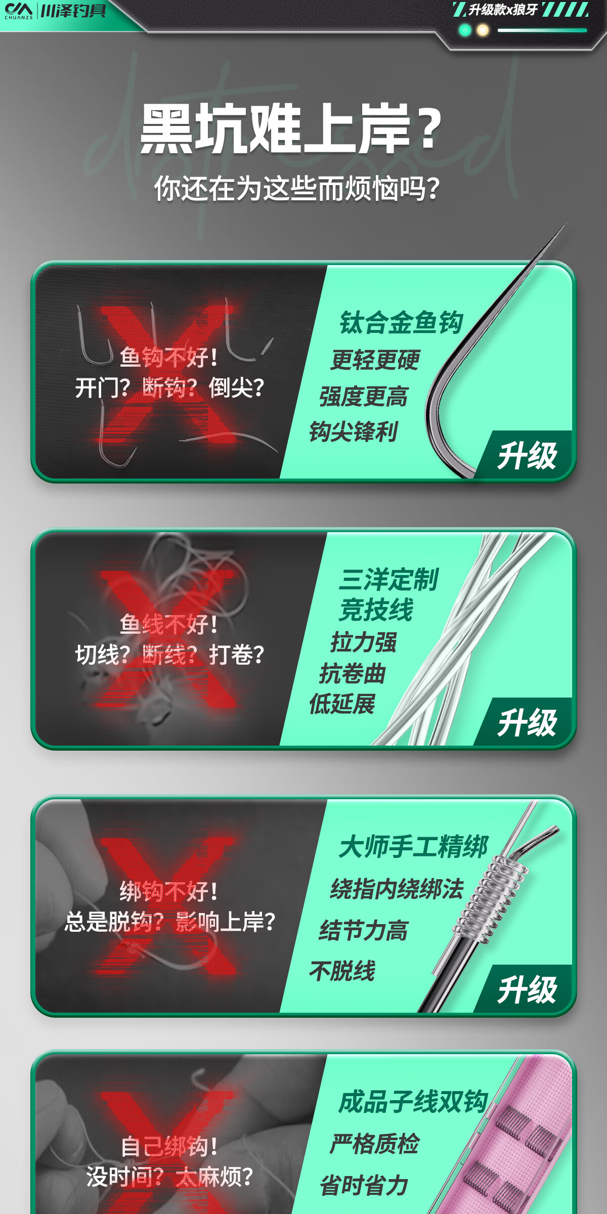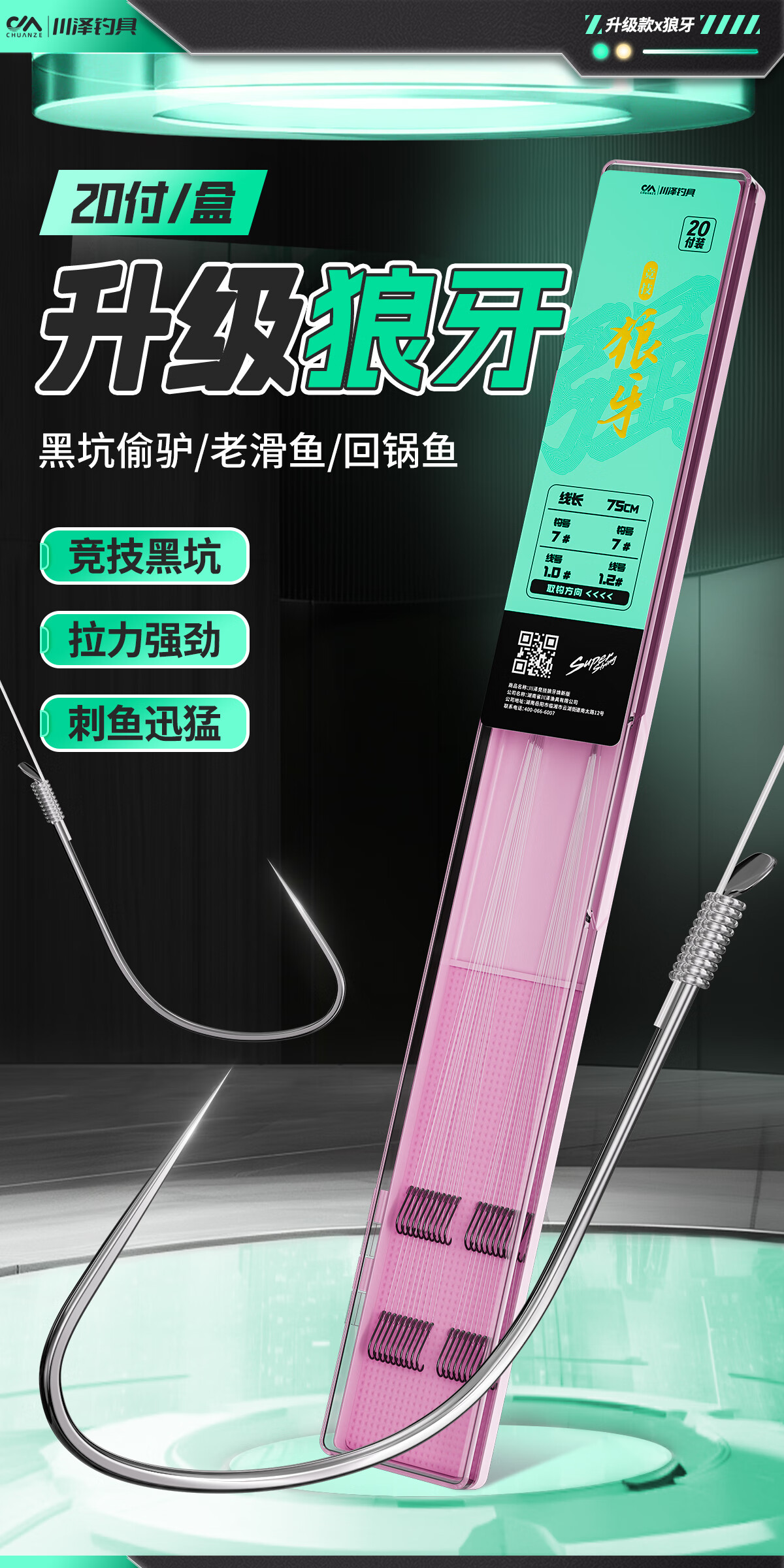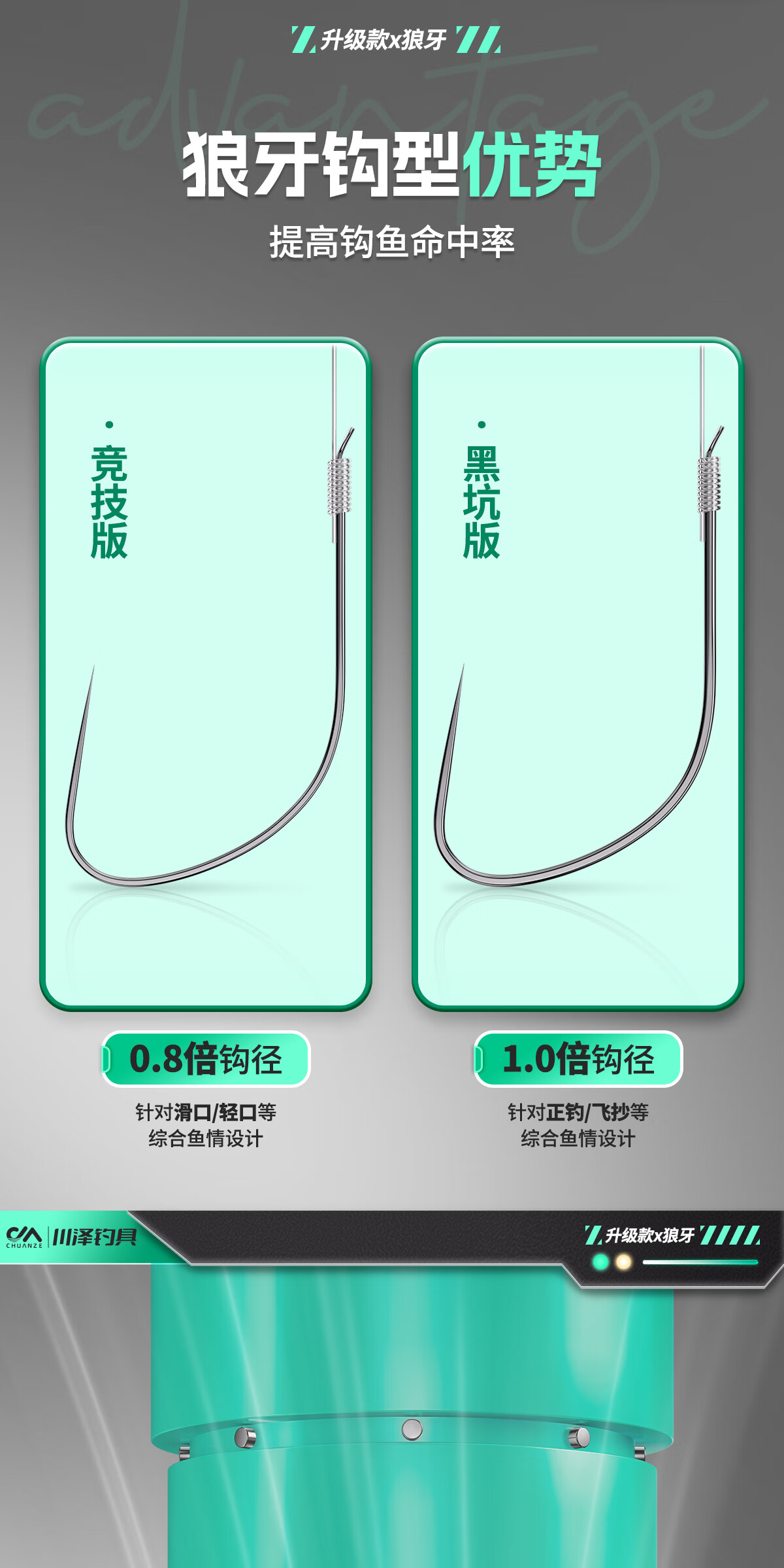 Kawasawa sub-line double hook wolf tooth competitive black pit anti-winding finished fish hook tied full set fishing hook crucian carp carp hook 75cm upgraded competitive wolf tooth hook 7 lines 0.6-0.8