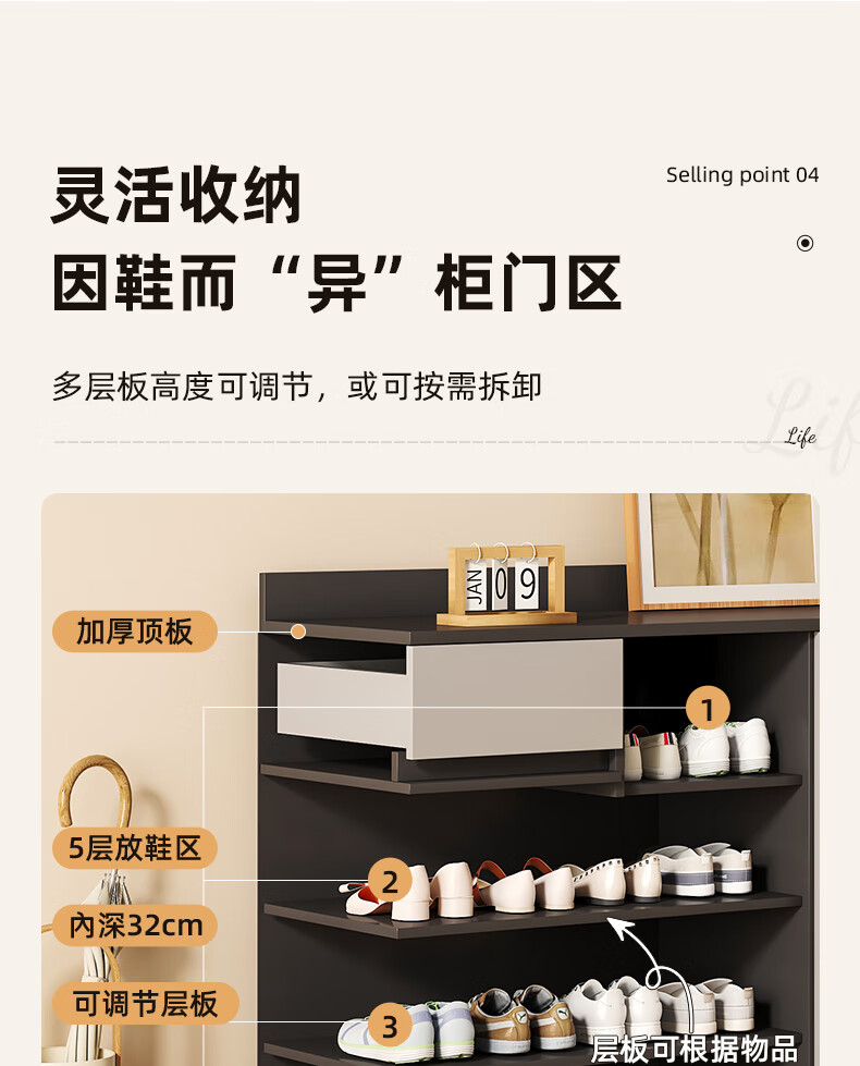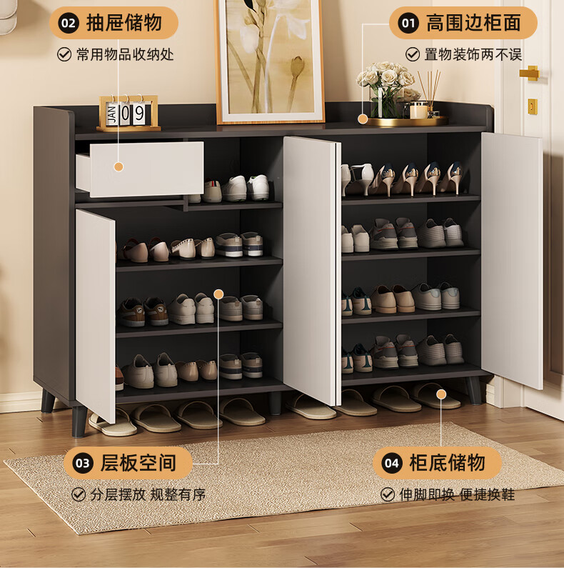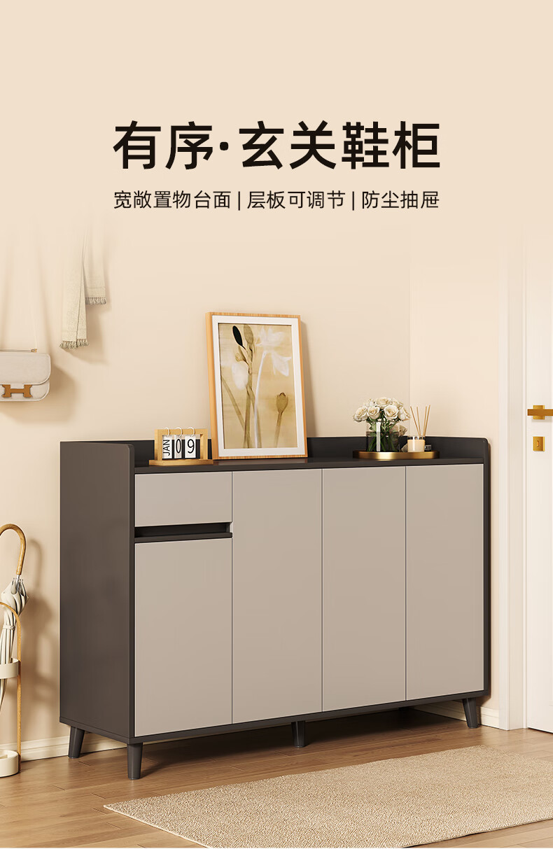 First Forest Shoe Cabinet Doorway Home Large Capacity Balcony Storage Cabinet Modern Simple Entrance Cabinet Integrated Wall Storage Cabinet Store Manager Recommendation Dark Gray + Light Gray 120*32*90 Assembly (self-installation)