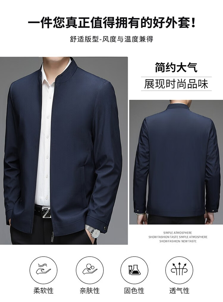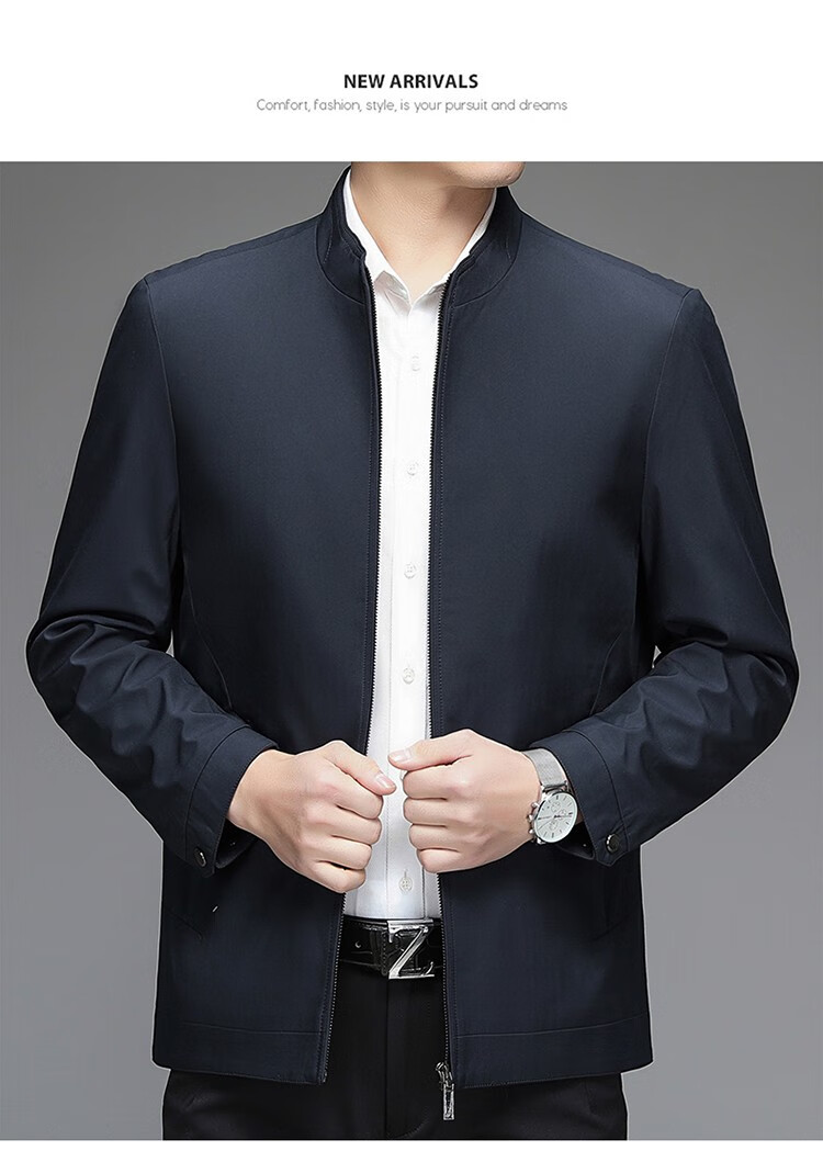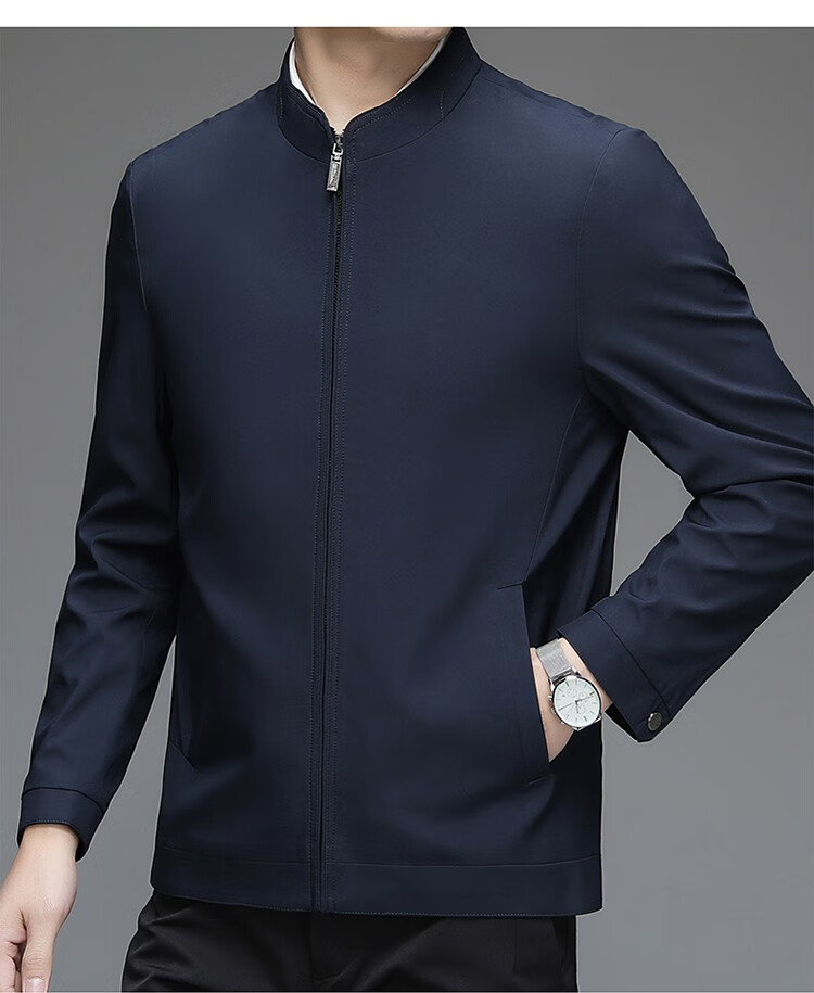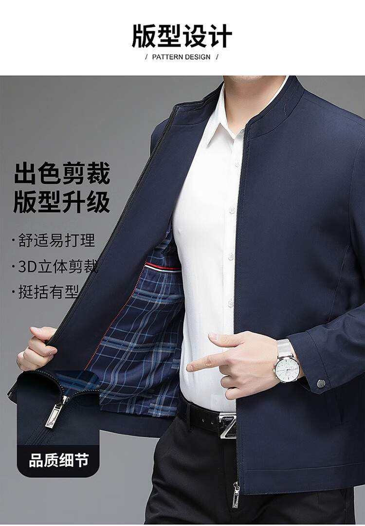 Pierre Cardin brand jacket men's spring and autumn new stand-up collar executive jacket men's business casual cadre jacket middle-aged tops navy blue XL recommended 140-160Jin Jin equals 0.5 kg