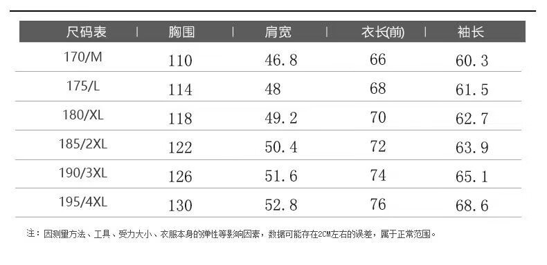 China (cm) 165 / 88-90 170 / 96-98 175 / 108-110 180 / 118-122 185 / 126-130