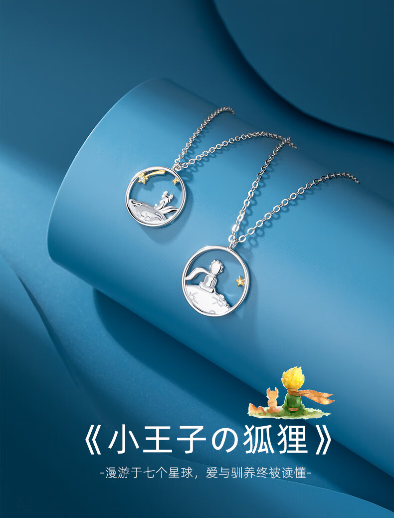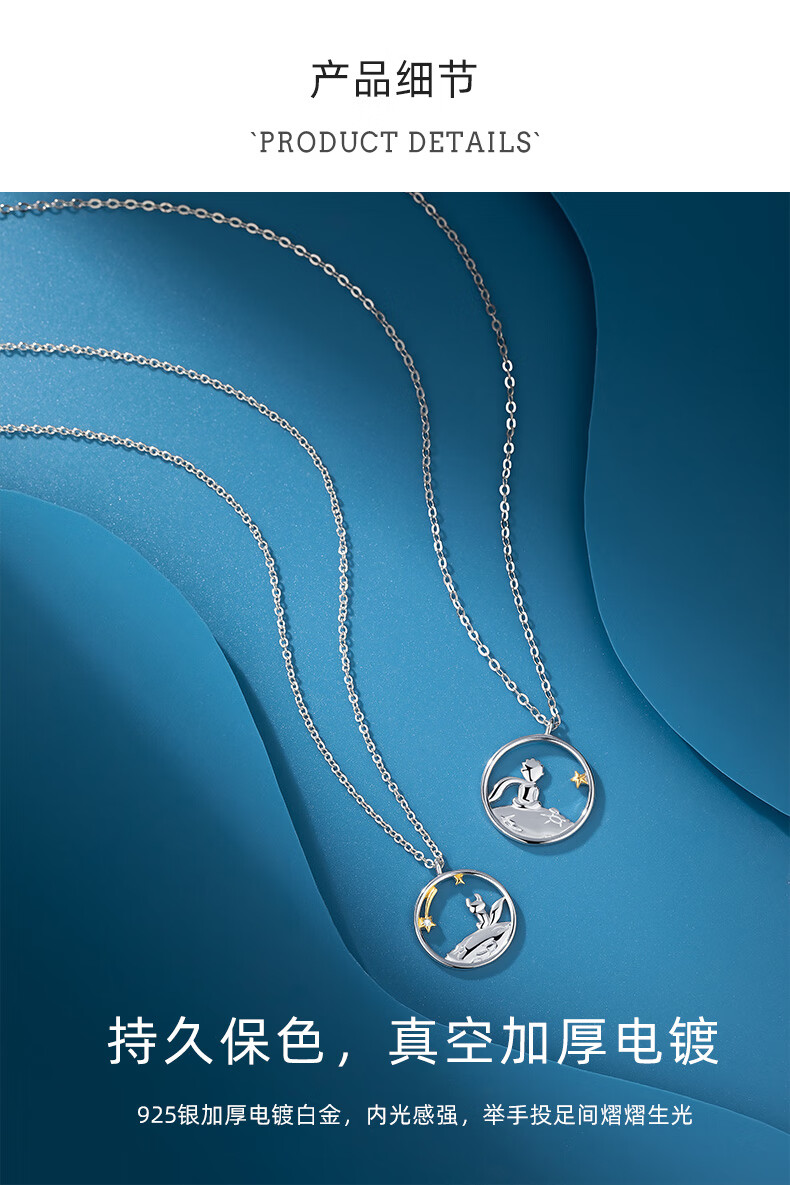 VIGG Little Prince and Fox Couple Necklaces Pair of Silver Pendants for Men and Women Birthday Chinese Valentine's Day Gifts for Boyfriend and Girlfriend Pair of Couple Necklaces (Everlasting Flower Gift Box)