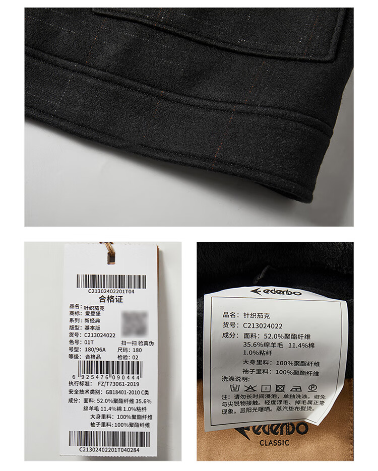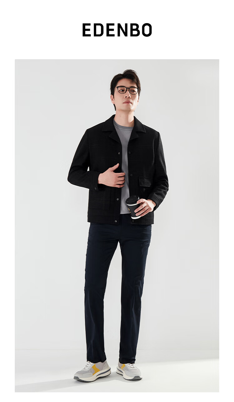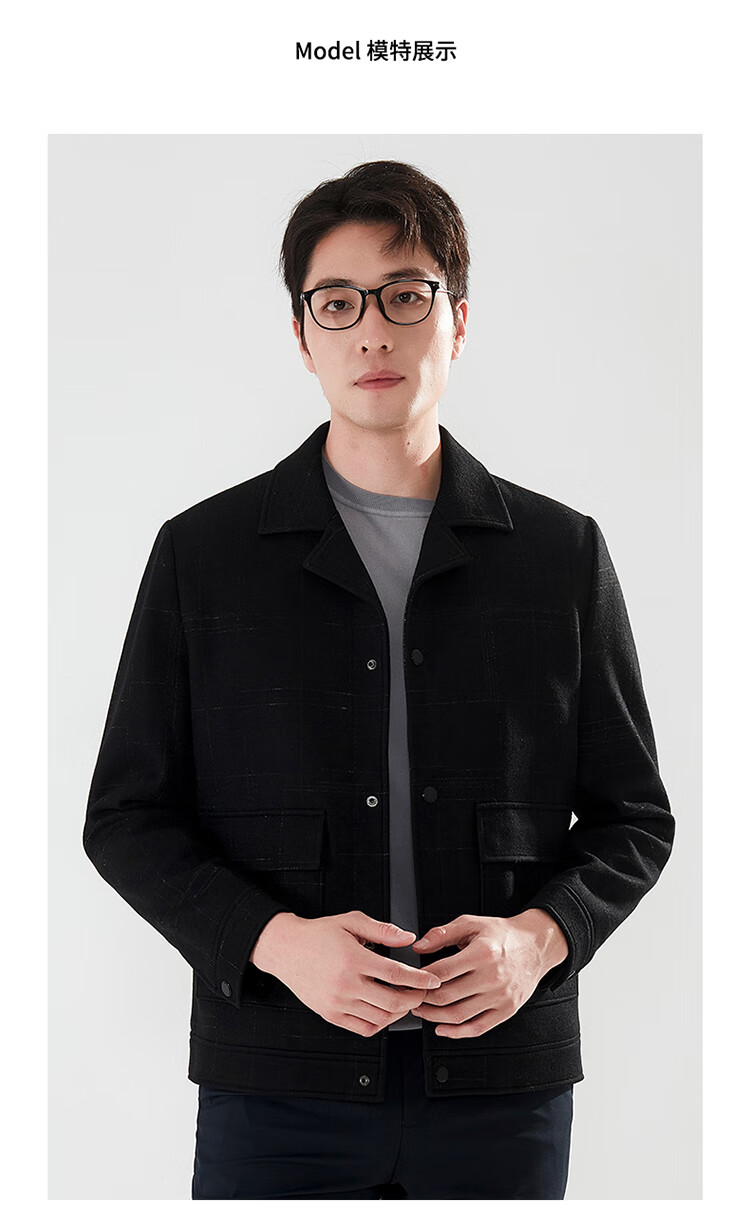 Attenborough shopping mall same style men's work jacket spring style suit collar casual plus fleece warm knitted jacket black L 170