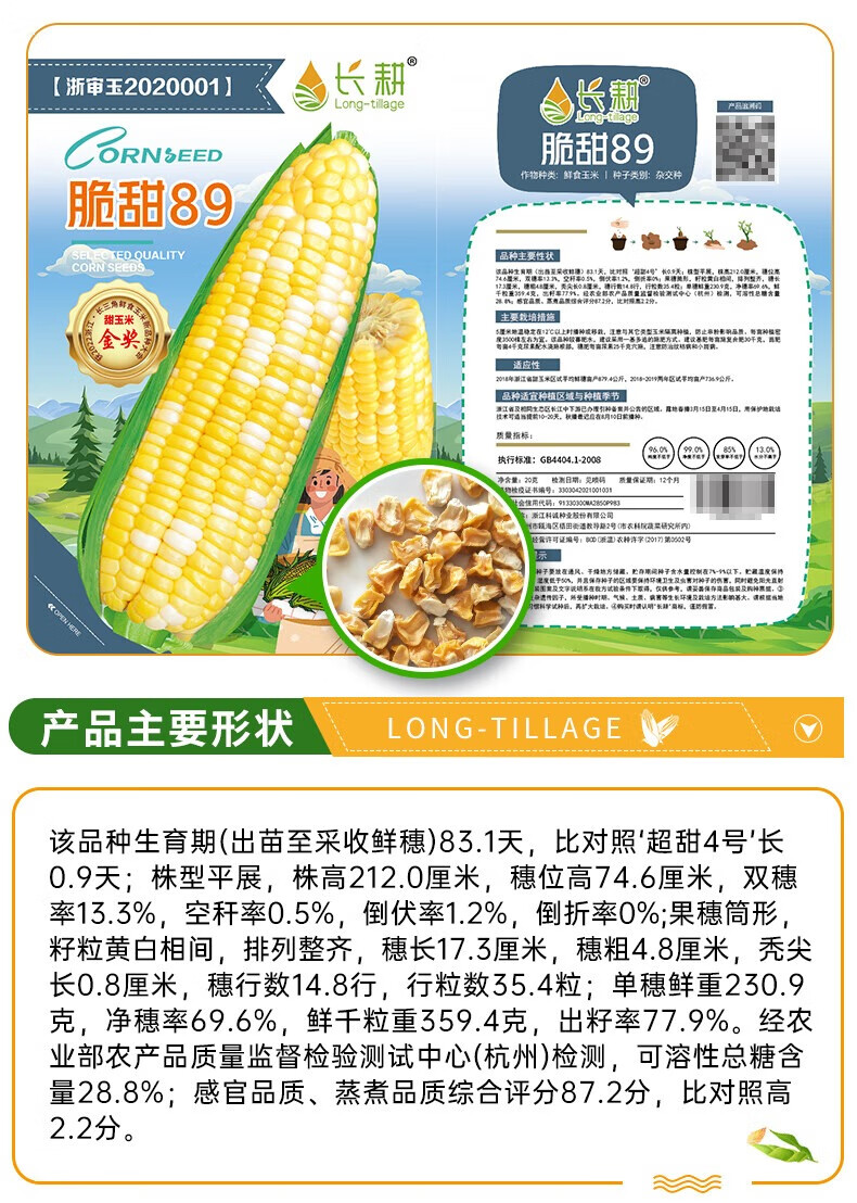 Long-cultivation super sweet two-color fruit corn seeds easy to grow sweet corn seeds extra large drought-resistant spring four seasons sweet waxy corn sticky sweet crispy sweet 89 corn 20g gold medal corn